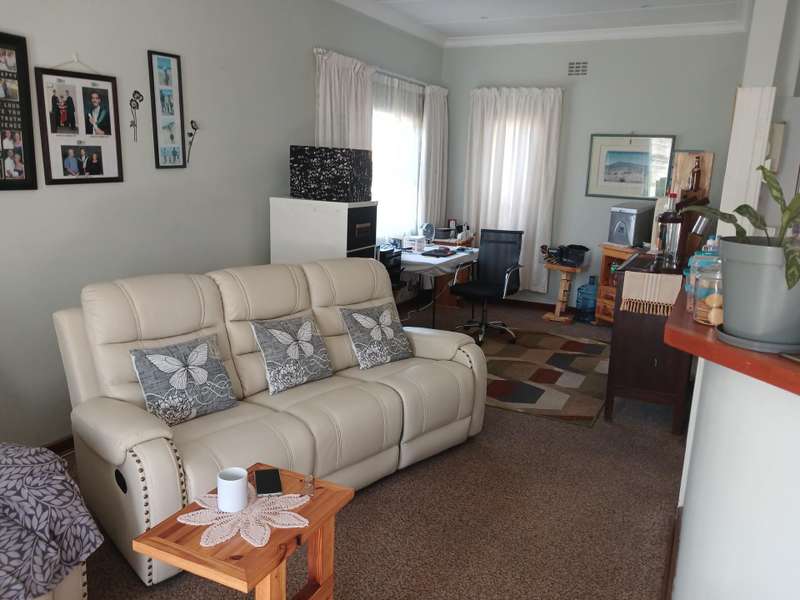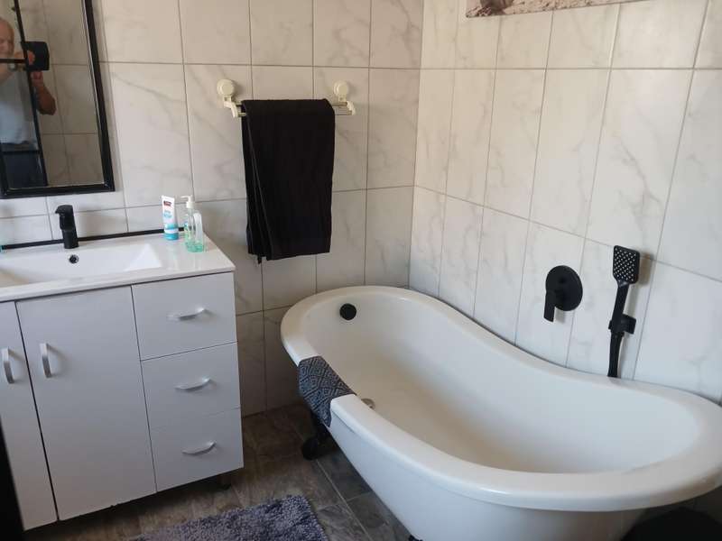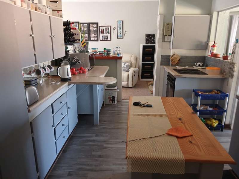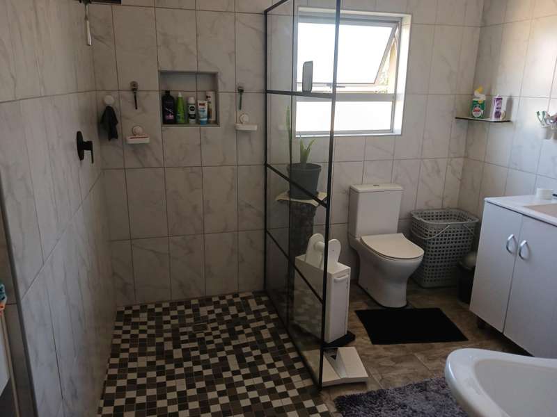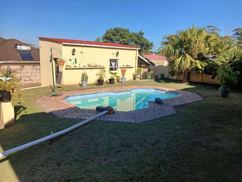 The house sits on a 1002 square meter level plot. The property offers 3 bedrooms all with build in cupboards. There is an open plan lounge/dinning/kitchen area. The bathroom has a shower,bath, toilet and hand basin. There is a single garage coupled to the house with a carport and a double free standing garage behind the house with a double car port. In addition to the main house is staff courters with own ablution facilities which can quite easily be converted into a granny flat. The house is situated near shops and schools.