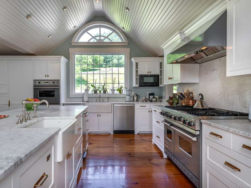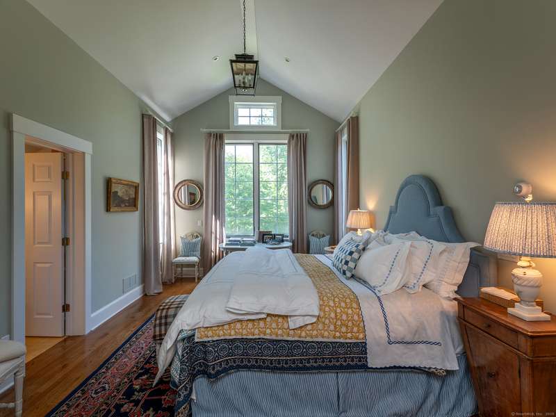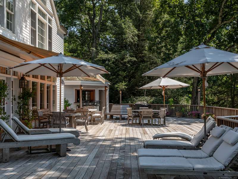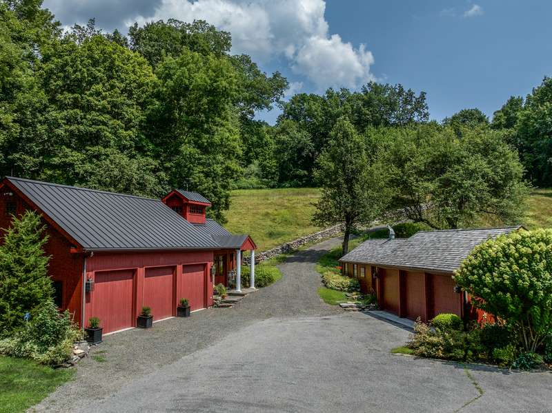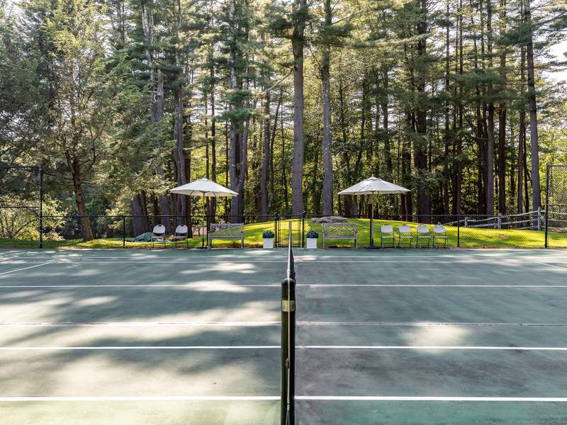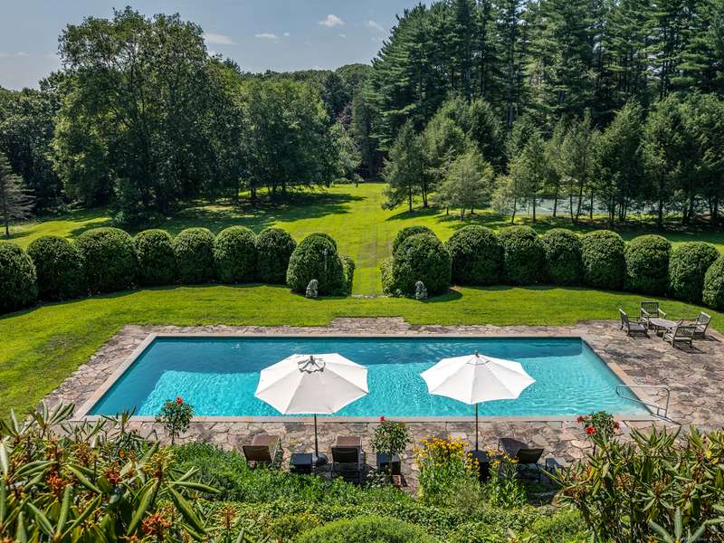 Iconic and authentic, Shagbark Farm in central Washington represents the quintessential Connecticut country escape. Set on 3 separate parcels totaling over 85 acres and sited down a long private driveway this is the property of dreams. Classic white renovated 1930's colonial with 5 bedrooms, 5.5 bathrooms and incredible entertaining spaces inside and out. Oversized eat in gourmet kitchen with fireplace. Sun room and living room lead to a spectacular entertaining deck with multiple seating areas, stand alone bar, expansive western views over the pool, lawns, tennis court and party barn. Spacious primary suite with fireplace, multiple closets, access to private stairway, sitting room and 2 full baths. First floor guest/staff room with office above. Charming 3 bedroom 2 bath guesthouse, nicely located away from the main residence. 2 separate 3 bay garage barns, each with attached garden or work rooms. Party barn with half bath near tennis court. 60' pool with fieldstone terrace and incred