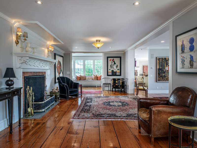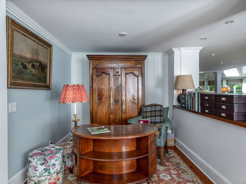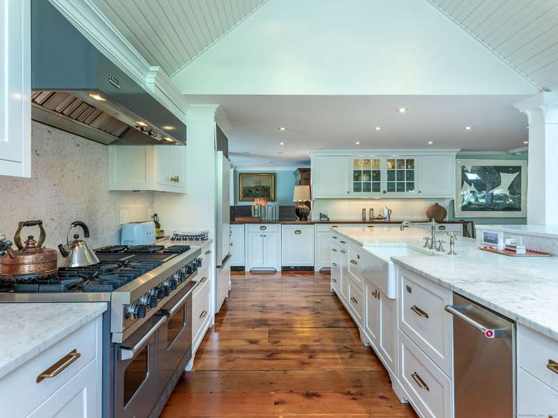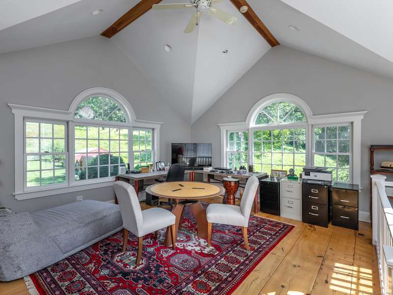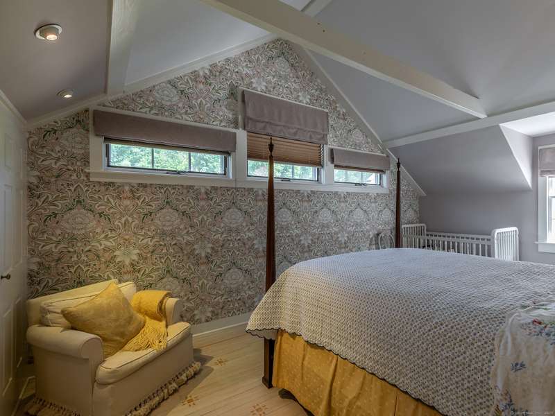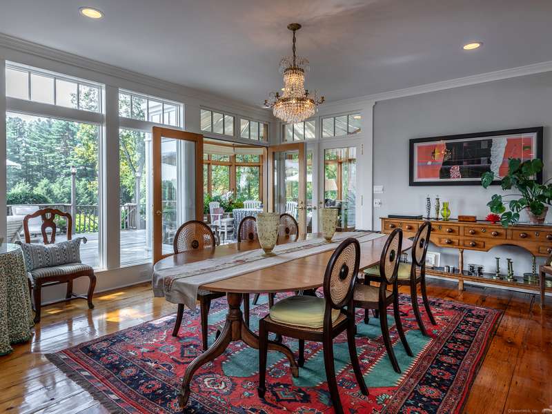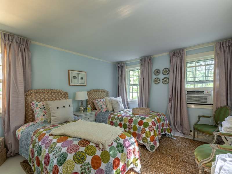 Iconic and authentic, Shagbark Farm in central Washington represents the quintessential Connecticut country escape. Set on 3 separate parcels totaling over 85 acres and sited down a long private driveway this is the property of dreams. Classic white renovated 1930's colonial with 5 bedrooms, 5.5 bathrooms and incredible entertaining spaces inside and out. Oversized eat in gourmet kitchen with fireplace. Sun room and living room lead to a spectacular entertaining deck with multiple seating areas, stand alone bar, expansive western views over the pool, lawns, tennis court and party barn. Spacious primary suite with fireplace, multiple closets, access to private stairway, sitting room and 2 full baths. First floor guest/staff room with office above. Charming 3 bedroom 2 bath guesthouse, nicely located away from the main residence. 2 separate 3 bay garage barns, each with attached garden or work rooms. Party barn with half bath near tennis court. 60' pool with fieldstone terrace and incred