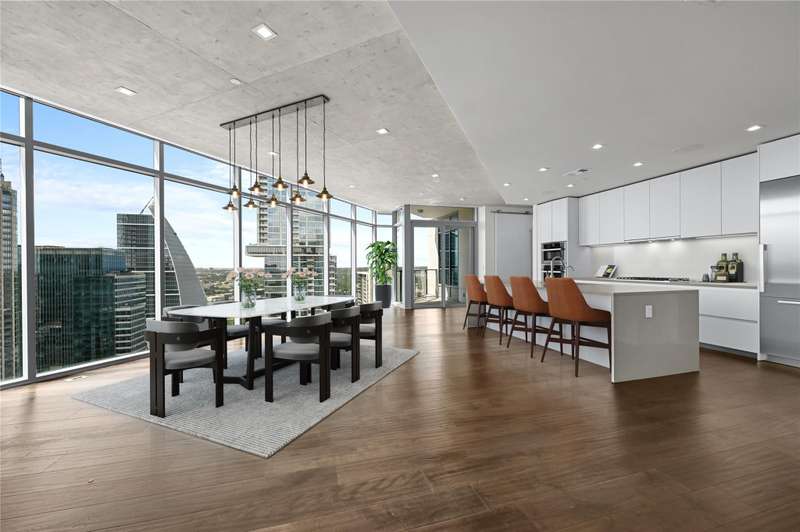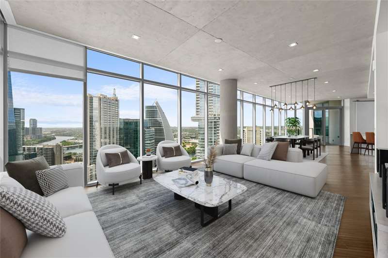 Perched on the 32nd floor and overlooking the Capitol View Corridor--one of the city's most protected vantagepoints-this highly sought-after floorplan boasts panoramic views of Downtown and Lady Bird Lake. With 3-bedrooms and 3-bathrooms the residence includes an additional study/flex space and two private, covered terraces perfect for soaking in the cityscape. Floor-to-ceiling windows frame the city skyline and flood the home with natural light. Luxury finishes include wide-plank hardwood flooring, marble bathrooms, a premium Miele appliance package, motorized window shades, and custom closet built-ins. Nestled in the vibrant Market District, Fifth & West is Austin's premier boutique high-rise, crafted by renowned architect Michael Hsu. Step outside your front door and into the heart of Austin's best culture--award-winning restaurants, upscale shopping, live music venues, nightlife, and entertainment are all just steps away. With MoPac just one mile away and the Central Business District nearby, connectivity and convenience are second to none. Enjoy two premium, reserved parking spaces with urban storage container world-class building amenities: 24-hour concierge service, a resort-style pool, resident portico with fire pit, multiple elegant lounge areas, two fully furnished guest suites, a cutting-edge fitness center, a private meeting room, and a beautifully appointed pet park with an adjacent indoor lounge and coffee bar. The controlled-access parking garage ensures peace of mind. Welcome to refined urban living in one of Austin's most iconic residences. Tax and assessed values are estimates for illustration purposes only. All figures should be independently verified.
