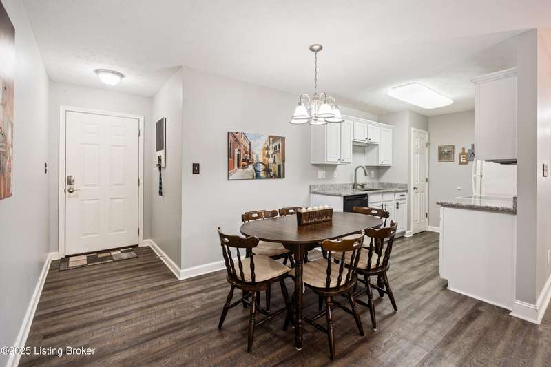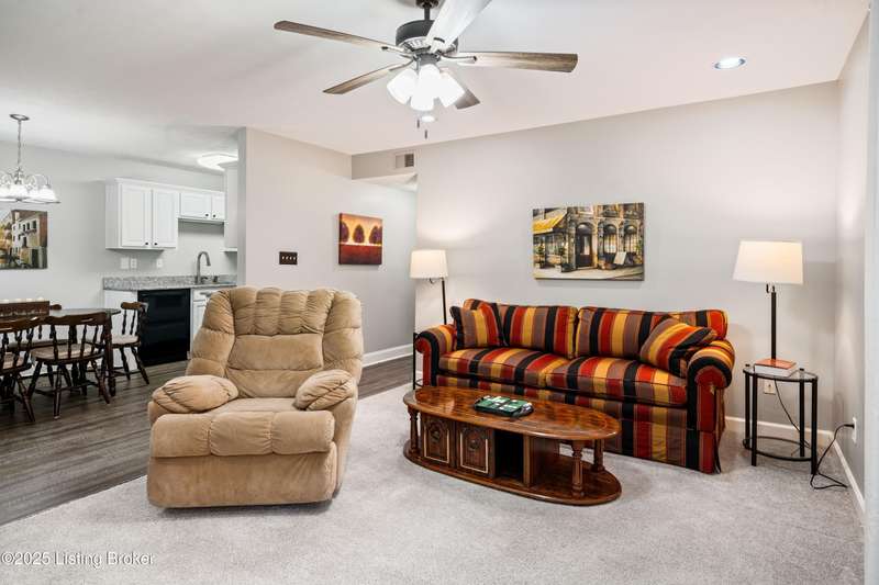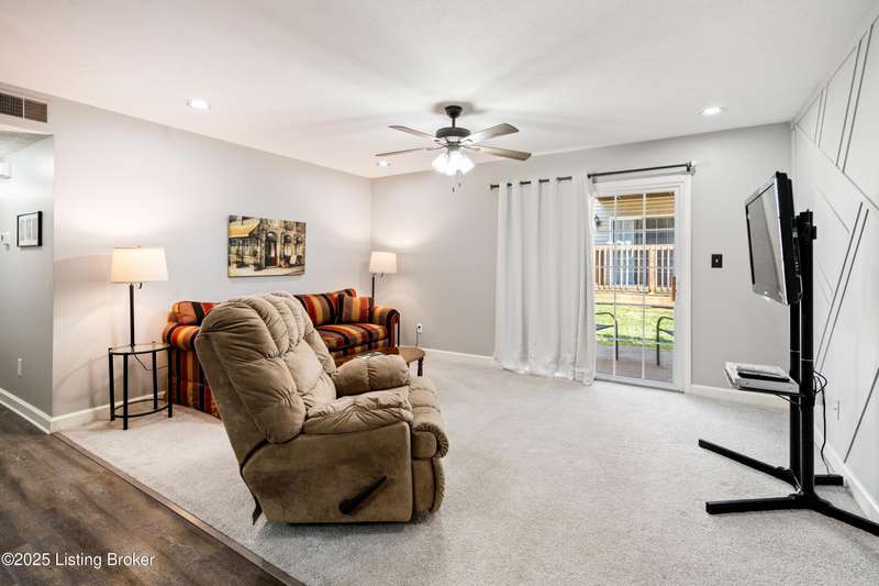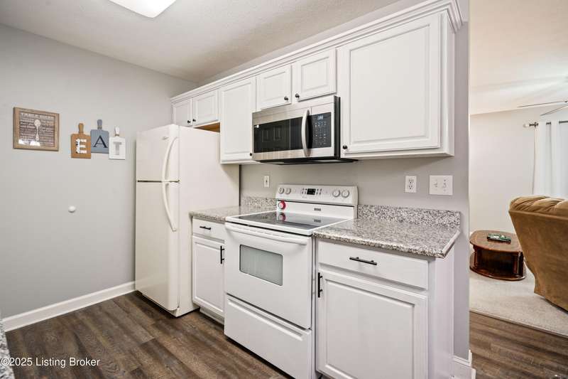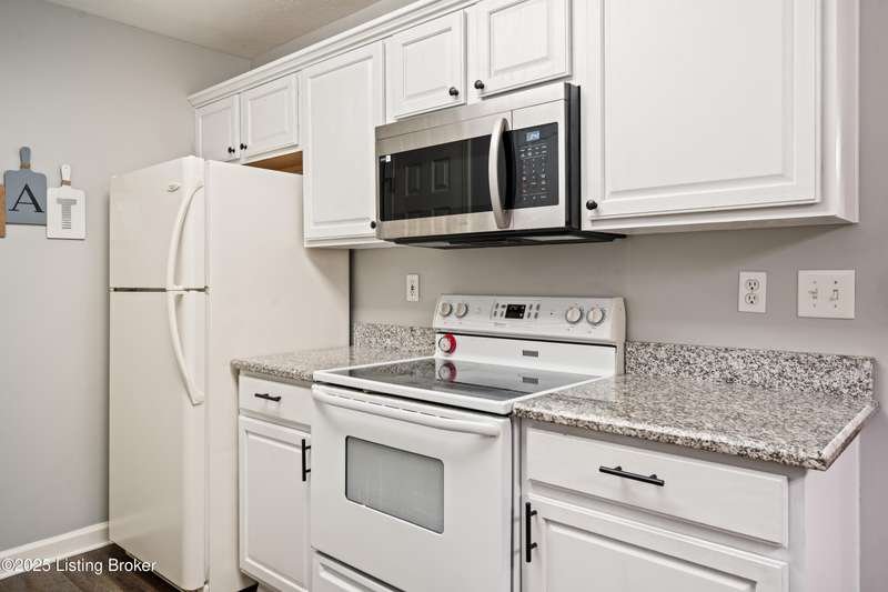 Why keep renting when you can own a beautifully updated Condominium that feels like home? Welcome to 11913 Tazwell Dr #2 - a stylish, move-in ready FIRST-FLOOR CONDO offering 2 Bedrooms, 2 Full Baths, and thoughtful upgrades throughout. With payments comparable to many area rentals, this home provides the opportunity to start building equity while enjoying all the benefits of low-maintenance living. Inside, you'll find a welcoming Foyer with luxury vinyl plank flooring that leads into the open Dining, Kitchen, and living areas. The Living Room features 9' ceilings, a feature wall with geometric design, ceiling fan with light, and sliding doors that open to a private covered patio. The updated Kitchen is designed for both function and style, complete with white cabinetry, granite countertops, and newer hardware. Appliances include a Frigidaire refrigerator and dishwasher, Maytag smooth-top stove, and a brand-new Samsung stainless microwave (2024). A large pantry provides extra storage, while the stainless sink with pull-down sprayer adds convenience. The Primary Bedroom retreat includes a tray ceiling, new carpet (Spring 2024), ceiling fan, and a double closet. The en-suite bath was fully renovated in 2024 with new vanity, countertop, brushed nickel faucet, mirror, toilet, and luxury vinyl tile flooring. A walk-in shower and linen closet complete the space. The second Bedroom, also with double closet, sits near the full Guest Bath with new LVT flooring, tub/shower combo, and marble-top vanity. Everyday chores are made easier with an in-unit Laundry, complete with shelving for supplies. Recent updates include new hallway light fixtures (August 2025), fresh brushed nickel door hardware throughout (2024), and a convenient keyless entry lock. As part of the community, you'll enjoy a reserved parking space right outside the door (#2) plus a Condo Association that takes care of exterior maintenance, master insurance, water, sewer, and trash. That means fewer monthly surprises and more time to enjoy your home. Best of all, this location offers easy access to I-265, shopping, dining, and major employers like the Ford Truck Plant - all just five minutes away via Westport Road. Stop paying your landlord's mortgage and start investing in your own future. With modern updates, a smart floor plan, and a payment comparable to renting, this Condo is the perfect opportunity to step into homeownership with comfort and style!