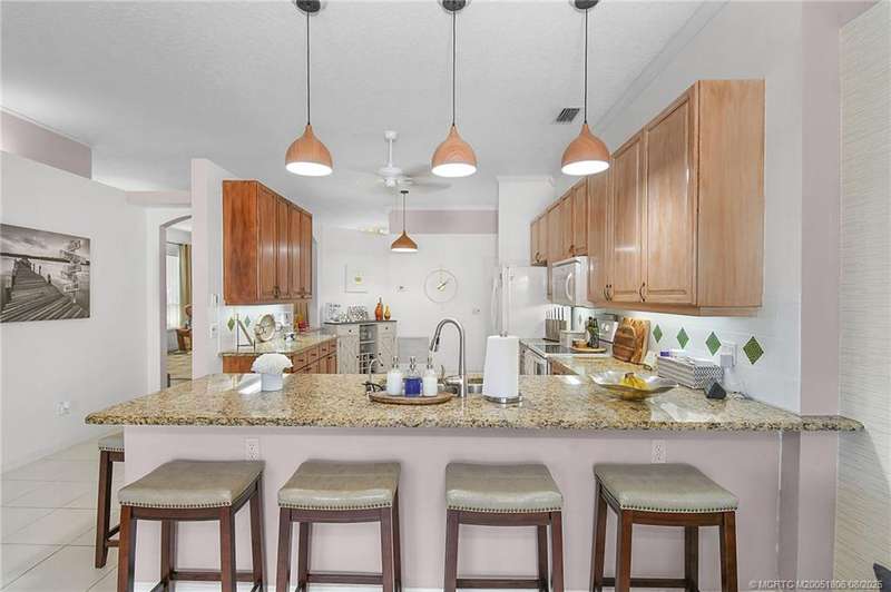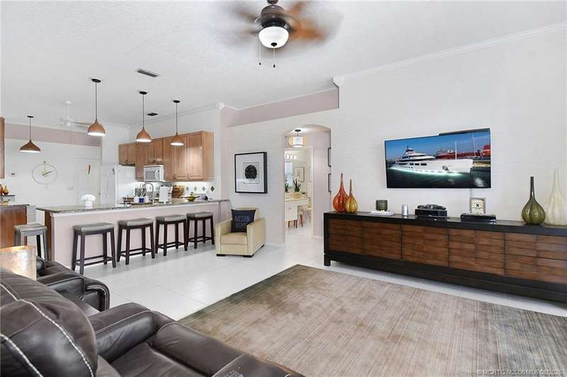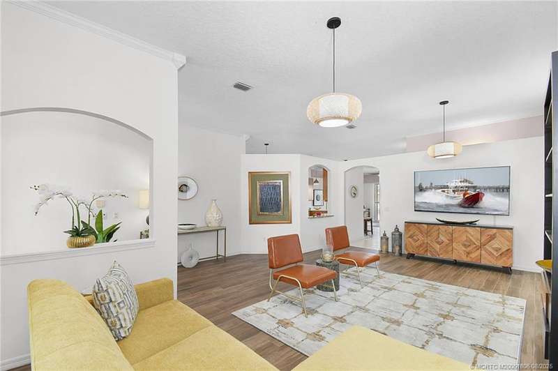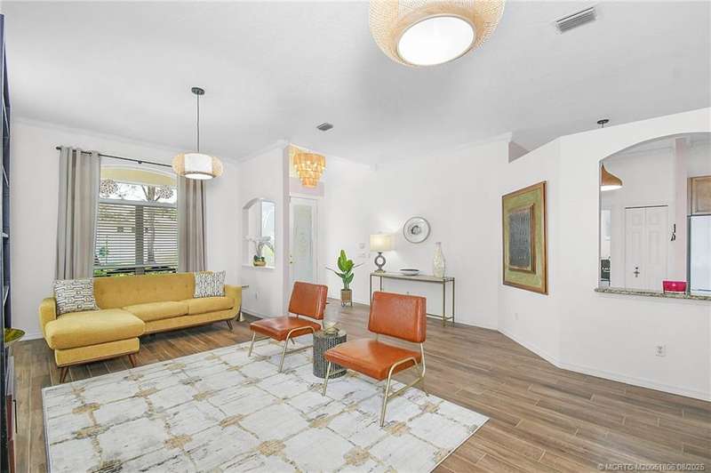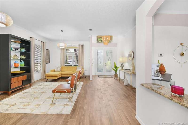Step into serene lakefront luxury living in the heart of St. Lucie West. This stunning residence greets you with breathtaking water views the moment you arrive, Landscaped front yard features twin palms. Enter through a vaulted screened patio & elegant double-door entry into a soaring foyer highlighted by a custom chandelier. You'll be captivated by uninterrupted lake views that stretch through the home to your private backyard oasis. Enjoy Florida living at its finest Plantation shutters offer timeless style, shaded lakeside screened patio invites you to relax & unwind in comfort. Wake to lake views in your master suite, with additional water views from the kitchen & second bedroom truly making this a home designed around its natural surroundings. The Royal Club features pool, clubhouse, lighted tennis & pickleball courts. Just minutes from all the best shopping, dining, golf & recreation St. Lucie West has to offer. Don’t miss the opportunity to own this slice of lakefront paradise.