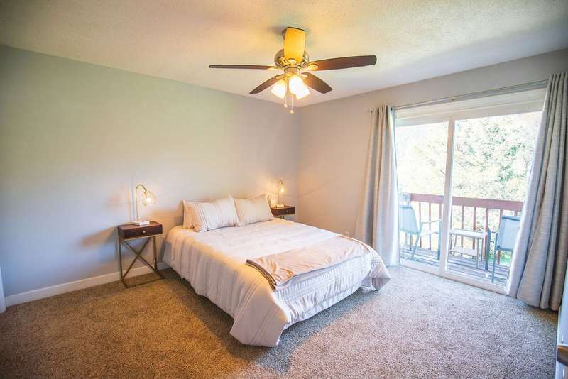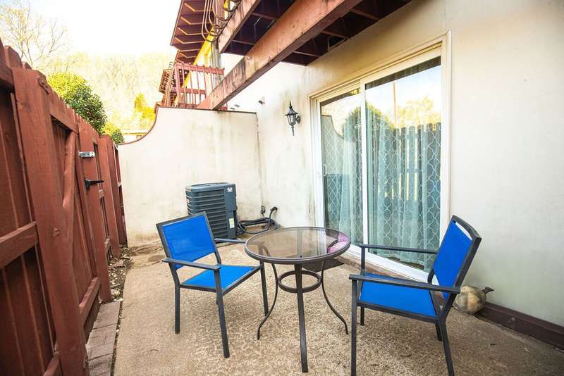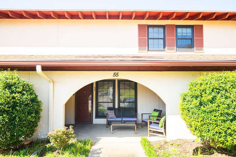 Updated in 2021, this two-story Bellevue townhome offers a blend of modern finishes and functional spaces. The main level features laminate flooring, while the upstairs bedrooms (both with large walk-in closets) are carpeted; both baths have tile flooring. Kitchen includes granite countertops, stainless appliances (dishwasher, range, and French-door refrigerator which conveys). Half bath down includes stacked washer/dryer which also conveys. Outdoor living is enhanced by covered front porch, private 2nd floor balcony, and fenced and gated back patio. Community amenities include swimming pool and tennis courts. HOA covers water and sewer, trash pickup. Rentals are permitted, making this property suitable for both primary residence and investment. Conveniently located with access to shopping, dining, and major roadways.