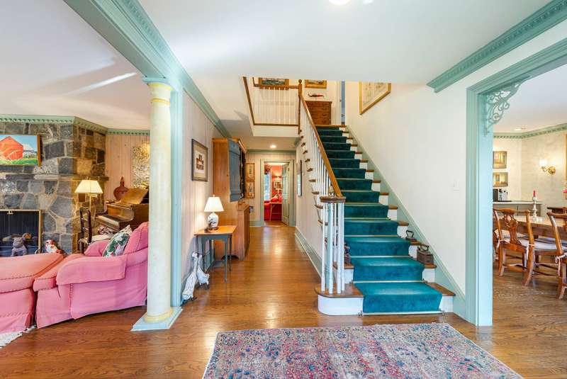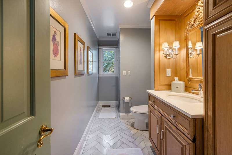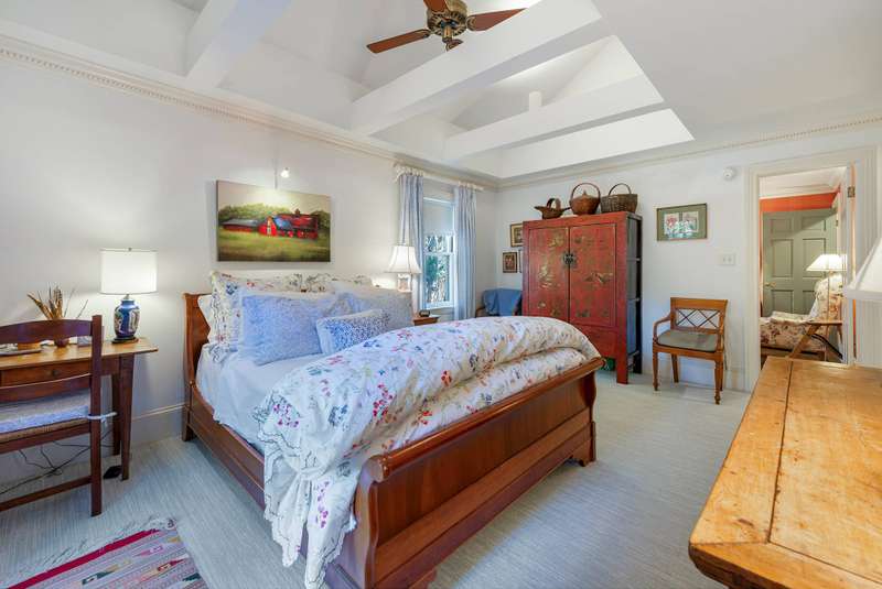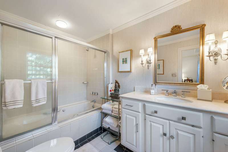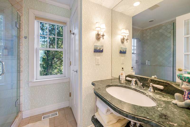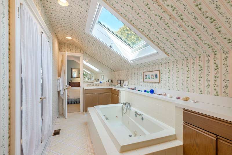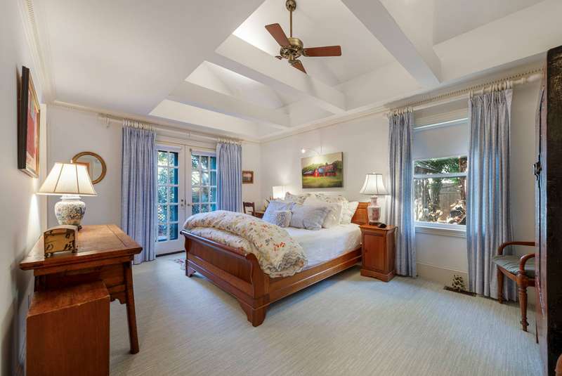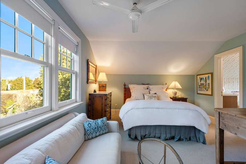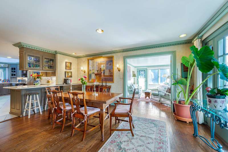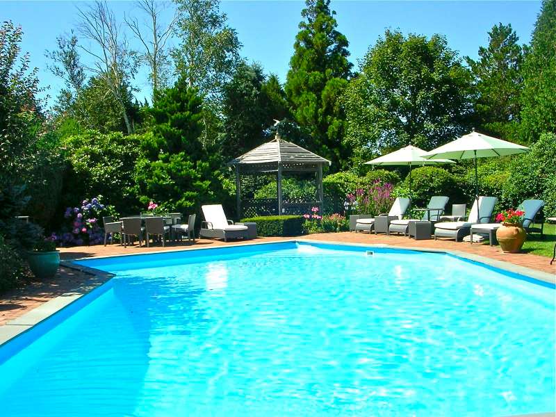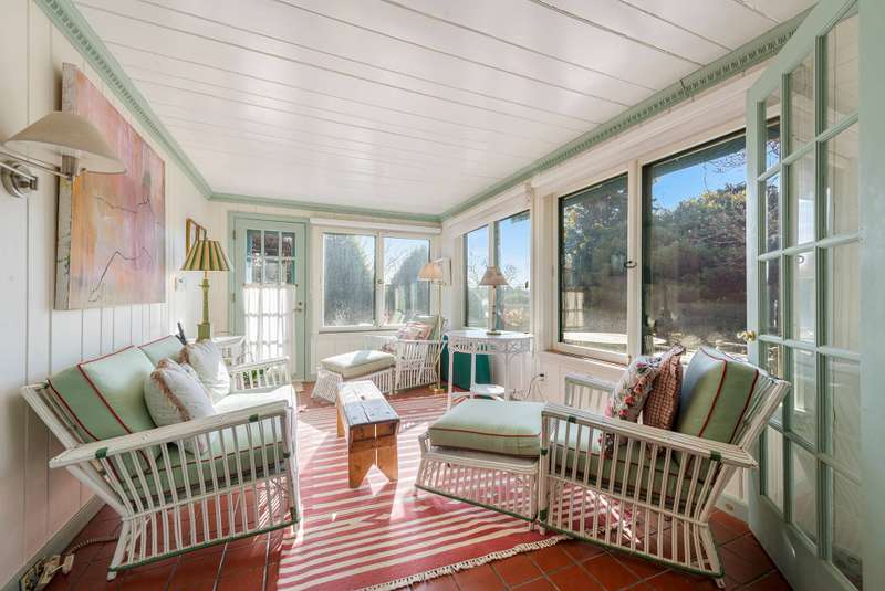 RP230499: This very private traditional home sits on a semi-circular lot, south of the highway looking out onto Mecox Bay with a private dock across the street. There are 4 bedrooms plus two rooms that can be converted into bedrooms. There are 4 full bathrooms, Jacuzzi, steam shower, a library, two living rooms, a sunroom, a large modern kitchen with subzero, thermador, chambers, etc. and a full dining room to seat 12 people. Property has a heated pool, pool house with bathroom and outdoor shower, gazebo, pergola, koi fish pond, an audio system that extends throughout the property and modern WiFi. House is fully equipped and ready for a great summer with bikes and games and much more. The gardens are a labor of love and have been on garden tours.