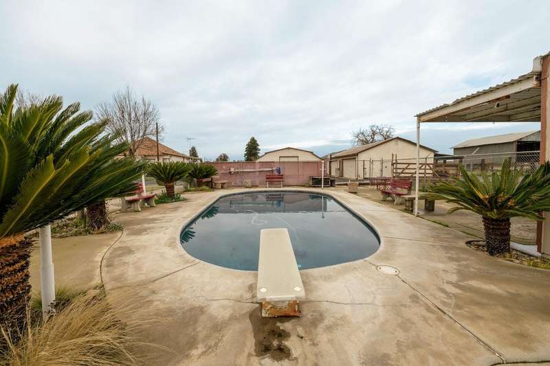 Looking for your perfect country retreat? This property has 9.89 ac. and offers everything you need for serene living. Home has 4 bedrooms with two being master suites. Perfect for In Law quarters. Aprox. 2200 sq.ft. this home has a open floor plan & great for entertaining.Pool, plus pool house or potential ADU and additional rental farm house. Work shops with plenty of out buildings for storage.Pasture is fenced and flood irrigated.