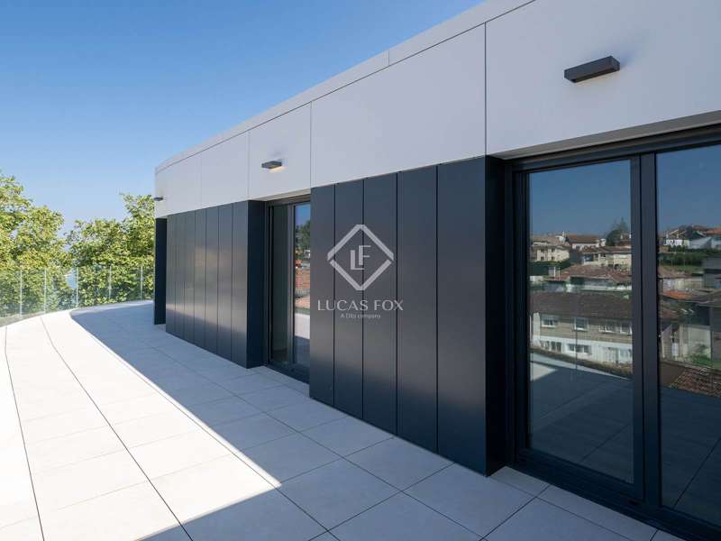 On the tranquil coast of Vigo city, in one of the most coveted areas of Oia-Canido and just minutes from the beaches of Samil, we find this unique penthouse. This is a property that not only redefines comfort but elevates it with style, light, and a constant connection to the sea. This exclusive 229 m² penthouse with a 91 m² private terrace, located in a modern, recently built development, combines contemporary design, functionality, and luxury in a single space; all with the privacy and serenity that only a setting like Canido can offer. This penthouse receives plenty of natural light because of the direction it faces. Every corner has been designed to enjoy the surroundings: a large, sunny terrace offers unobstructed sea views, making it the perfect place for leisurely breakfasts or dinners with friends at sunset. It has three bedrooms, all designed to guarantee rest and comfort. Three modern bathrooms with good finishes complement the private spaces, offering functionality without sacrificing style. There is also a study/office area that can be converted into another bedroom. The fully-equipped kitchen is designed for those who love design and fine dining. Opened up to the living room, it creates the perfect atmosphere for sharing memorable moments. Underfloor heating also provides warmth in winter without compromising the apartment’s clean aesthetic. The penthouse is part of a private development with communal green areas, a swimming pool, and direct access to a garage with two large parking spaces and a storage room. The penthouse can be reached directly by lift. This would be an ideal property for a family looking to live near Vigo city center or a couple looking to enjoy a beautiful, relaxed lifestyle near the sea with friends and family. Please contact us for further information.