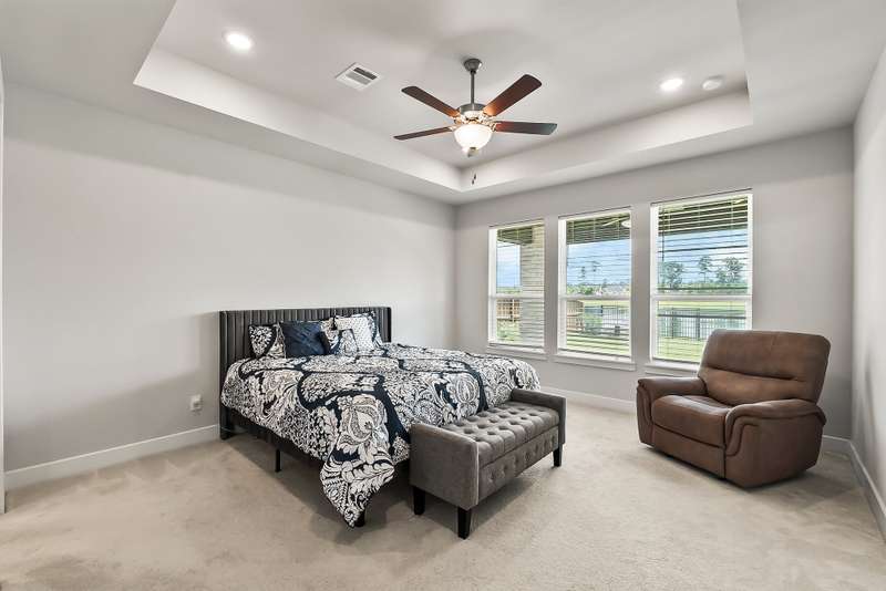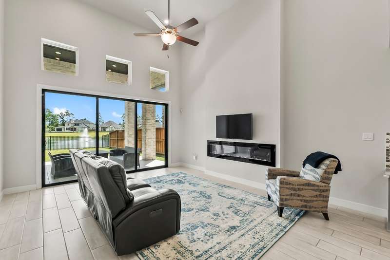 Luxury and Lake Views in this 2021 Toll Brothers Stunner in the Coveted Woodson's Reserve! This versatile 2-story offers 4 bedrooms, including 2 down, plus a home office, formal dining, designer kitchen with quartz countertops, and an open family room with 84" linear fireplace and a slider wall out to the expansive patio with serene views of the lake. Upstairs there is a spacious gameroom and two additional secondary bedrooms (Floorplan in the photos). Impressive stucco curb appeal with exterior lighting and plenty of backyard space. Fantastic location and walking distance to CISD Hines Elementary (K-4) and Clark Intermediate (5-6). Woodson's Reserve is a premiere lifestyle community located conveniently to TX-99, The Woodlands, IAH Airport, Hardy, Exxon Campus, Major Medical, HEB, etc. Enjoy incredible amenities including 8 pickleball courts, tennis, dog park, clubhouse, gym, pool, trails, stocked fishing ponds, playgrounds and more!