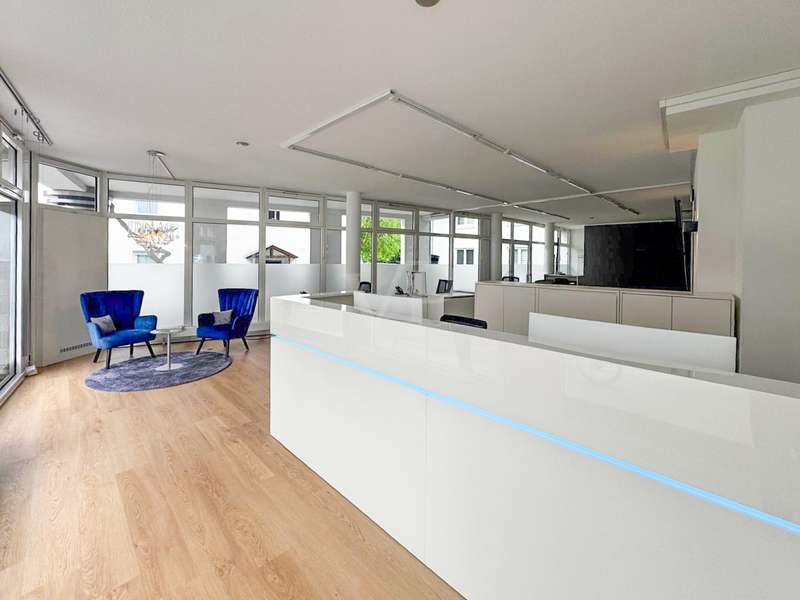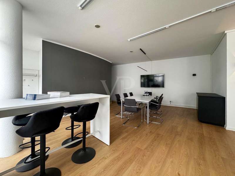 TOP COMMERCIAL SPACE for rent in 71083 HERRENBERG ZENTRUM. Commercial premises on the first floor in a central location in Herrenberg are available to let with immediate effect. The total area is approx. 121 m² and consists of a large sales area, two toilets, kitchenette and storage room. The modern building has very large, floor-to-ceiling shop windows on 2 sides. This commercial unit can be used in a variety of ways, for example as a retail space, medical practice, physiotherapy, naturopathy and physiotherapy practice. The premises have ideal transport connections. The bus stop is in the immediate vicinity and the train station is within walking distance.