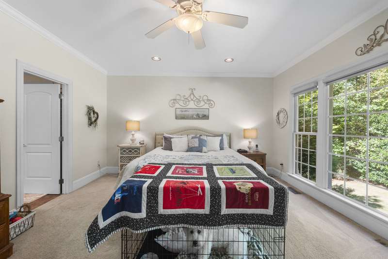 Welcome home to this private, hidden gem in Wake Forest! From the moment you drive up, you are greeted with beautiful mature trees and calming landscape. Situated on over 1.5 acres in a cul-de-sac, this quiet retreat offers a cozy front porch privately nestled with Japanese Maple trees, greenery covered archways, and a stone walkway. Upon entering the home, you are welcomed by a gorgeous entry with archways, high ceiling, and gleaming hardwood floors. Through the large archway to your right, step into a spacious sitting room with a front window spanning from the floor to the ceiling and across significant portion of the wall. This makes for perfect bird watching as a feeder and birdbath sits in front of the window. Through the archway to the left, you will find a formal dining room with two windows stretching to the floor. Your guests will thoroughly enjoy sharing a meal with you in this lovely dining area. Enjoy your morning coffee on the private and spacious screened porch with a view of the lush forest, Japanese Maple trees and a stone patio. Then relax in the family room with high ceilings and built-in bookshelves flanking the fireplace. The large windows frame a gorgeous view of the inset stone back patio, greenery and flower gardens, and the many, privacy providing mature trees. Continue into the beautiful kitchen with plenty of storage, granite countertops and large eat-in kitchen area offering lots of natural light. Enjoy a first floor owner suite and large ensuite bath, with an owner closet that will WOW you!!Continue upstairs to the 3 additional bedrooms with 2 additional full baths. Step down into an oversized bonus room with so many options! Need storage? DO NOT MISS the 3 walk-in storage areas located on the 2nd floor. NEW Roof 2019, NEW HVACS, 2025 (downstairs) and 2024 (upstairs). Fresh interior paint, leaf guards on gutters, water softening system. So much to discover and love about this home and property. Be sure to visit and walk the grounds, you will be recharged and reminded of the natural beauty that nature offers. And although this home feels like a remote resort, it is conveniently located approximately 20 minutes from highway 540, Falls Lake and trails, highway 98, and US1. In addition, plenty of restaurants and shopping are minutes away. This property offers quiet living but also the convenience of city life within a short drive. Welcome home!
