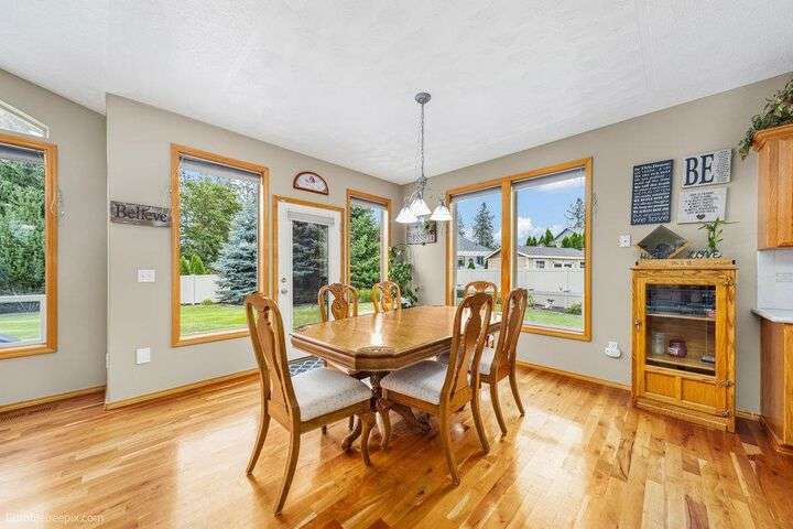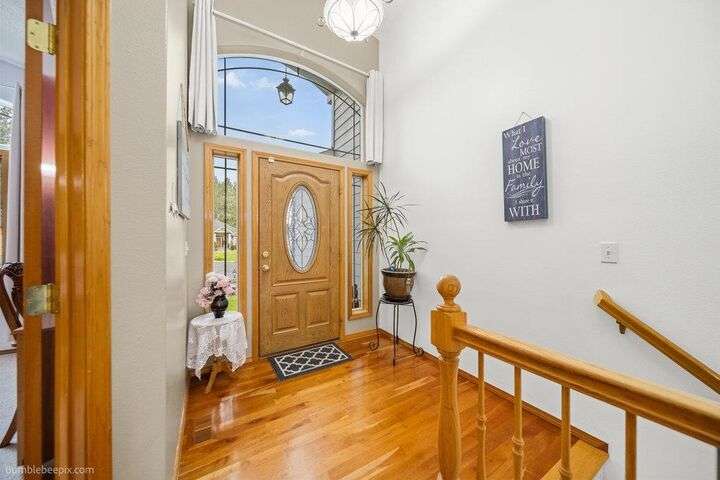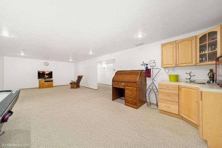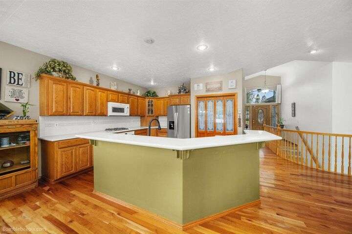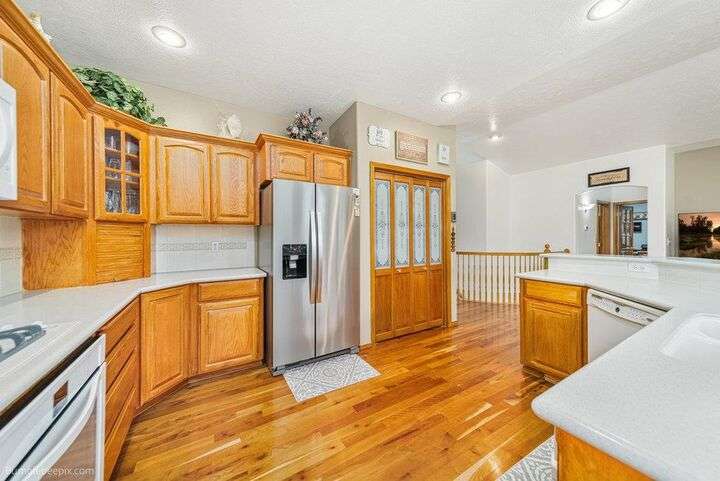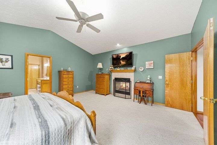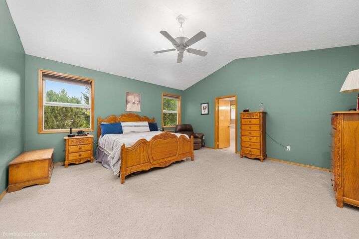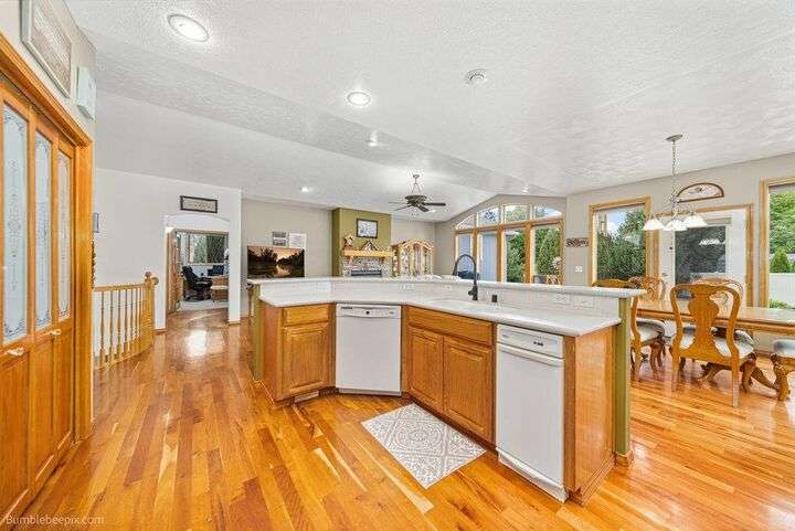 Spacious 5-bed, 3-bath home offering nearly 4,000 sq ft of comfort and versatility! The open-concept main level features vaulted ceilings, hardwood floors, and a cozy stone fireplace. Natural light pours through expansive windows, showcasing the inviting kitchen with wraparound counters and abundant cabinet space. Enjoy main-floor living with a generous primary suite, while the fully finished basement includes a huge rec room, additional bedrooms, and flex space for hobbies or guests. Ideal for entertaining indoors or out—with room to host, relax, and grow. Welcome home!