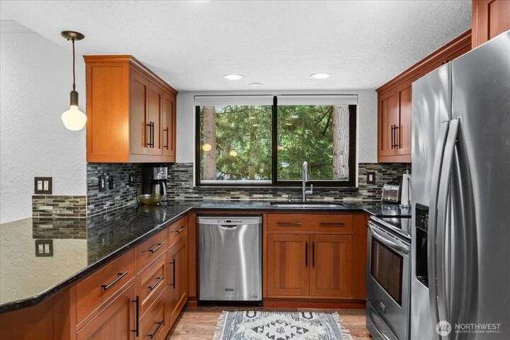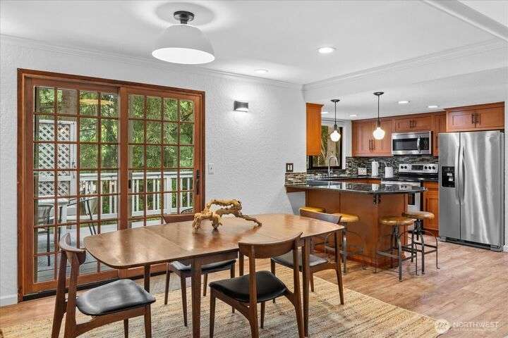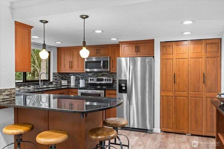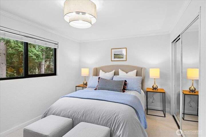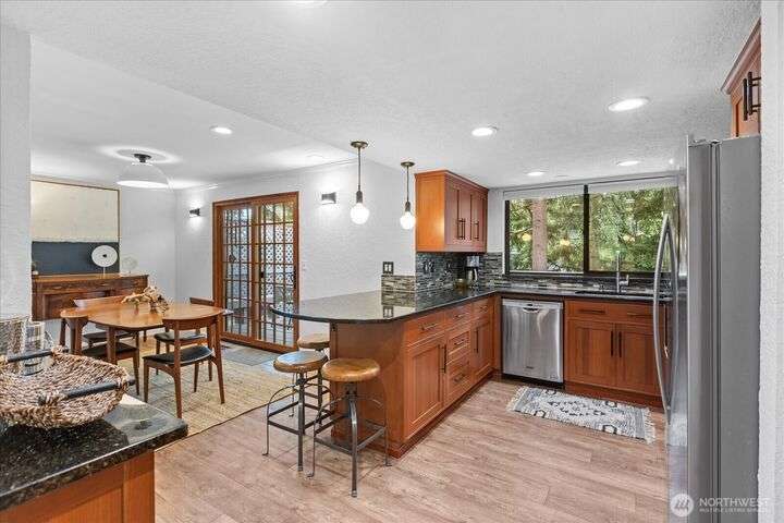 Seldom do homes become available in this coveted enclave of 16 residences, each set on expansive, pristine lots in scenic Woodlake. This impeccably maintained property showcases true pride of ownership, offering a serene backdrop with complete privacy and inviting spaces for indoor/outdoor entertaining. Though it feels like a peaceful retreat, you're just minutes from Swedish Hospital & a variety of restaurants & amenities. Downtown Edmonds is a short drive away! Enjoy a refreshing walk through Pine Ridge or Yost Park, then stop by Bar Dojo for a bite or grab a coffee at Caffe Ladro. Thoughtful, stylish updates include new carpet, fixtures, trim, paint & more. Underground utilities & cul-de-sac sidewalks enhance the clean, well-kept appeal.