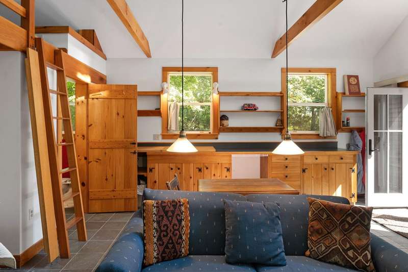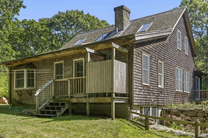 Set on 3 acres of natural beauty, this 1968 s/f post-and-beam home offers a tranquil and inviting setting surrounded by stone walls, serene gardens, and the glacial erratic stones that distinguish the Chilmark landscape. The main residence features three levels of living. A chef's kitchen with a Viking gas range and pantry overlooks the open floor plan, awash in natural light with wide-plank floors, leading seamlessly through living and dining areas with French doors to a dining patio and sundeck. Past a fieldstone fireplace is the music room and a first-floor primary suite with a full bath featuring handcrafted artisanal tile, slate floors and soaking tub. Brick patios and winding garden paths extend the living space outdoors, encouraging quiet enjoyment of the landscaped grounds and wooded trails. A partially finished, walk-out lower level with its own stone wall and beach grass entry provides versatile bonus space. Completing the property is a detached 576 sq. ft. studio with a loft, full bath, and deck-ideal for guests, work, or creative pursuits-as well as an oversized barn-style two-car garage with a large loft space above. You'll enjoy coveted Lucy Vincent Beach, as a Chilmark property owner, providing an exceptional opportunity to own a distinctive Vineyard retreat.
