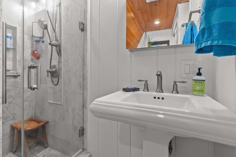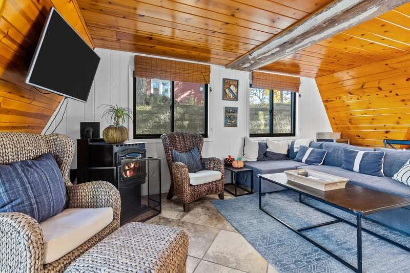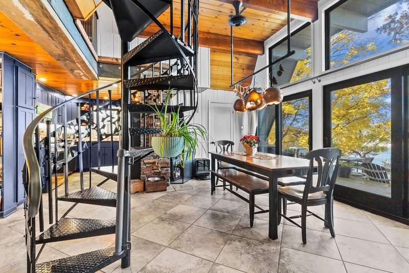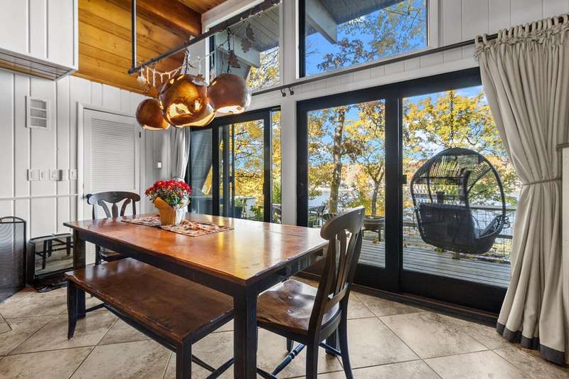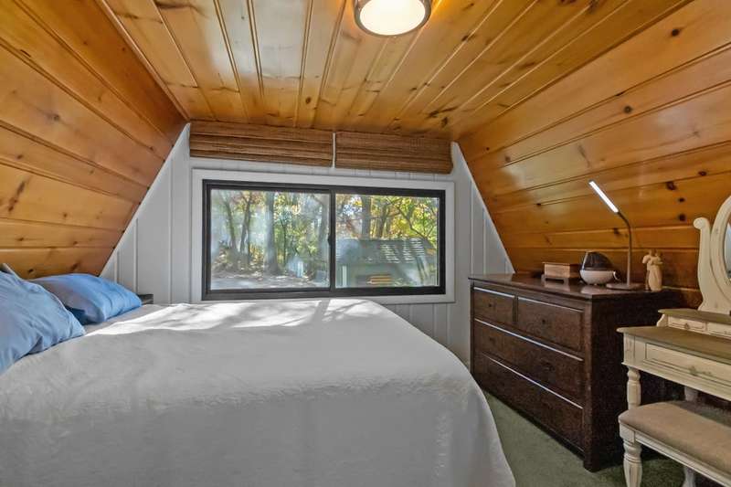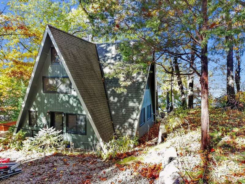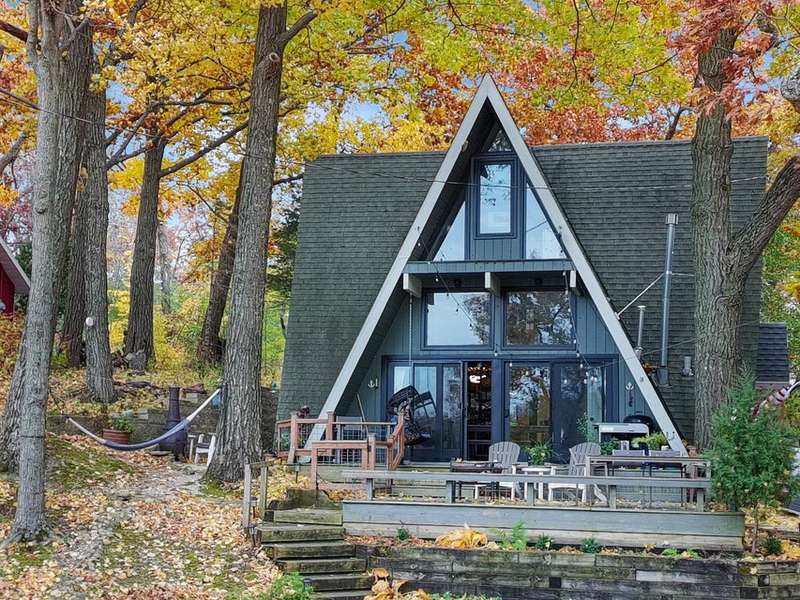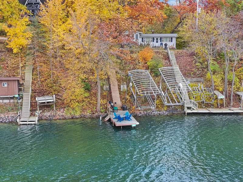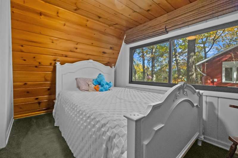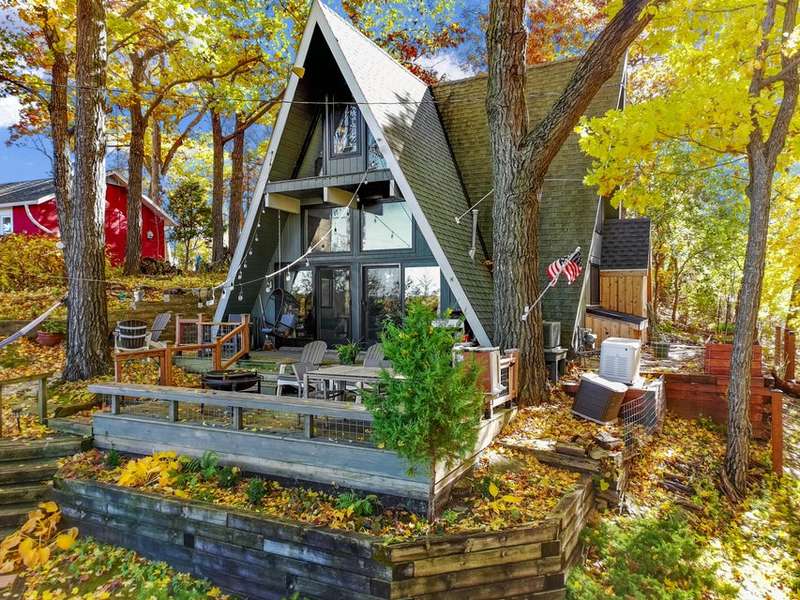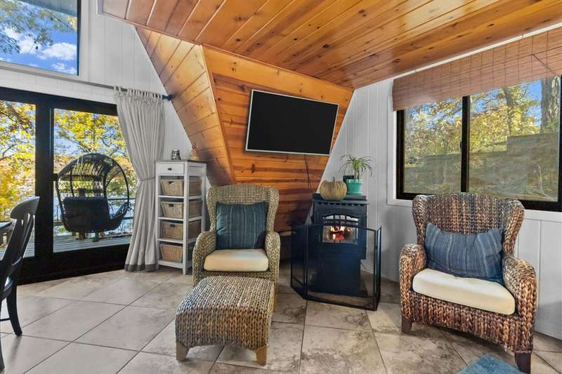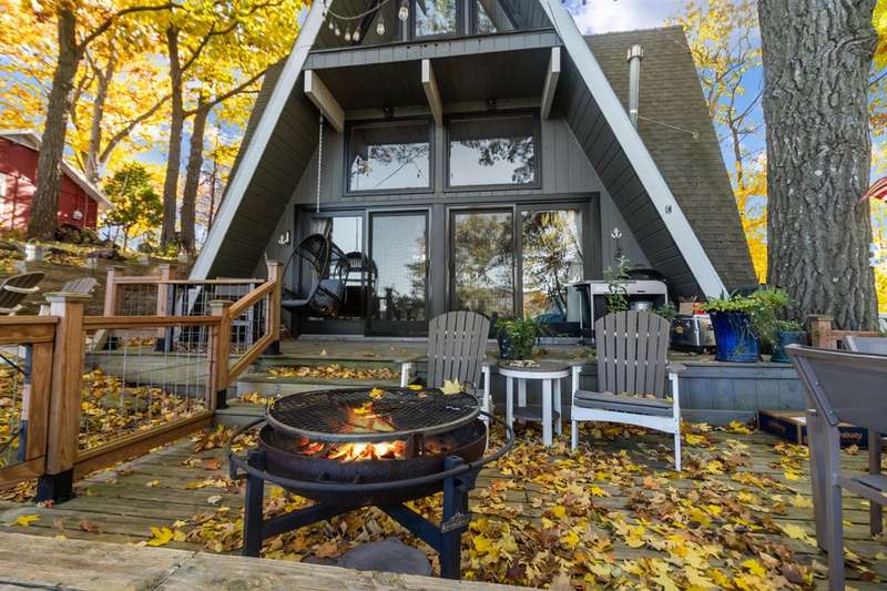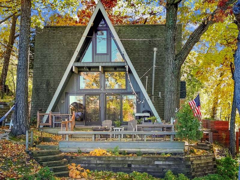 The cutest A-frame chalet perched atop a hill with expansive views of Lauderdale Lakes! This 3BR, 1.5BA retreat offers 50 feet of prime Middle Lake frontage with some of the best swimming around. The open floor plan on the main level showcases expansive lake views and features warm knotty pine throughout along with an updated kitchen. Main floor bathroom has a luxurious marble shower. Step out onto the spacious deck for al fresco dining and take in the stunning scenery. The private backyard includes a fenced area perfect for dogs. This charming cottage is just as delightful in the winter--ideal as a seasonal lake getaway, short-term rental, or cozy year-round home. Extra bonuses: Main floor has electric in floor heat, pellet stove, whole house back up generator, new windows & doors 2023
