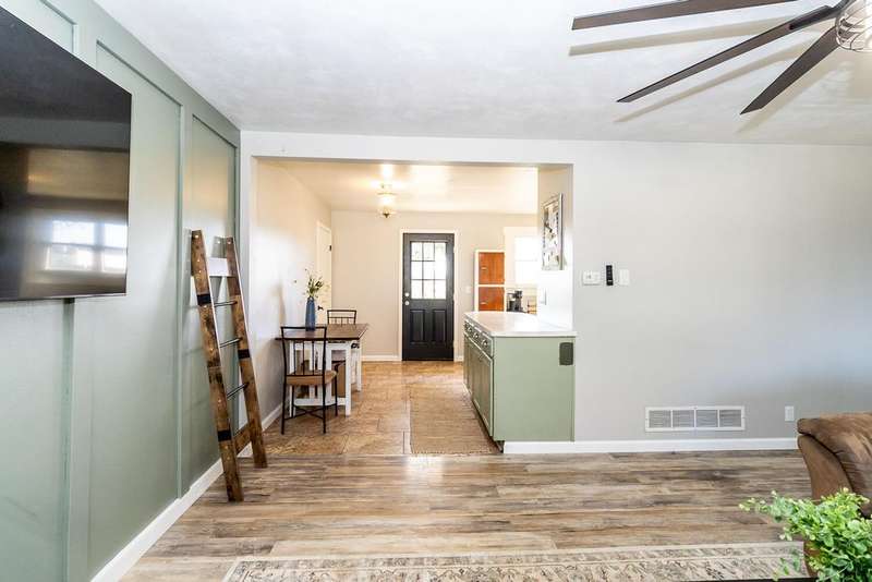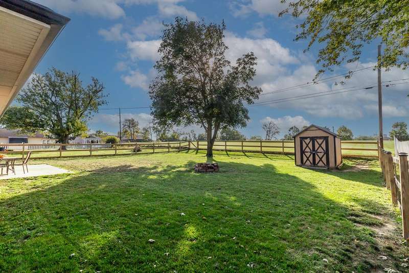 A peaceful brick ranch with no rear neighbors and a backyard that feels like your own little world. From the covered front porch to the shade-draped backyard, 104 Oxford Drive pairs timeless 1960s craftsmanship with thoughtful updates and easy, one-level living. This clean, comfortable home offers three bedrooms, two full bathrooms, laundry on the main hallway, and an attached one-car garage across 1,080 square feet designed for everyday convenience. The bright living room opens to an eat-in kitchen with bonus cabinetry and direct access to the patio and backyard -- perfect for carrying dinner outside on warm evenings. Down the hall, the primary bedroom features an en suite bath with a walk-in shower, while two additional bedrooms share a full hall bath with a tub/shower combo. Major improvements mean low-maintenance living: a 2024 roof with a 20-year transferable warranty, new gutters and downspouts, updated electrical, fresh flooring, new light fixtures, exterior doors, and paver accents that boost curb appeal. Out back is the real showstopper -- no rear neighbors, mature shade tree, a fully fenced yard, and plenty of space to relax or entertain. Fire up the grill, string the lights, invite your favorite people, and enjoy a backyard built for memory-making. A large utility shed keeps everything tidy and accessible. All of this sits just a block from Greenville's new K-8 school and minutes from shopping, dining, and everyday essentials. Whether you're starting out or simplifying life, this home offers comfort, privacy, and value that's hard to beat.