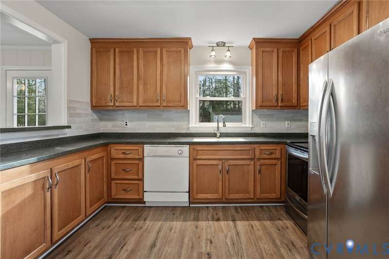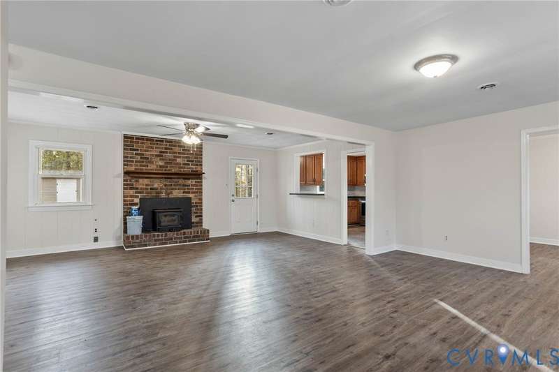 Home renovated with fresh paint, mostly new light fixtures, New side porch and new deck. Kitchen has a new tile backsplash and most of the home has new LVP flooring. Very private setting with multiple sheds and very private yard make this home an absolute jewel. The Dining area and foyer was at some point opened up into the living room and the living room features a wood burning fireplace. Magnificent tile bathroom in the hall and a Primary suite with its own private bath. Home also has a flex room that would make a nice office, guest room, or play room. Home has over $50,000 put into renovations and repairs to include items named above and new water pressure tank. This home is ready for a new owner. Please note: Outbuildings sold as is. Fireplace sold as is. Listing Agent is Related to Seller.