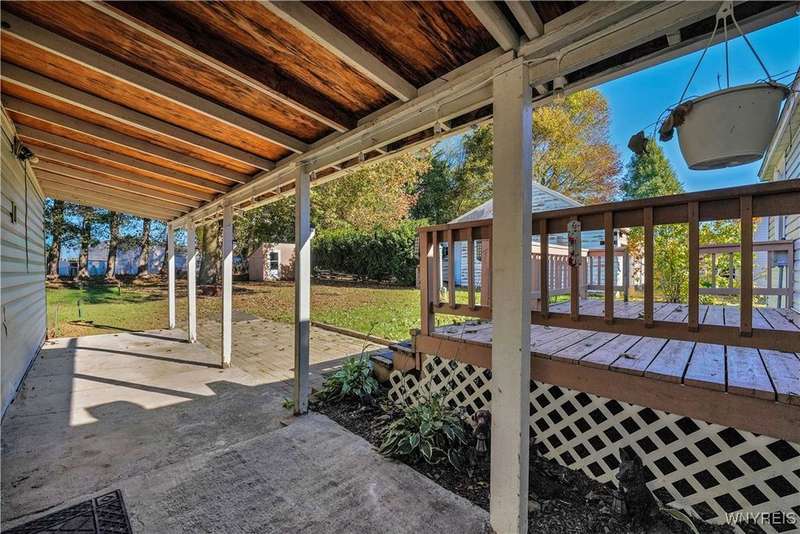 Welcome to 3236 Westover Street in Yorkshire!This charming single-floor home offers easy living and low-maintenance vinyl siding. Inside, you'll find a convenient layout with tasteful paint colors and a bright kitchen featuring a breakfast bar and sliding doors that open to a deck overlooking the spacious backyard ? perfect for relaxing or entertaining. The deep detached garage provides extra storage space, and the large basement adds plenty of additional usable area.Enjoy the comfort and efficiency of natural gas heat paired with affordable Arcade Electric service. Located within walking distance to Pioneer Middle and High Schools and close to amenities, this cozy 2-bedroom home is ideal as a starter or for those looking to downsize. Recent updates include a newer forced-air furnace and hot water tank ? move right in and enjoy! Square footage not listed on tax records, listed square footage is based upon updated measurements.
