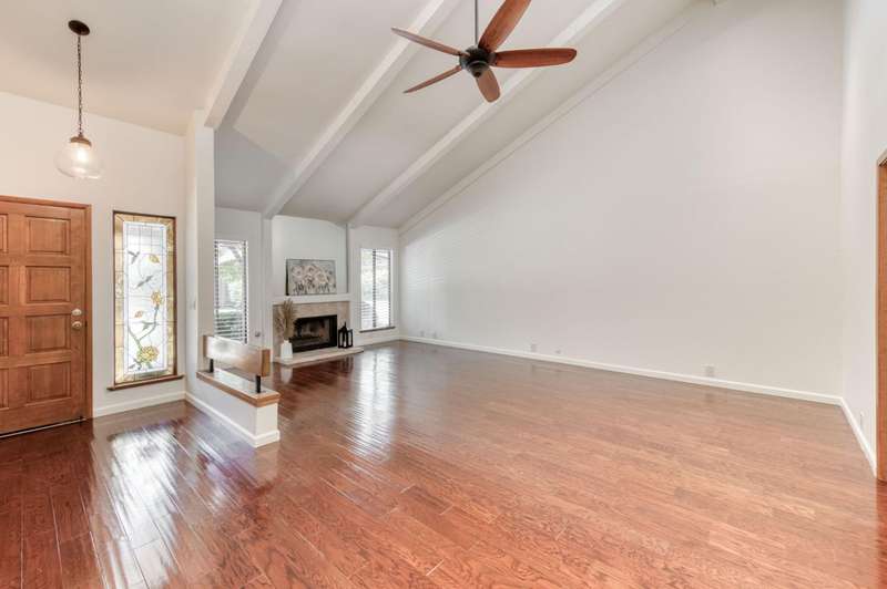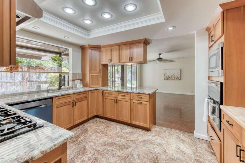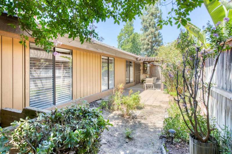 Welcome to The Fig Gardens gated community. This handsome single level condo is ready for immediate move in with an updated kitchen and fresh paint throughout. You will love the layout with 3 large bedrooms and the vaulted ceiling in the great room complete with a fireplace. The kitchen was completely remodeled and features beautiful cabinets with custom tile work and granite counters with stainless appliances, a professional gas cooktop. and a charming garden window. There are wood floors throughout and all rooms are painted in a creamy ivory. The backyard is private and features a small pergola and concrete area with a large side yard area as well. There is a two-car garage with built-in storage and also plenty of guest parking. This is a lovely and quiet community with mature trees, grassy areas and a pool/spa for your enjoyment. Go see it today! Active pending cancellation of contract.