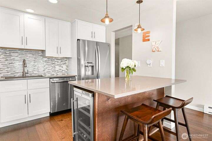 Beautifully remodeled west-facing condo at Rip Tide with sweeping views of Bellingham Bay and the San Juan Islands. This 2 bed, 2 bath home offers front-row seats to stunning sunsets and overlooks iconic Taylor Dock. The interior has been completely updated, featuring a modern open-concept kitchen that flows into the dining and living areas—perfect for entertaining, plus a designated parking space with its own EV charger. Located just steps from Boulevard Park’s waterfront trails and minutes to historic Fairhaven’s shops and dining. The entire complex has recently undergone a full exterior and landscape renovation, making this a rare opportunity to own a move-in-ready waterfront condo in one of Bellingham’s most desirable locations.