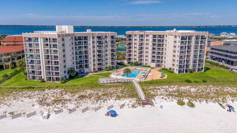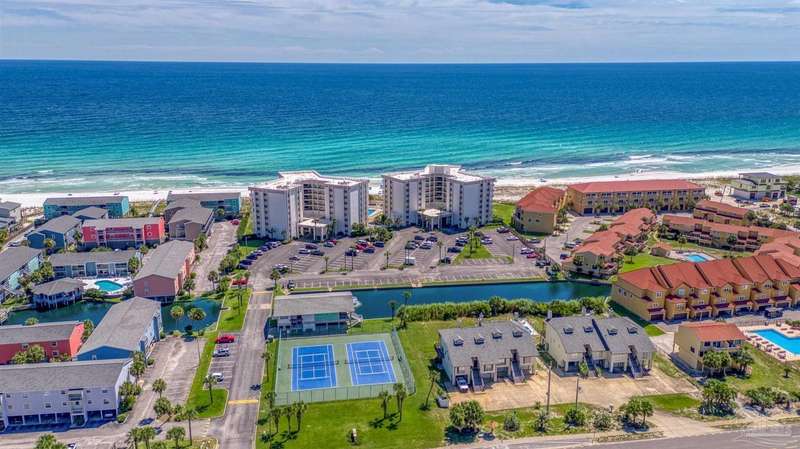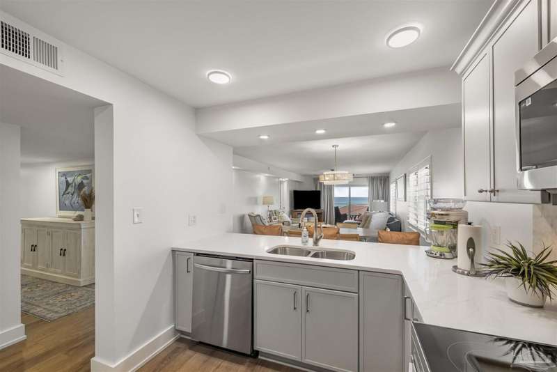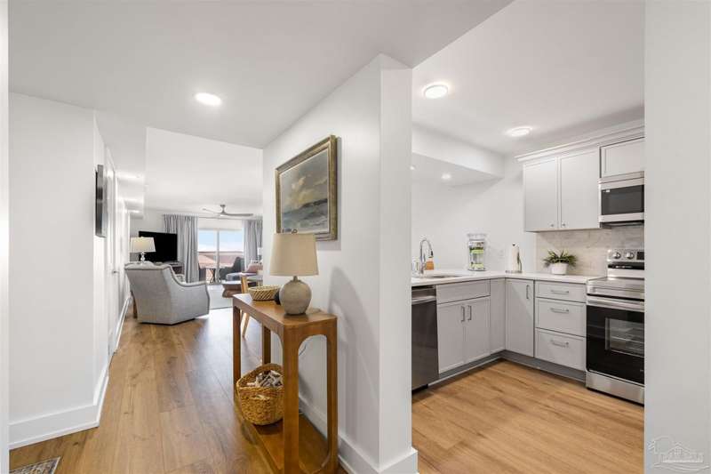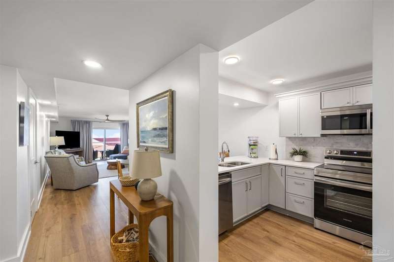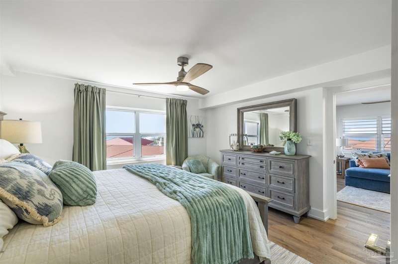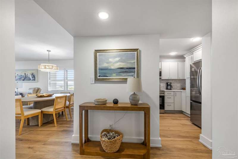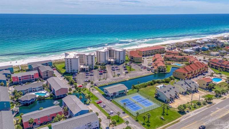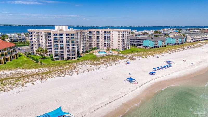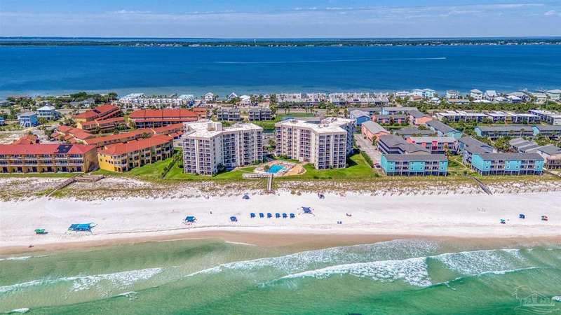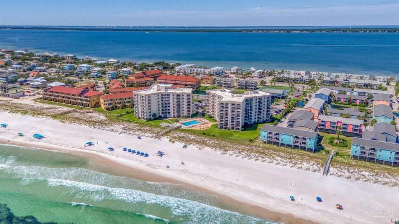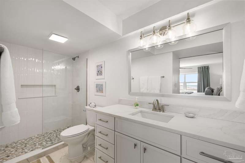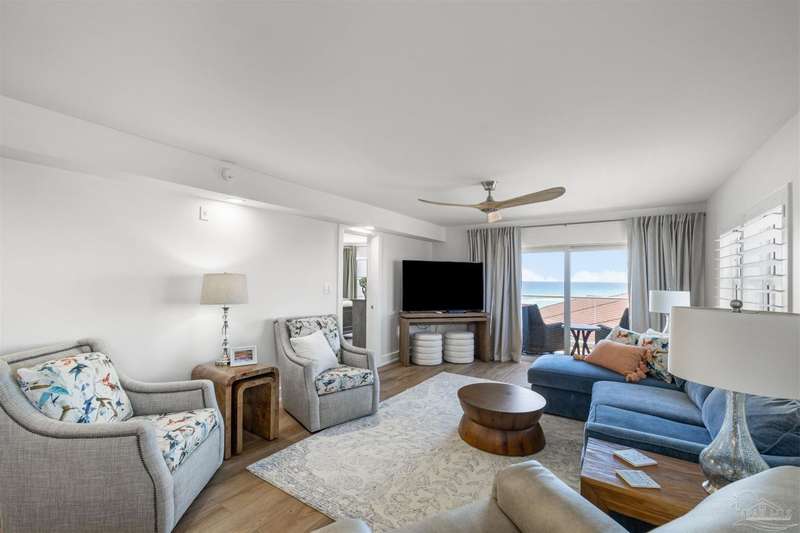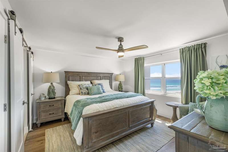 Experience the pinnacle of coastal luxury in this fully renovated 3-bedroom, 3-bathroom Gulf-front condo at Regency Towers on Pensacola Beach. Every detail has been thoughtfully curated by a professional designer, from the sleek, modern kitchen with custom painted wood cabinetry, quartz countertops and stainless steel appliances to the spa-inspired bathrooms featuring designer tile work and glass enclosed showers. The spacious open-concept living area is framed by wall-to-wall windows that flood the space with natural light and open directly onto a beachfront balcony-perfect for morning coffee or sunset cocktails. Two ample bedrooms offer private ensuite bathrooms, with the primary suite showcasing unobstructed views of the emerald Gulf waters. With upscale furnishings, premium finishes, and direct beach access, this turnkey residence combines elegance and ease in one of Pensacola Beach's most sought-after Gulf front communities. Regency Towers is the perfect beach front community for a full time residence, second home or short term rental with pristine amenities including a beach front pool, tennis court, gym, recreation room and gorgeous landscaping.