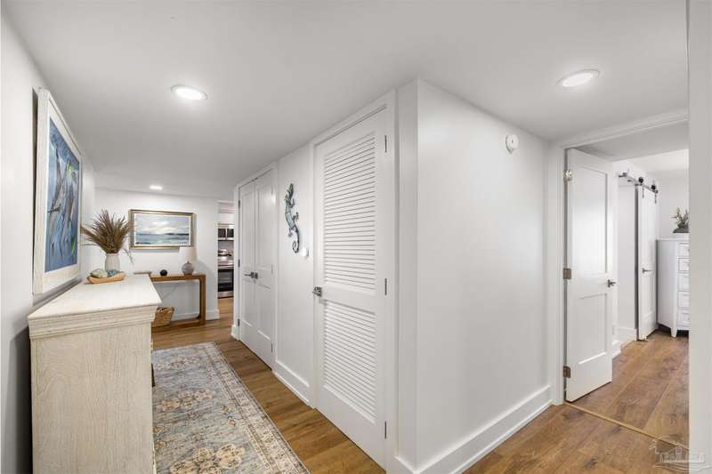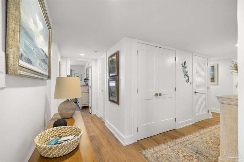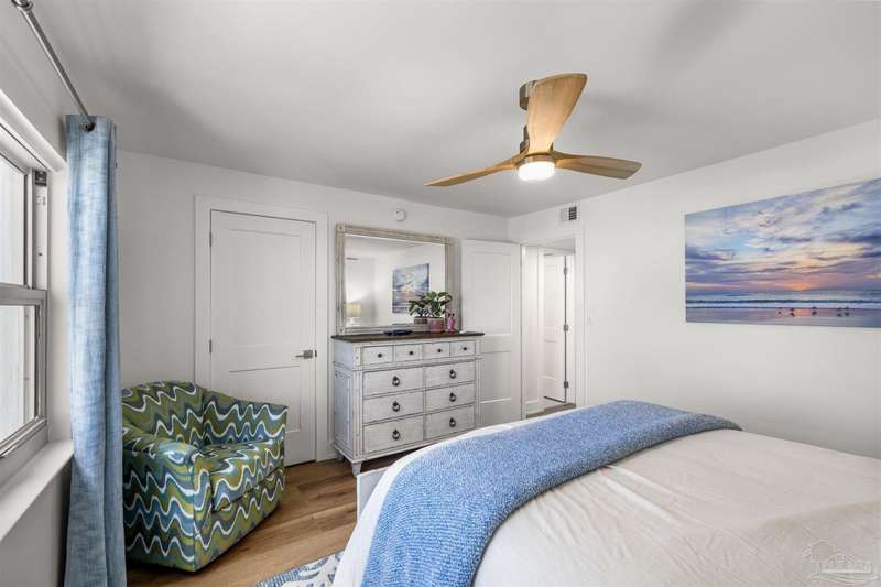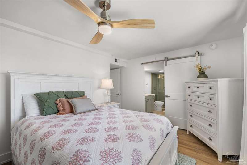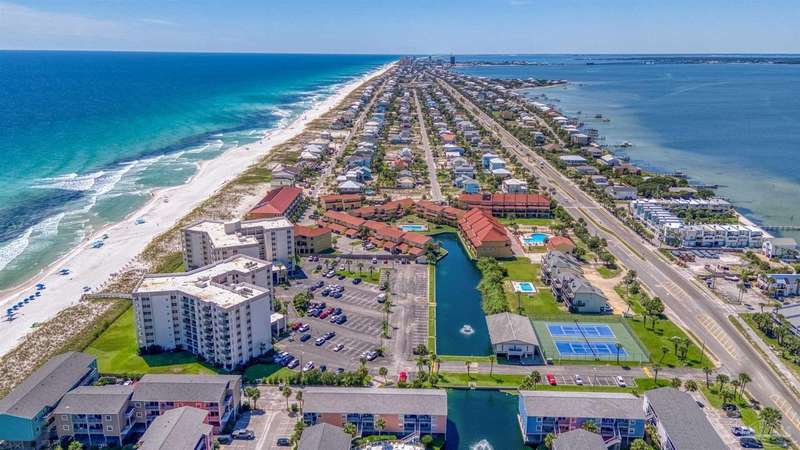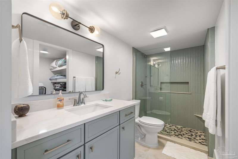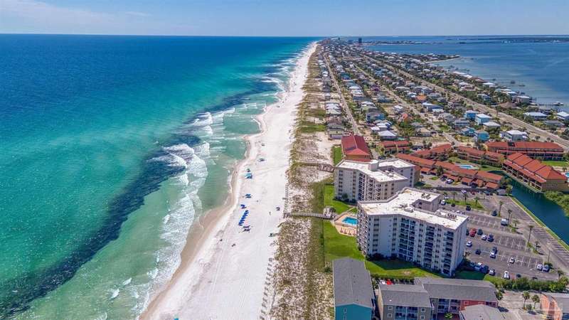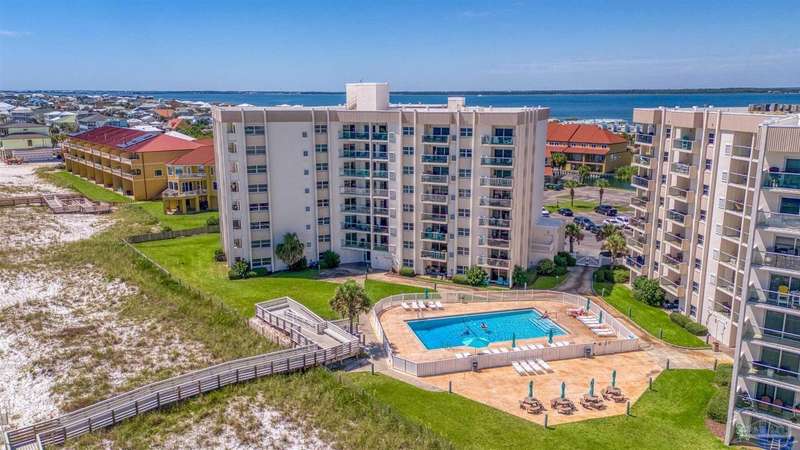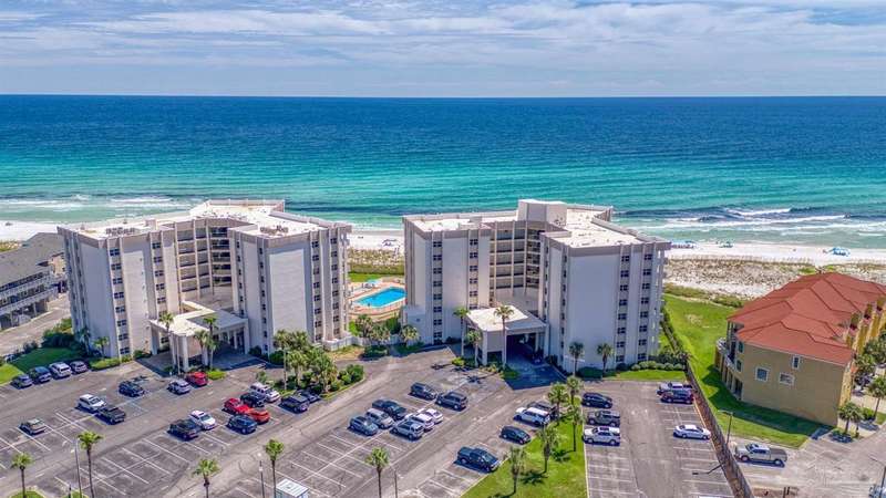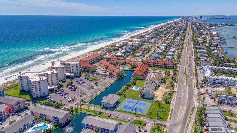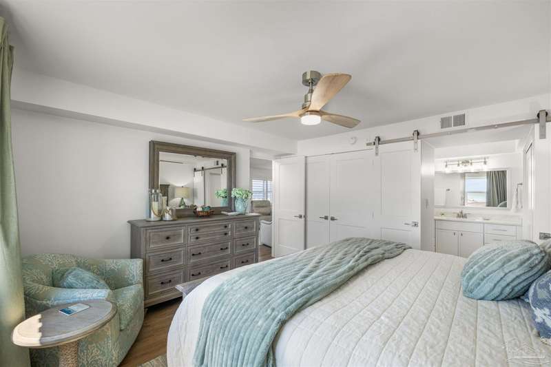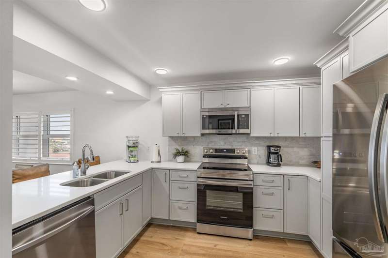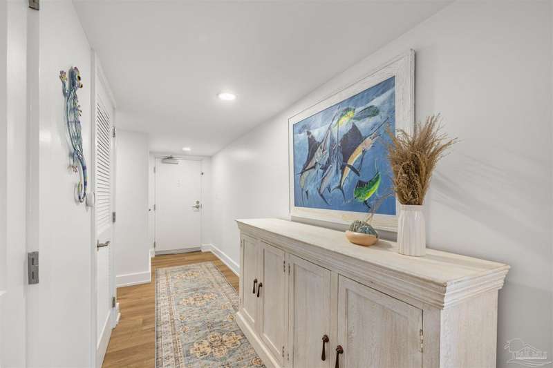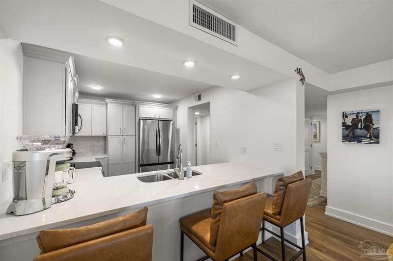 Experience the pinnacle of coastal luxury in this fully renovated 3-bedroom, 3-bathroom Gulf-front condo at Regency Towers on Pensacola Beach. Every detail has been thoughtfully curated by a professional designer, from the sleek, modern kitchen with custom painted wood cabinetry, quartz countertops and stainless steel appliances to the spa-inspired bathrooms featuring designer tile work and glass enclosed showers. The spacious open-concept living area is framed by wall-to-wall windows that flood the space with natural light and open directly onto a beachfront balcony-perfect for morning coffee or sunset cocktails. Two ample bedrooms offer private ensuite bathrooms, with the primary suite showcasing unobstructed views of the emerald Gulf waters. With upscale furnishings, premium finishes, and direct beach access, this turnkey residence combines elegance and ease in one of Pensacola Beach's most sought-after Gulf front communities. Regency Towers is the perfect beach front community for a full time residence, second home or short term rental with pristine amenities including a beach front pool, tennis court, gym, recreation room and gorgeous landscaping.