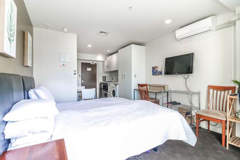 Furnished freehold studio apartment (approx. 22m²) with a balcony, located in the modern and popular “Quadrant” building on Waterloo Quadrant. Neatly presented and well maintained, this compact city pad offers a comfortable and convenient lifestyle in a prime central location. Ideal as a “getaway” base, a student retreat, or a reliable long- or short-term rental in a high-demand complex known for attracting quality tenants. Positioned in the sought-after legal precinct, just a short walk to the University of Auckland, Law School, and the High Court. Offered for sale due to a change in the owner’s circumstances— a great opportunity for investors or those seeking a low-maintenance city hideaway.