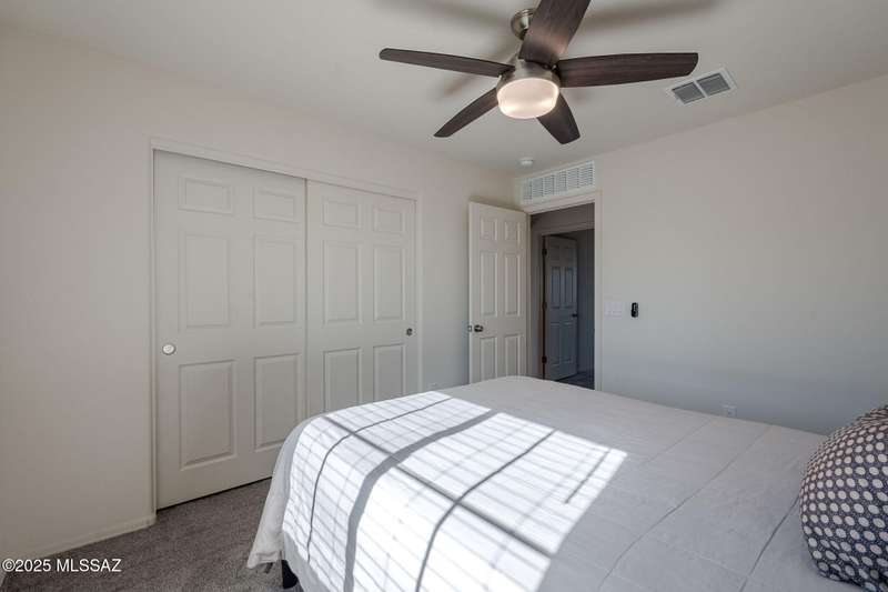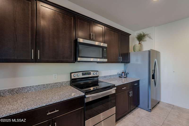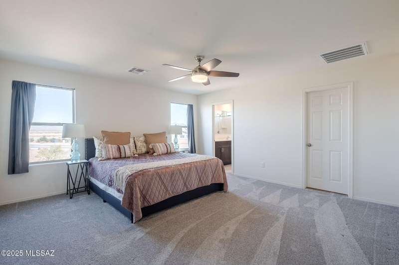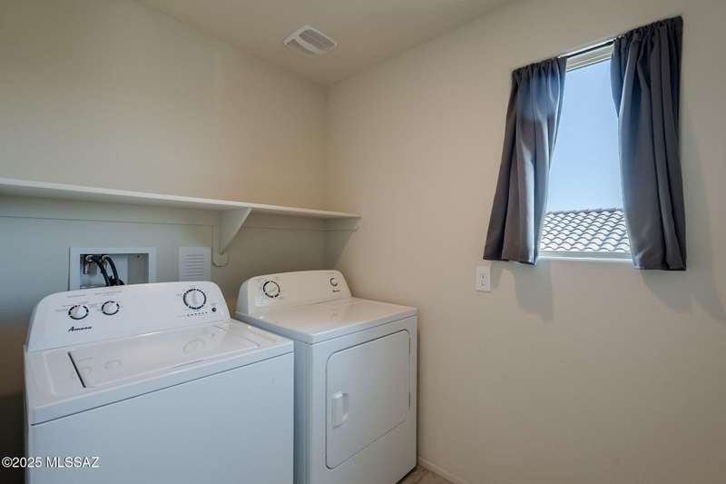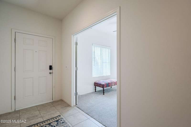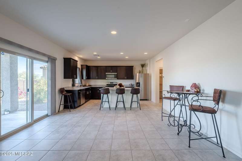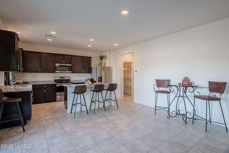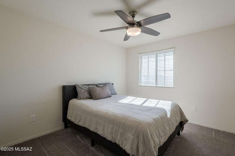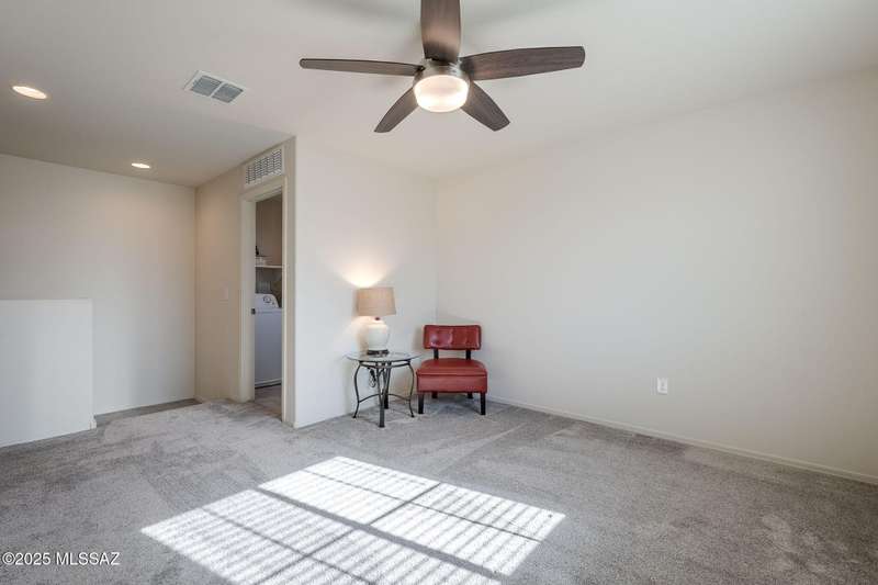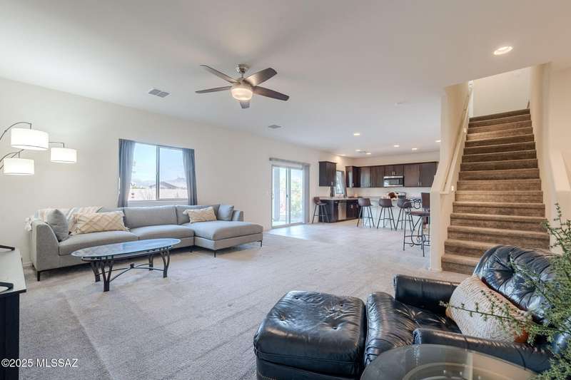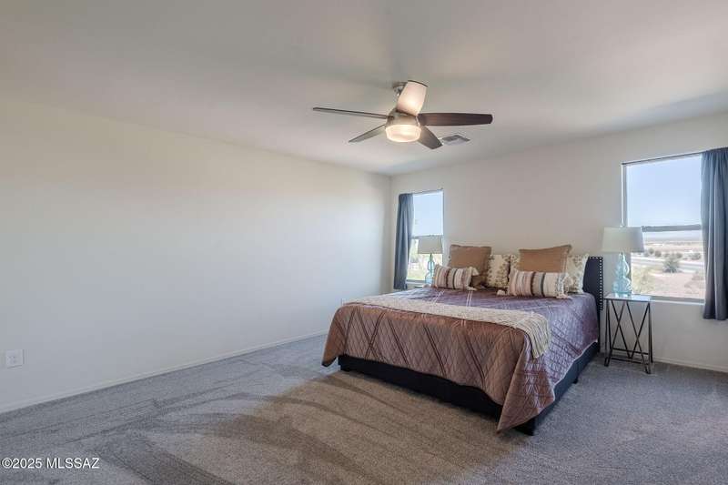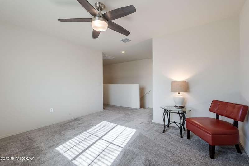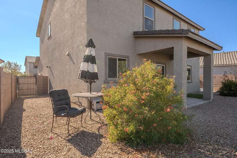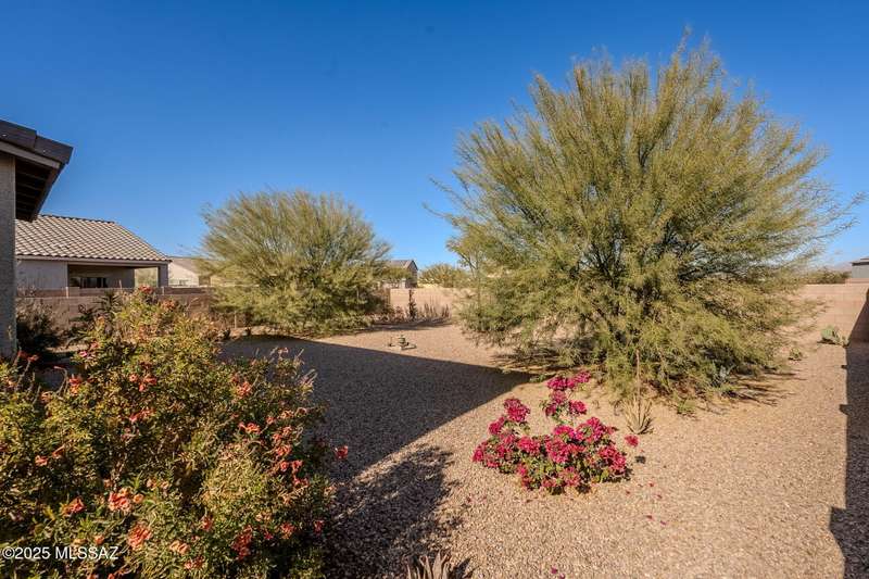 Move-in ready and backing to open space, this charming home has so much to offer. It boasts a versatile floorplan with a den and a loft, tasteful neutral tile and plenty of natural light. Bright kitchen has handy island with breakfast bar, electric range, generous pantry and rich cabinets. Owner's Suite has a large closet and bathroom with dual sinks. Hunter ceiling fans keep you cool and comfortable. Tankless water heater adds convenience. Large sliding glass door with upgraded blinds leads you to a spacious backyard with covered patio, raised garden beds, decorative rock, numerous trees, cacti and colorful plants. Most furnishings can convey. Not to be missed!