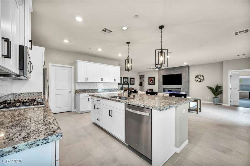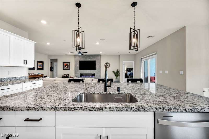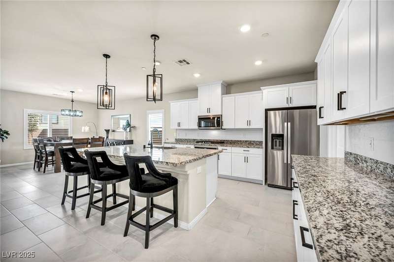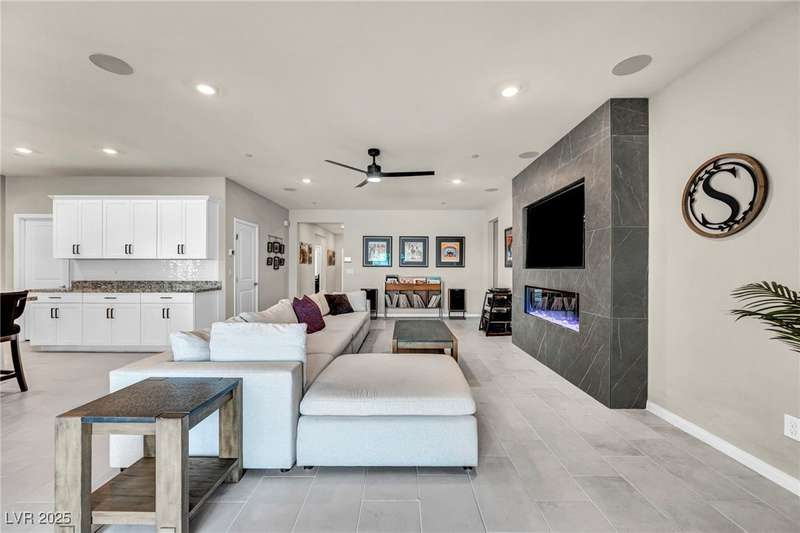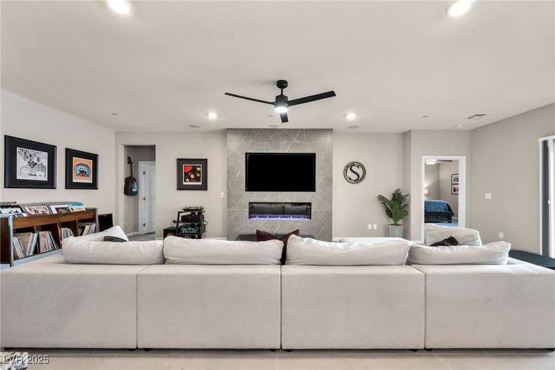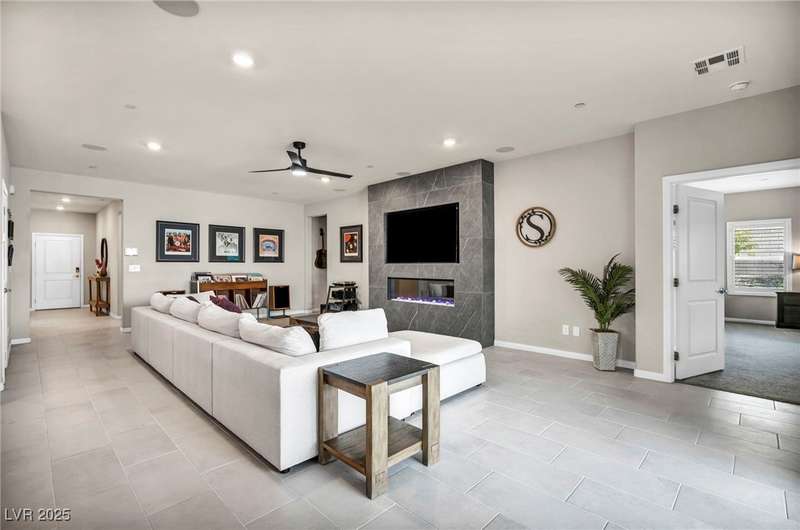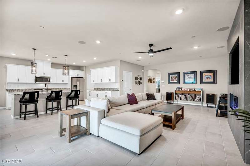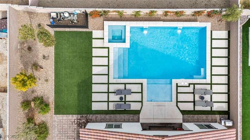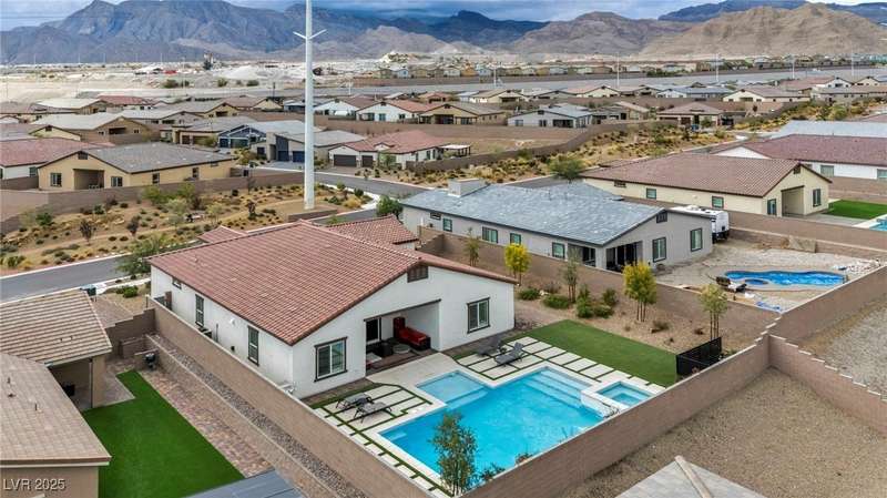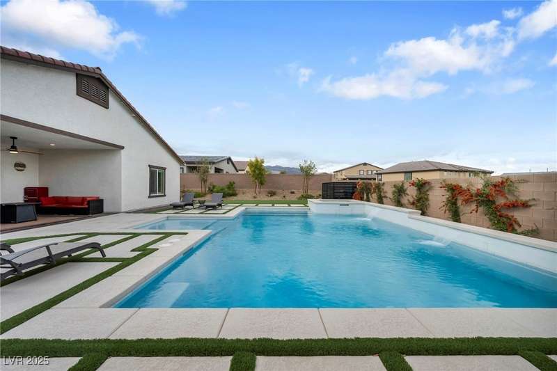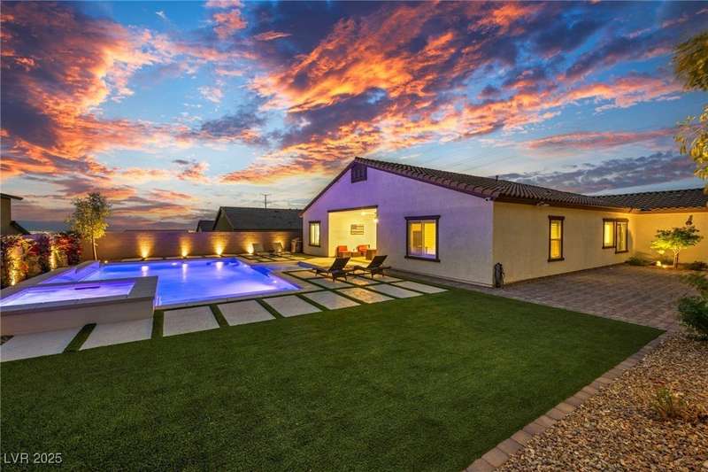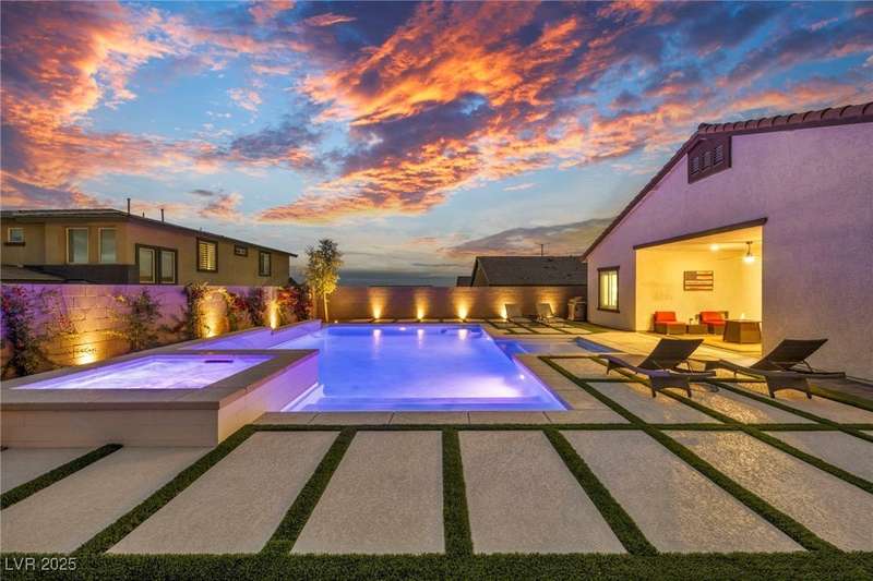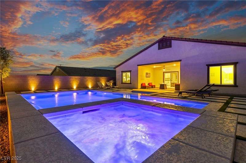This rare single-story stunner truly impresses from the moment you arrive. Offering a 4-car garage, pristine curb appeal, & upgraded finishes, this home sets the tone for exceptional living in every way. Inside, you’ll find 4 spacious bedrooms, including one with its own private ensuite. The open floor plan features a custom-designed electric fireplace, granite countertops, & high-end stainless-steel appliances, all framed by elegant plantation shutters & thoughtful details at every turn. Built-in Klipsch surround sound speakers elevate everyday living & entertaining. Step outside to your own private resort. The backyard is a true paradise, centered around a grand, oversized pool—larger than anything that could be built today. Completed just weeks before new regulations took effect, this incredible pool offers two waterfalls, a relaxing spa, three lights for full night-time illumination, and a heater for year-round enjoyment. The yard also features possible RV parking & a covered patio