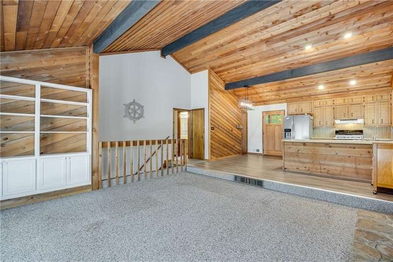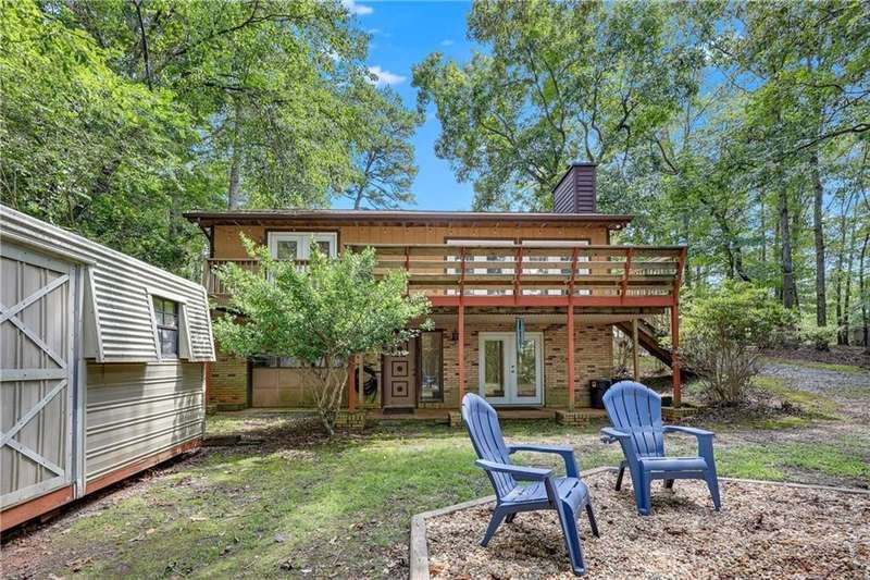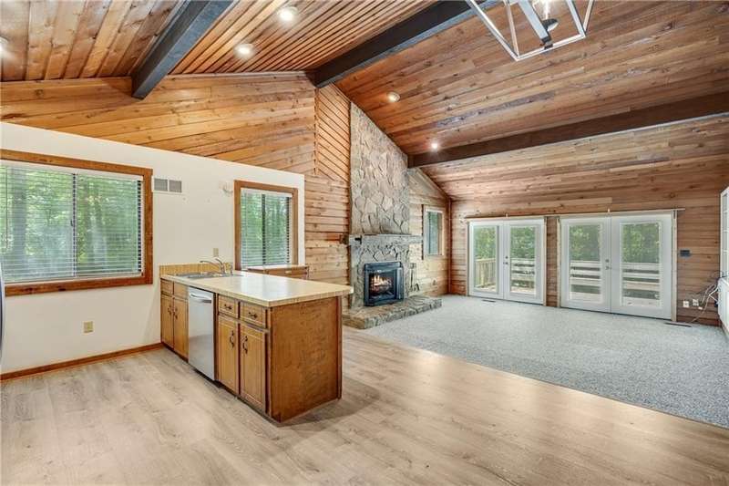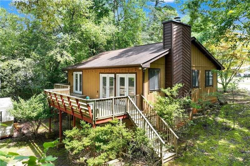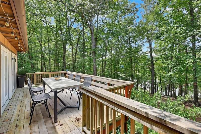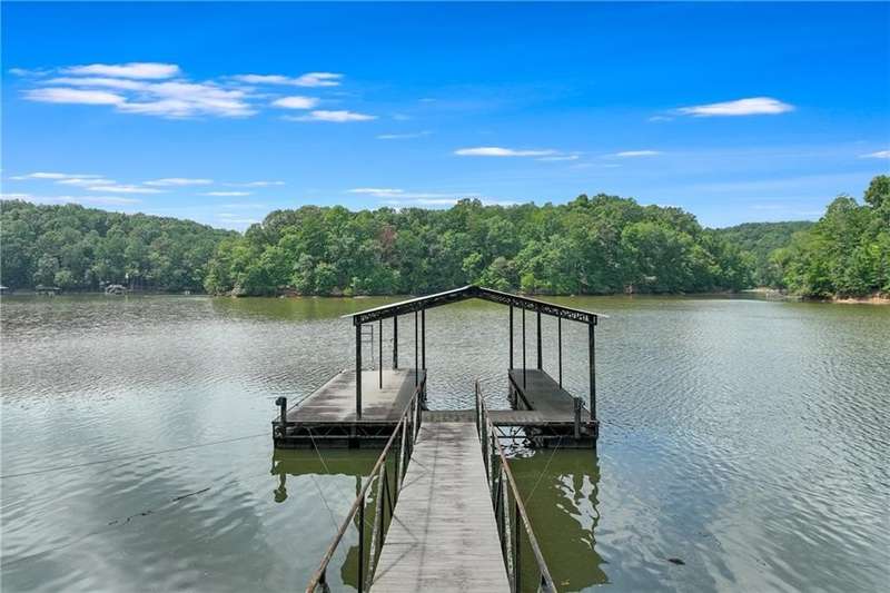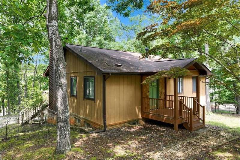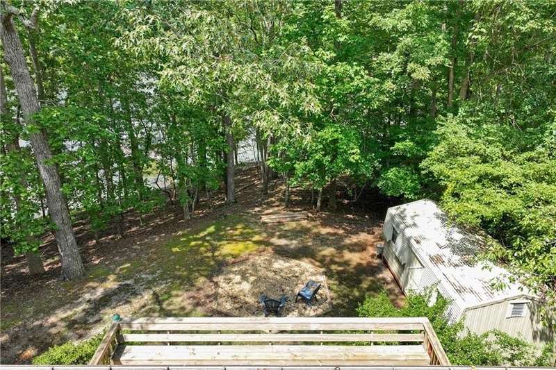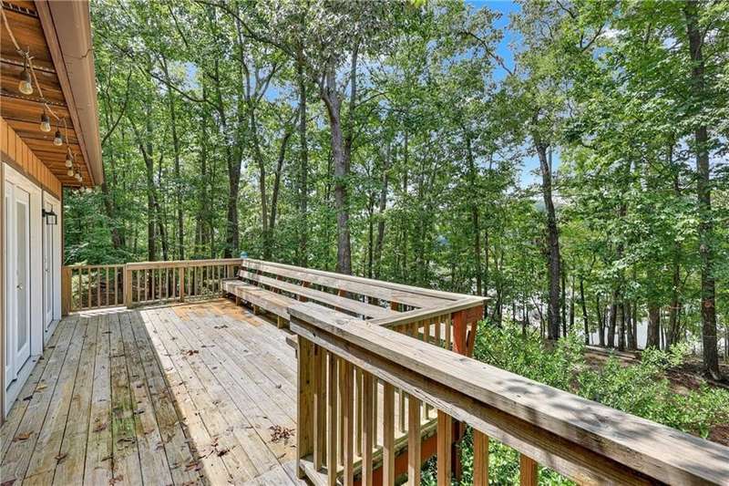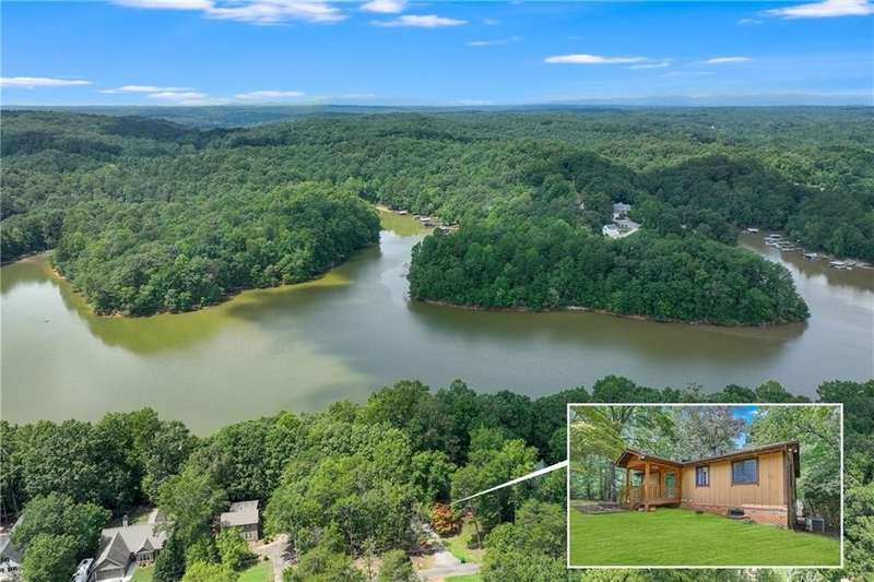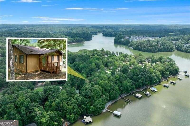 The Lake Lanier cottage you've dreamed of, with an easy walk to the dock and a year round view! A tall vaulted ceiling with rich wood interior is warm and inviting. Enjoy fall with a cozy fireplace in the open great room. The kitchen, dining, and living areas flow seamlessly to a wall of windows (dual French doors) that open to a spacious sundeck-the spot for relaxing and taking in the year-round lake views. A gentle, short walk leads to the single-slip dock, always in great water. The finished terrace level would be ideal as an Airbnb, complete with a full suite and living room area. The basement also offers a large storage or workshop space. Whether you're seeking a full-time residence, a weekend getaway, or an income-producing property, this charming lake retreat is a rare find! Convenient to GA 400 and Dahlonega GA, a popular tourist destination.