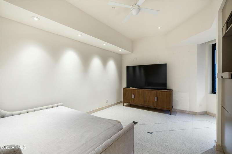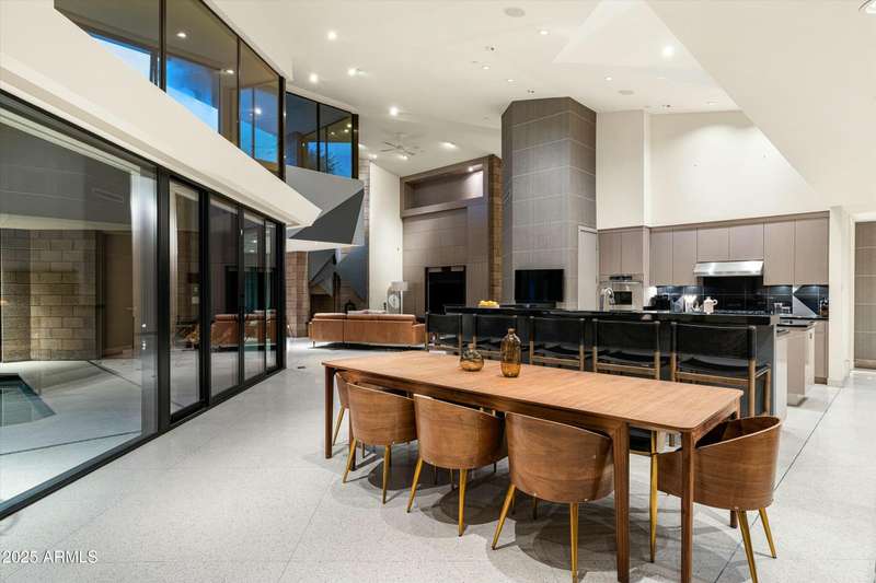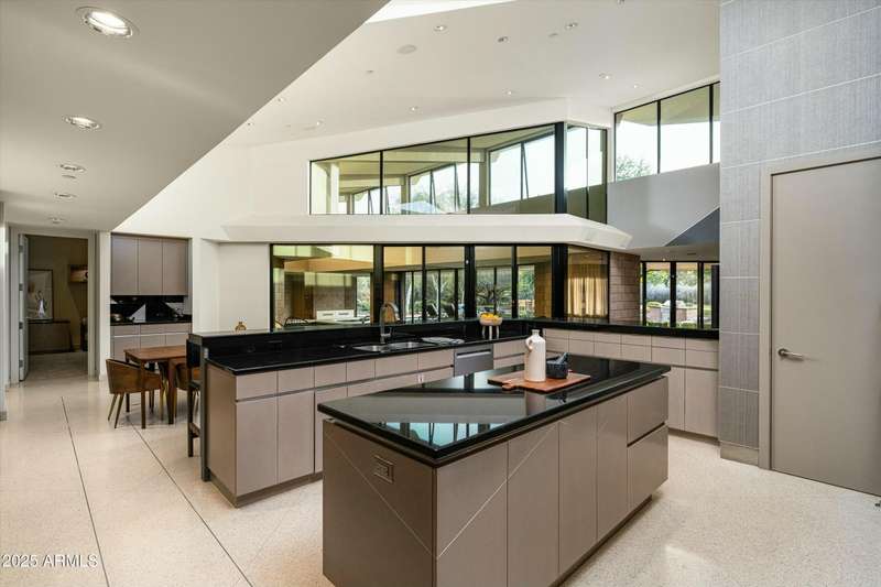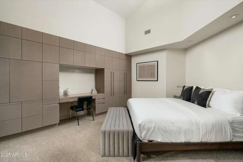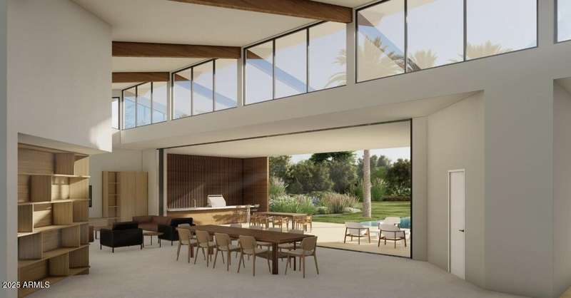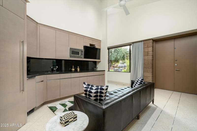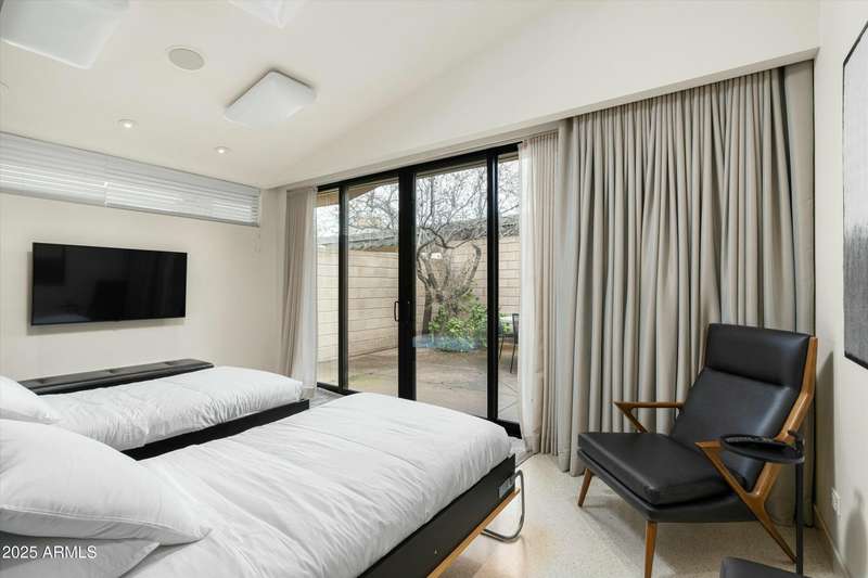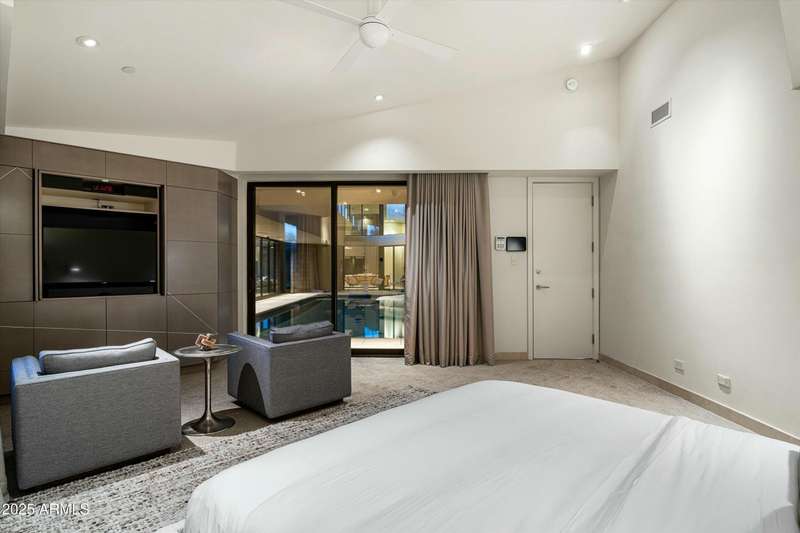 Experience Architectural Brilliance in the Heart of Paradise Valley! Step into a world of inspired design and unmatched elegance in this privately gated 2.5-acre estate—a true architectural gem that pays homage to Frank Lloyd Wright's organic principles. Envisioned by Taliesin-trained architect Gustad Irani and expertly brought to life by award-winning La Casa Builders, this residence is a rare blend of form and function. Thoughtfully designed with a modernist vision, the home showcases luxurious and refined finishes—from zinc-inlaid terrazzo floors to bespoke Fiddleback English Sycamore cabinetry. Striking geometric lines and thoughtfully selected materials establish a warm yet sophisticated atmosphere across 7,041 square feet of interior living space, including a 1,291-square-foot detached guest house with two en-suite bedrooms, a full kitchen, living room, laundry, and its own 2-car garage. The main residence features 6 bedrooms, 8 bathrooms, and a 6-car garage, with the primary suite offering a private office, exercise room, and tranquil views of the indoor therapy pool. A separate guest wing within the main house includes two en-suite bedrooms, a private living area, and a kitchenetteideal for multigenerational living, long-term guests, or live-in support. Resort-style outdoor living is reimagined with a heated indoor lap pool, a reflecting pool, and spaall set amid lush, mature landscaping that blurs the lines between interior and exterior spaces. The grounds are complete with a north/south-facing tennis and pickleball court, putting green, and generous entertaining areas designed for year-round enjoyment. Whether enjoyed as a primary residence or held as a rare investment, this architectural masterpiece embodies timeless elegance and intentional design at every turn.
