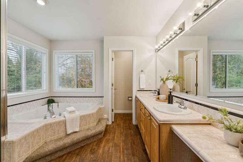 Spacious and beautifully home at Bristol Heights. 6-bedroom, 4-full-bath home offering over 3,200 square feet of flexible living space in a quiet and desirable Boise neighborhood. The main level welcomes you w/ hardwood floors, a bright formal dining area & a large open kitchen featuring a center island, tile countertops, extensive cabinetry, & a dining space with views of the landscaped backyard. The living room includes a gas fireplace & abundant natural light. Upstairs, the expansive primary suite stands out with a bay-window sitting area, a walk-in closet, dual vanities, a walk-in shower, and a large soaking tub. One additional upstairs bedroom includes its own private en-suite full bathroom, ideal for guests or multi-generational living. A versatile loft, multiple secondary bedrooms, and a conveniently located laundry room offer exceptional flexibility for offices, hobbies, or larger households. New exterior paint & new carpet throughout the home provide a clean, move-in-ready feel. The fully fenced backyard features mature landscaping, a patio, & ample room for outdoor enjoyment. A spacious 3-car garage and an ideal location near schools, parks, shopping & dining make this an exceptional opportunity in a sought-after Boise area. This home offers outstanding space, comfort, and value in an excellent Boise location. $20,000 seller credit towards buyers closing costs at closing.