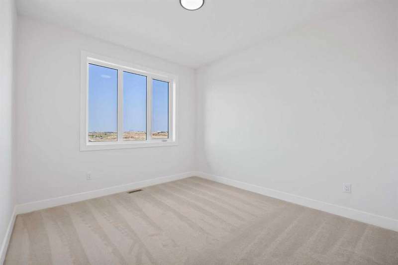 **For a limited time the builder is offering $20,000 in buyer upgrades throughout home (excluding appliances)** Welcome to the brand new development of Knightsbridge in Cambridge Park. Minutes away from access to Stoney Trail and East Hills shopping centre. The Whitehaven is a stunning estate home designed to blend luxury and practicality. Set on a generous 6027 sq ft lot, this home provides an expansive backyard and a side-drive triple car garage. These are not your typical cookie cutter homes. With 3,203 sq ft of living space, this custom-built masterpiece features 5 spacious bedrooms and 4 beautifully designed bathrooms, offering ample room for family and guests. This home is loaded with upgrades including: Main floor full bath, Jack and Jill ensuites for added convenience, High ceilings & a Spice kitchen to enhance your culinary experiences. Inside, the main floor exudes elegance with rich hardwood flooring and 9 ft ceilings with 8 ft doors, and striking black-framed windows that invite natural light. The gourmet kitchen is a chef’s dream, complete with an oversized island, a secondary spice kitchen, sleek stainless steel appliances. An open concept formal dining and living area set the stage for gatherings. The main floor also includes a flex room as well as a 4 pc bathroom. The primary suite on the upper floors is a true sanctuary with a freestanding tub and a custom-built closet. The home’s thoughtful design continues with 3 more generous sized bedrooms on the second floor, a bonus room for entertaining, a Jack & Jill ensuite bathroom for convenience, as well as a second floor laundry room. . Step outside to enjoy a completed rear deck with steps leading to a private outdoor oasis. This home also offers a triple attached garage allowing plenty of space for extra parking. This community is within minutes to Calgary, Chestermere, and East Hills, 18 minutes to Downtown Calgary, and provides quick access to Stoney Trail, Highway 1, and McKnight Blvd making it easy to get anywhere in and around the city. Located near shopping centres, Costco, public and private schools, Khalsa school's, parks, and many other amenities, while still offering quiet country-living with wide open green spaces, walking paths, and playgrounds.