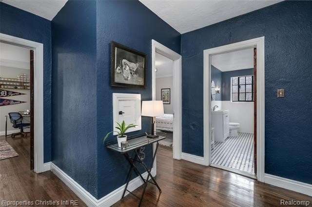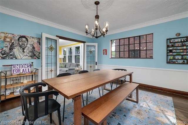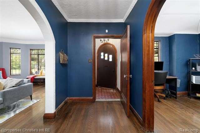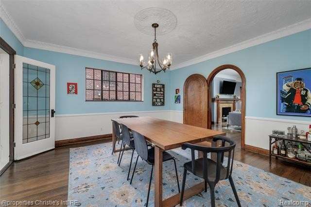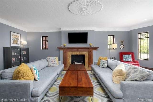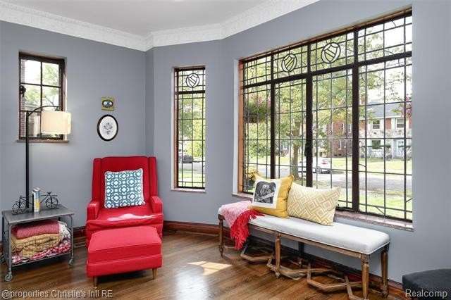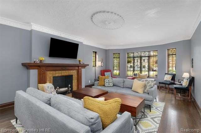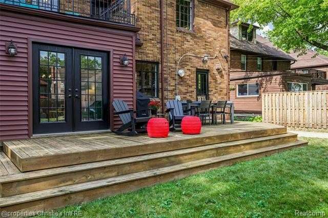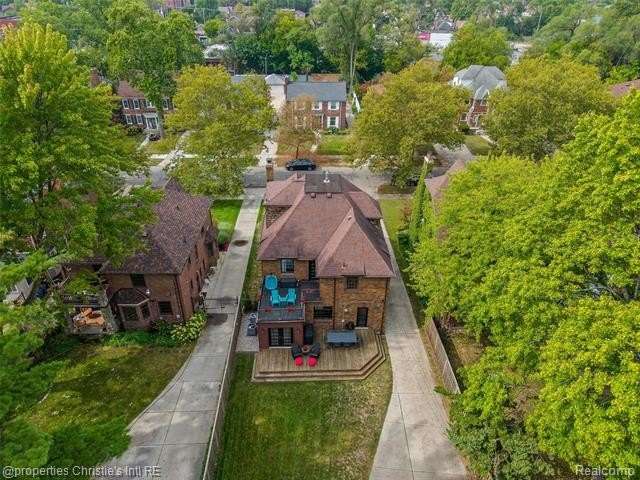 Welcome to 18240 Warrington Drive, a distinguished residence nestled in the heart of Detroit’s historic University District. This home is more than an address—it’s an invitation to experience urban elegance blended with neighborhood charm. As you arrive along the tree-lined street, you’re greeted by a stately façade, mature landscaping, and a welcoming front porch. Inside, the gracious foyer opens to a sun-filled living room anchored by a fireplace and framed by elegant crown moldings, a space that immediately sets the tone for gatherings both large and small. The adjacent formal dining room flows seamlessly into the updated kitchen, where granite countertops, quality cabinetry, and stainless-steel appliances pair beautifully with a bright breakfast nook. Just beyond the dining room, a beautiful sunroom with walls of windows offers sweeping views of the landscaped backyard and direct access to the deck—perfect for enjoying morning light or hosting guests. The first-floor library provides a warm, versatile retreat for reading, working, or studying. Upstairs, the primary suite features a nicely renovated bathroom and modest closets, with the potential to reimagine one of the nearby bedrooms as a large walk-in closet or dressing room. Additional bedrooms are comfortable and thoughtfully laid out. A third-floor suite adds flexibility with its own bedroom and full bath. The finished lower level expands your living options with space for recreation, media, or fitness. The backyard is a private oasis with mature landscaping and a deck ideal for entertaining. A detached garage and ample parking add convenience. The University District is one of Detroit’s few neighborhoods with a Special Assessment District (SAD). Each parcel contributes an annual assessment, currently $175, which funds 24/7 security patrols, snow removal, and mosquito abatement. These services enhance comfort and peace of mind while ensuring a well-maintained environment.