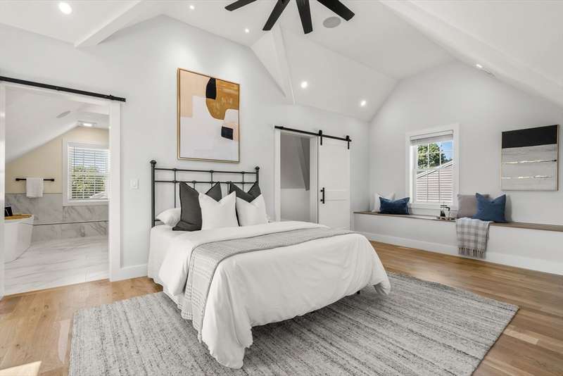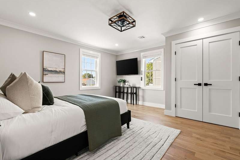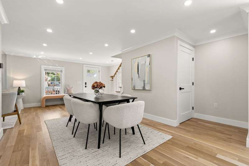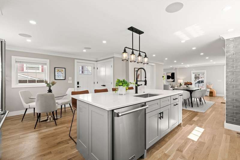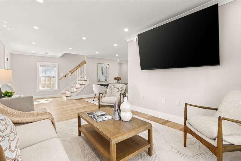 Welcome to this stunning new construction in Houghs Neck, Quincy. This 4-bedroom, 3-bathroom smart home blends coastal charm with modern luxury. The open-concept living area features hardwood floors and a chef's kitchen with white quartz countertops, a large island, and Viking appliances. A full bath, laundry room, and mounted flat-screen TV complete the first floor. The second floor includes three bedrooms, a full bath, and a second laundry room, with mounted TVs in each room. The third-floor master suite offers a private deck and en-suite bath. Throughout the home, a Sonos sound system provides high-quality audio, with outdoor speakers making the backyard is perfect for entertaining. This home combines all the newest technology, modern amenities, and coastal elegance, just steps from the beach. Schedule your showing today!