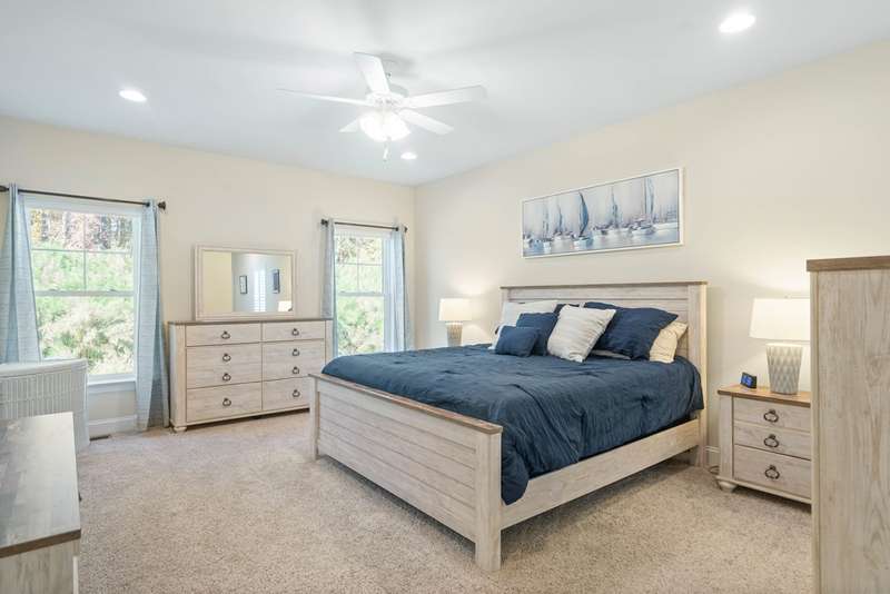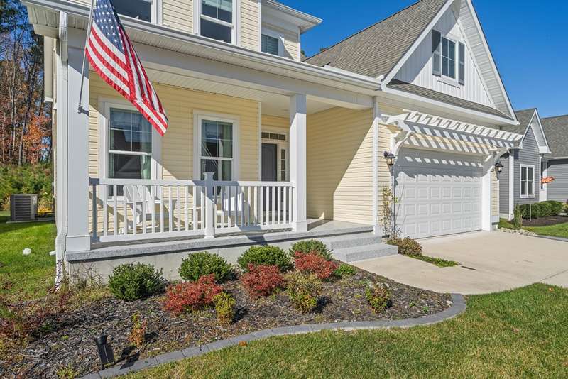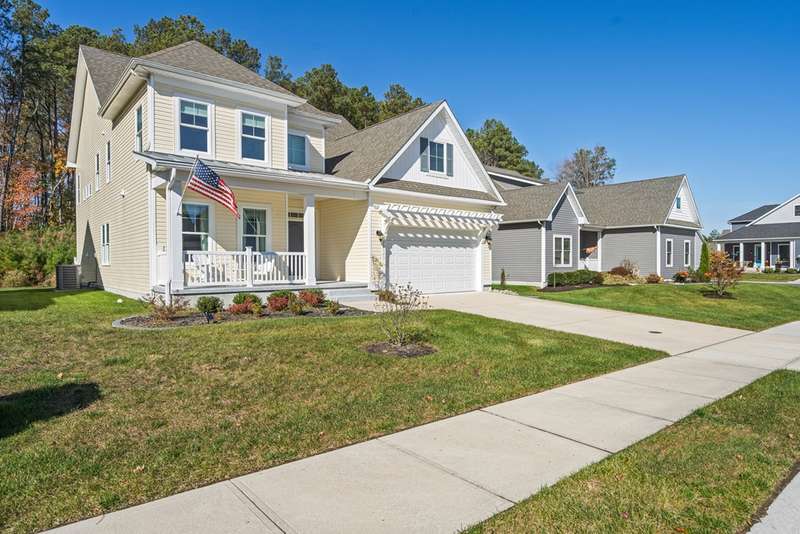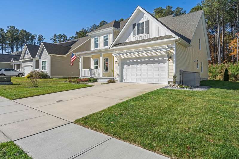 Sellers are relocating and asking buyers to bring an offer. Offering 3 bedrooms, 3 bath, and 2 car garage contemporary home located on an interior lot with wooded common grounds in the rear. As you enter into your home you are welcomed with a guest bedroom and bath. Moving toward the living space you are met with a den/office space. The back of the home offers an open kitchen and living area for relaxation and entertainment. The gourmet kitchen with black stainless appliances, 42 inch cabinetry, backsplash, and abundant counter space caters to a cook or family for entertaining. Living space offers natural lighting, LVP flooring, and access to the deck and patio areas. Owners/Primary bedroom is tucked away by itself to the rear of the home with a generous extension and glorious bath with tile shower. Garage offers overhead storage and access to your conditioned crawlspace. As you enter up the stairs to the 2nd floor you are met with an additional living area that overlooks the 1st floor. The area allows for you to make it your own. An additional, oversized bedroom for guess provides a quiet place to rest. The plush yard with additional landscaping presents like a model home. This location is 10-15 minutes to the Delaware Beaches and allows access to north and south infrastructure. Schedule your appointment today and be in by the New Year!