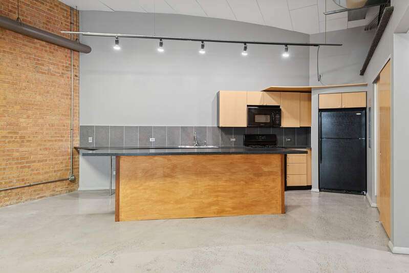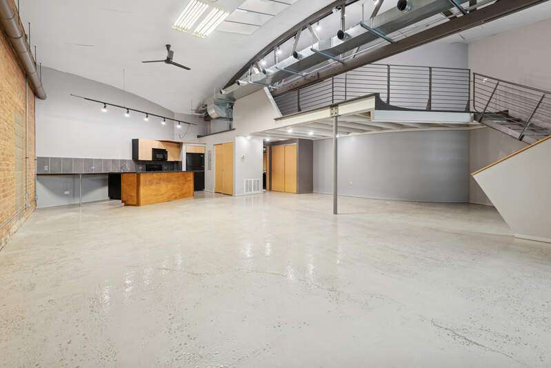 Welcome to the Cinema Condo Association Lofts! This unit is a rarely available live/work 1697 sq. ft. loft with 16 ft. ceilings. The main floor is a large open space featuring concrete floors, cathedral ceilings, exposed brick, and a skylight. There is a full kitchen with island, bathroom, central air, and a hook-up for a washer and dryer. The upstairs loft overlooks the main floor. This unique space is ideal for a residence, small artist, photographer, or other small business. Business and use restrictions apply: no food service, short term rentals, musical practice, rehearsing, recording, or performing space, childcare, etc...). Any use or business must be approved by the association prior to submitting an offer. No pets allowed. One outdoor assigned parking spot included!