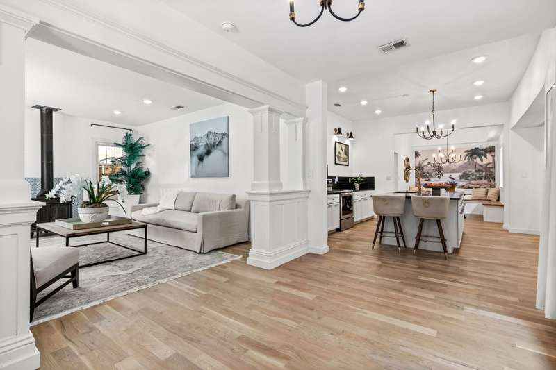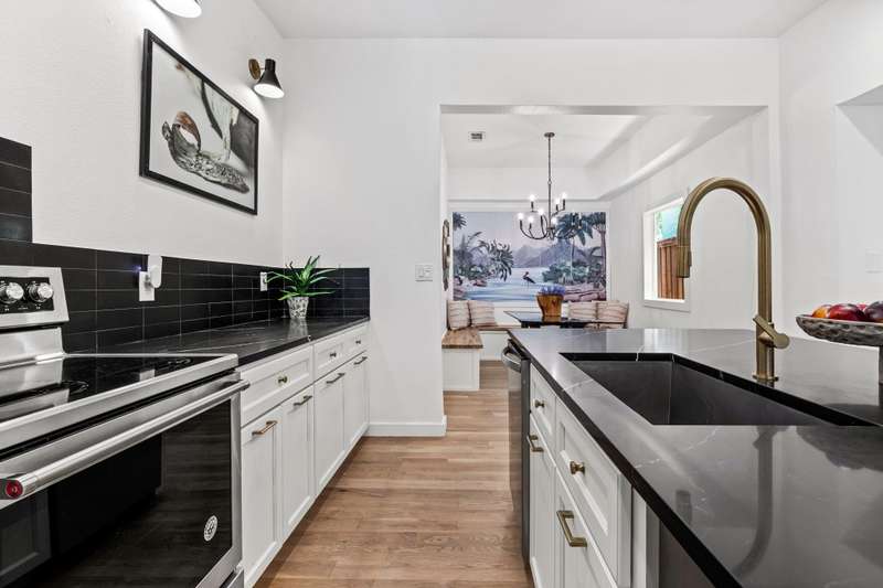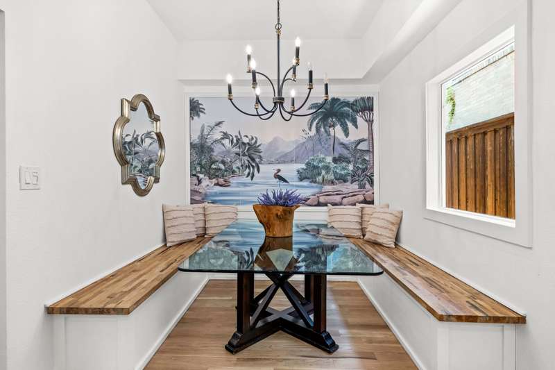 Originally built in 1914, this charming home showcases classic architecture and great street presence, highlighted by a wide front porch perfect for morning coffee or evening downtime. Inside, the home blends historic details with modern updates. The bright living room features a welcoming fireplace and opens to the dining area and an updated kitchen with a built-in banquette for casual meals or entertaining. The primary suite offers a walk-in shower, double vanities, and a roomy closet. Two additional guest bedrooms and a full bath complete the main residence.A separate guest house in the back provides outstanding flexibility with its own bedroom, bath, kitchen, and living spaceideal for visitors, extended family, or potential rental use. Parking is available at the front of the property or through a secured gated entrance at the rear, offering private off-street access. The home is zoned to the highly regarded JL Long and Woodrow Wilson High School. Conveniently located near downtown Dallas, major highways, and White Rock Lake.
