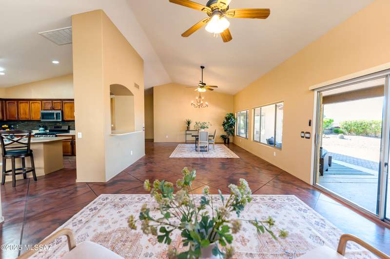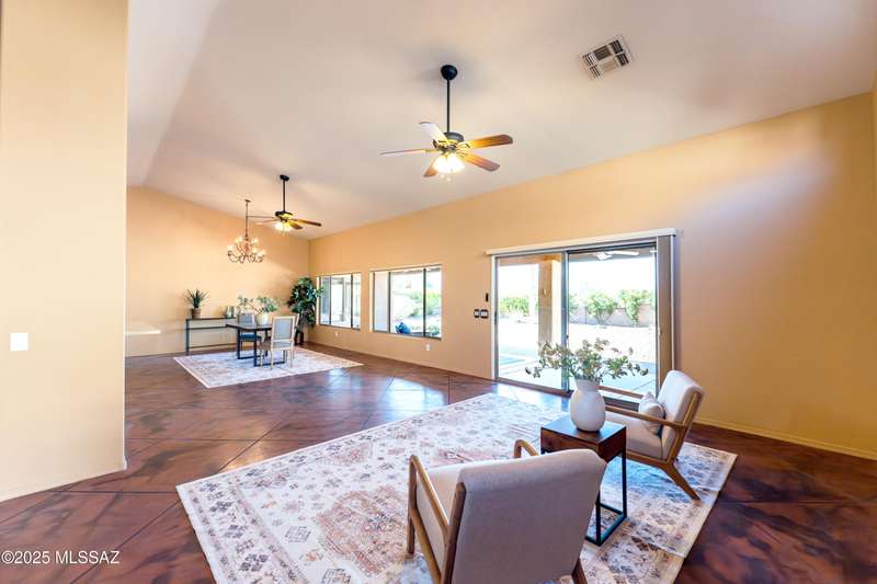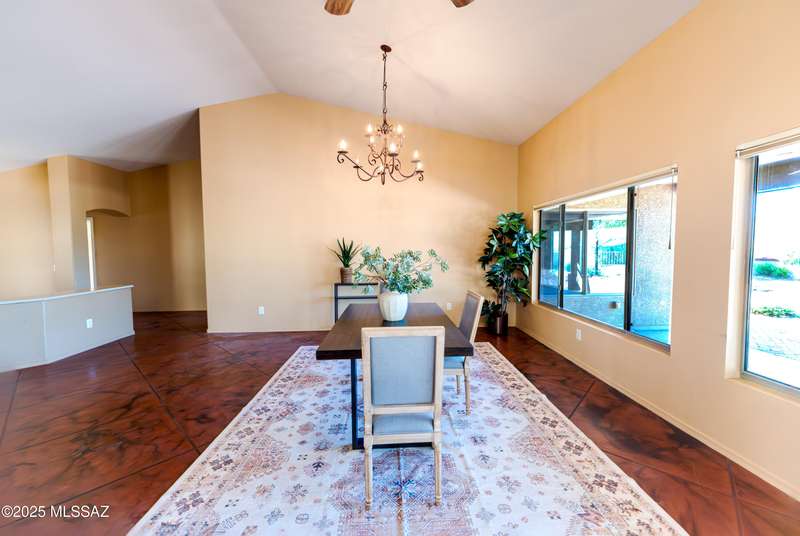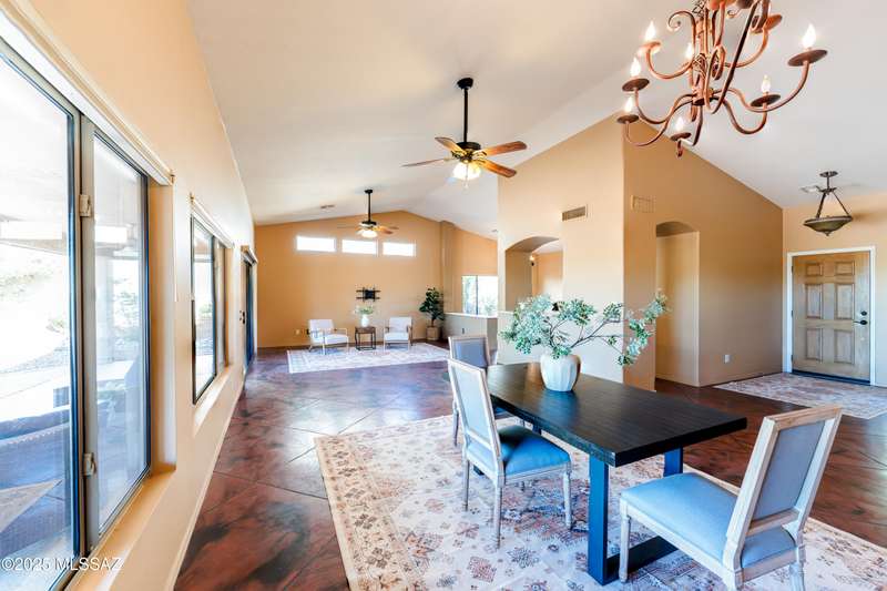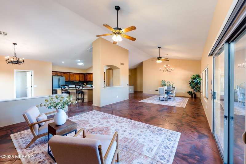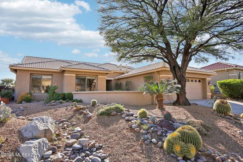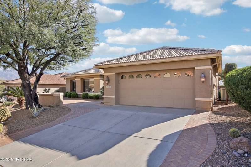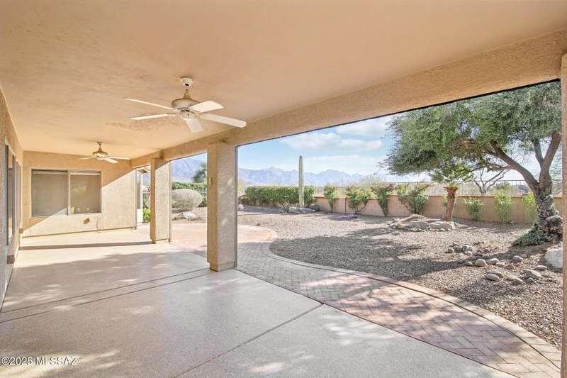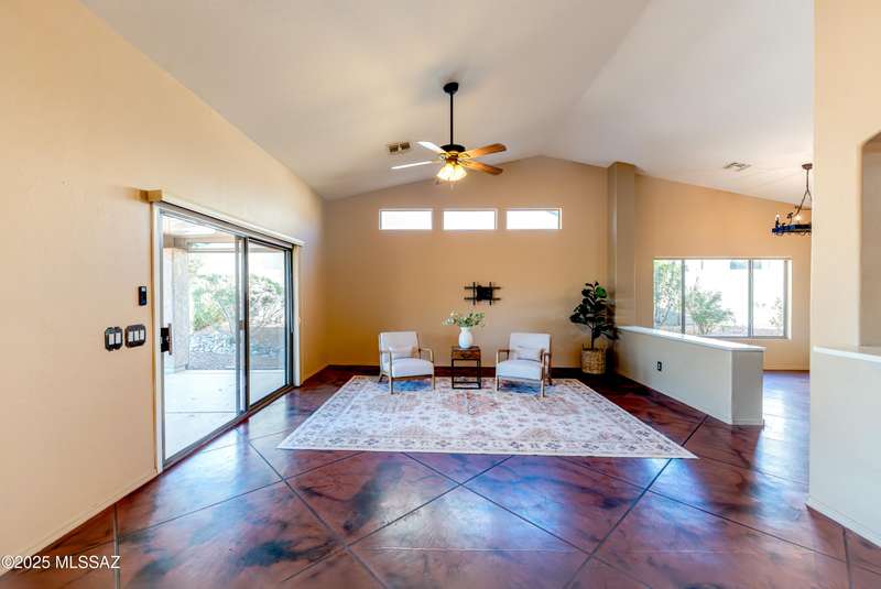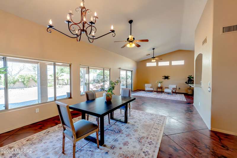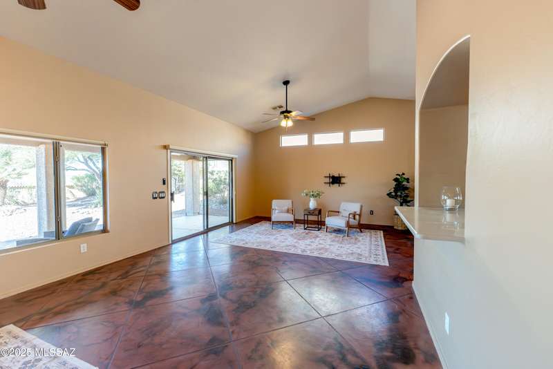 Motivated Seller. Bring us an offer! Magnificent Montana Model with Sweeping Catalina Mountain Views. The open floor plan, vaulted ceilings, & large windows create a light and airy ambiance. Great room design with gorgeous colored concrete floors and large dining area are perfect for entertaining. Updated kitchen includes tons of cabinets, large island, quartz countertops, s/s appliances, and sunny breakfast nook. Primary suite with bay windows to capture the views, generous size primary bath has updated shower, double sink vanity and large walk in closet. Hall bath has new shower. Two additional bedrooms + den allows for plenty of room for family/guests & hobbies. Garage includes built in storage cabinets as well. Enjoy the wonderful views and privacy from your fabulous outdoor living