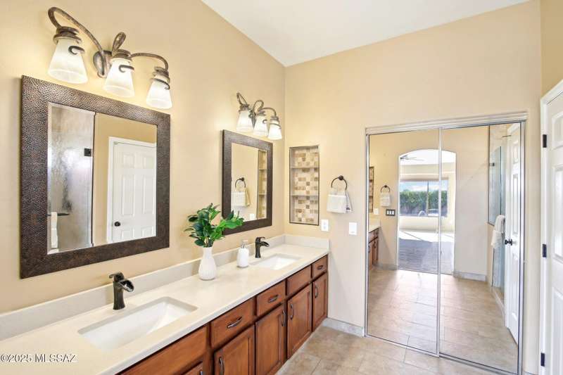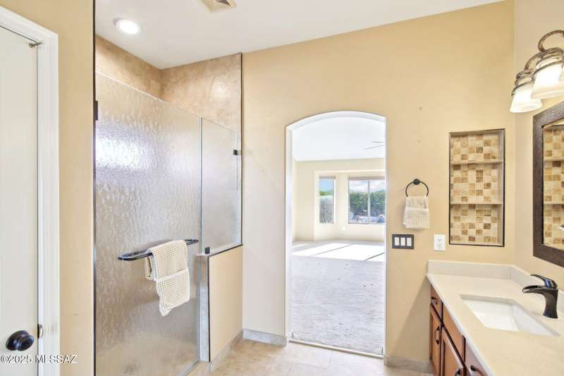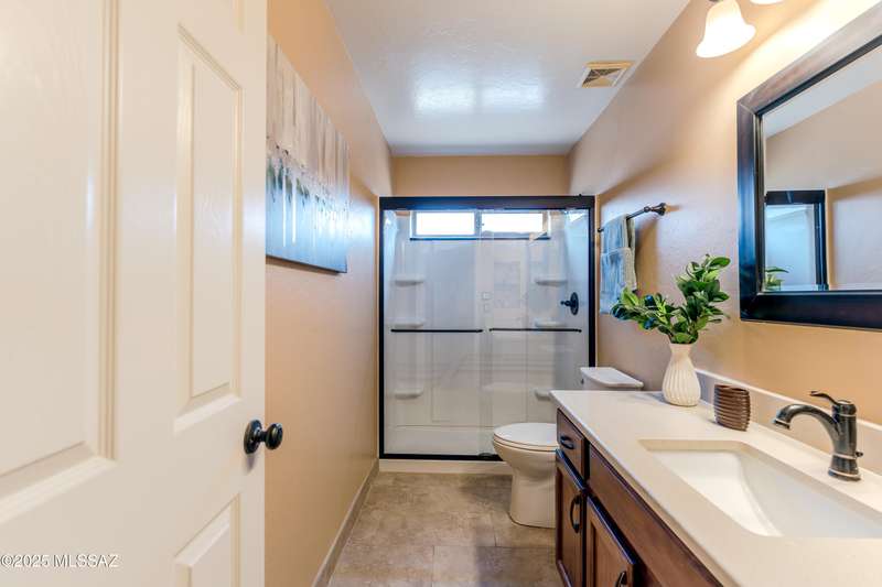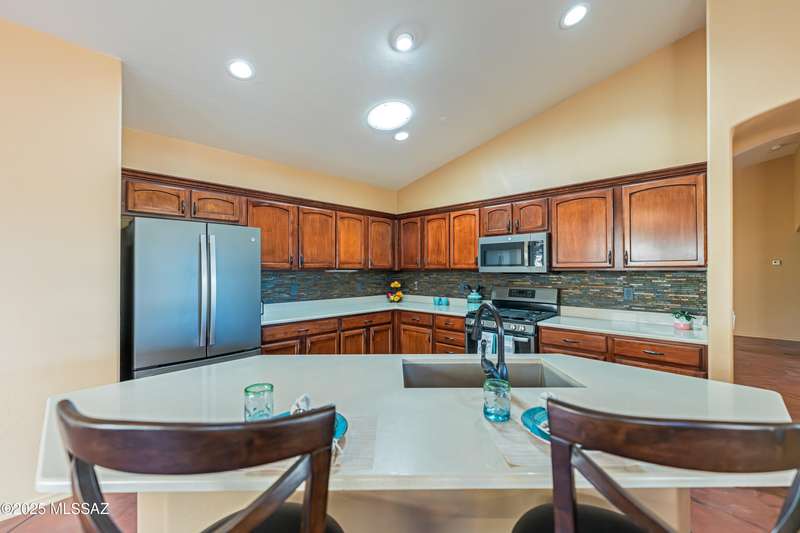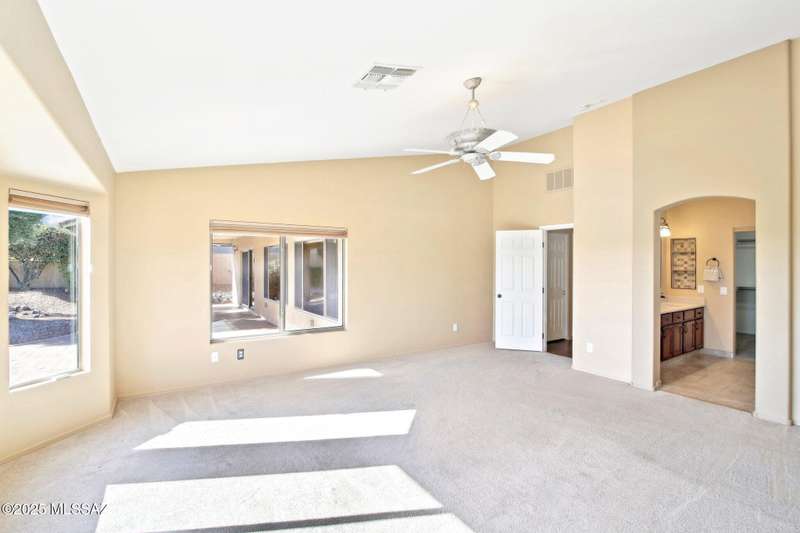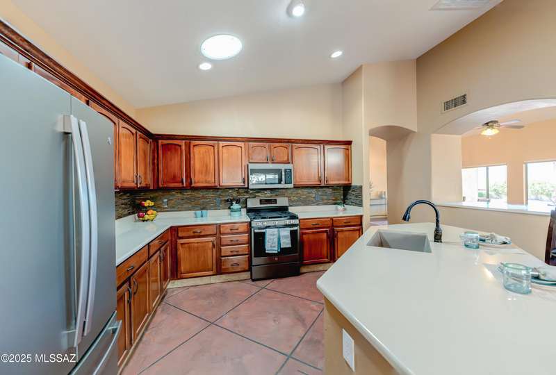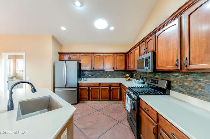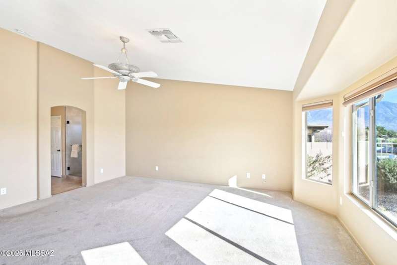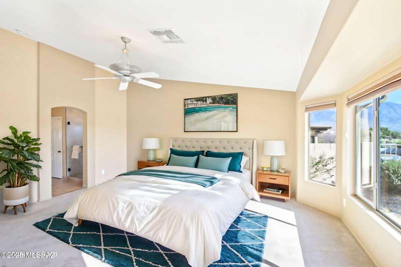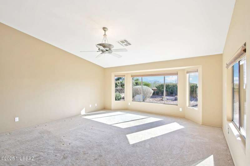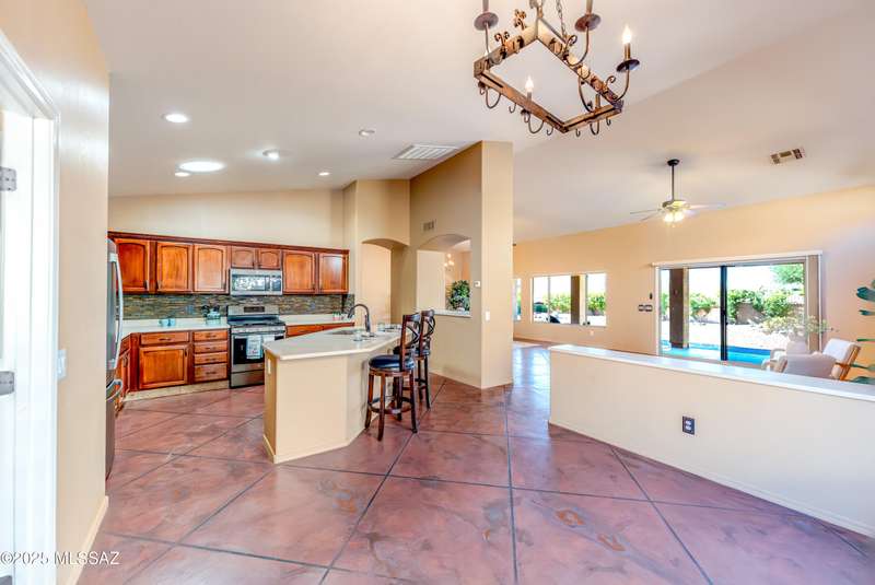 Motivated Seller. Bring us an offer! Magnificent Montana Model with Sweeping Catalina Mountain Views. The open floor plan, vaulted ceilings, & large windows create a light and airy ambiance. Great room design with gorgeous colored concrete floors and large dining area are perfect for entertaining. Updated kitchen includes tons of cabinets, large island, quartz countertops, s/s appliances, and sunny breakfast nook. Primary suite with bay windows to capture the views, generous size primary bath has updated shower, double sink vanity and large walk in closet. Hall bath has new shower. Two additional bedrooms + den allows for plenty of room for family/guests & hobbies. Garage includes built in storage cabinets as well. Enjoy the wonderful views and privacy from your fabulous outdoor living