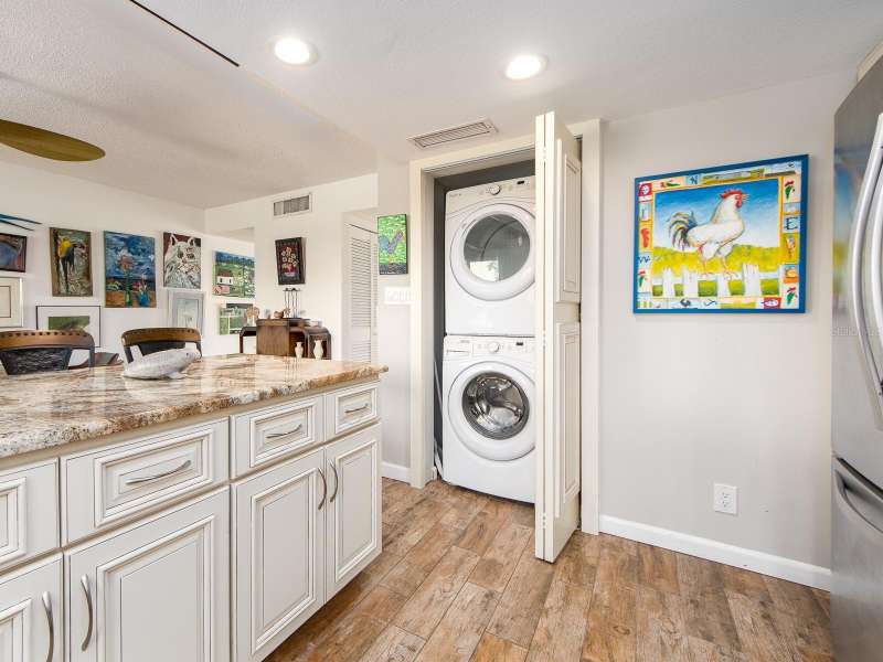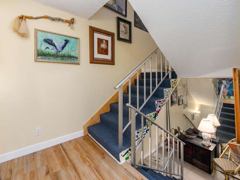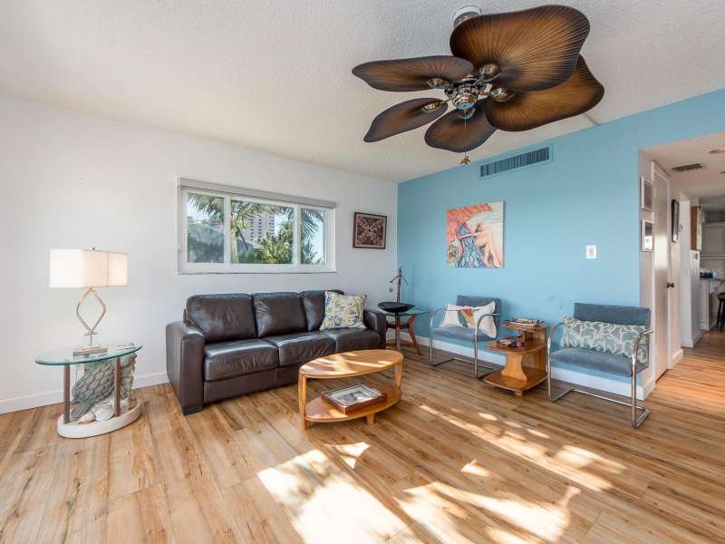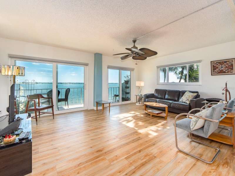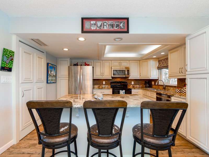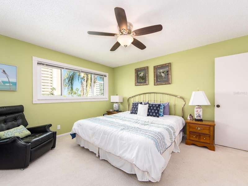 WELCOME TO SAND KEY, CLEARWATER AND THE COMMUNITY OF BAYSIDE GARDENS IV. NOTE; THIS IS A 3 MONTH MINIMUM RENTAL COMMUNITY. This three bedroom, two and a half bath, 1500 sq ft+ townhouse rests right parallel to the intracoastal waterway for direct view of the morning sun and coastal wildlife throughout the day. Please note before reading on that the living area begins on the second level and all bedroom quarters are located on the third level. Entering through the ground level doorway, you proceed up two short flights of stairs, separated by a landing into the living quarters that feature a recently remodeled kitchen, with separate standing island. The kitchen features, granite countertop and island top, off white cabinets, stainless steel appliances, recessed led lighting, laundry closet, & wooden flooring. The living room features, two sets of new high impact storm glass sliders to view the intracoastal waterways along with a full length balcony. Both sets of sliders and window have remote control blinds. NOTE: all windows and glass sliding doors through out are newly high impact. As stated the bedroom quarters are up two short flights of stairs (separated by a small landing). The primary bedroom is facing the East and has a full length balcony along with two more sliding glass doors. Primary bathroom had also been renovated. Down the hallway there are two guest bedrooms that feature a renovated Jack and Jill bathroom in between. This unit does come with one covered carport parking space "K". The community pool is a short distance away and there is access to the Sand Key beaches directly out front via a crosswalk. The Sand Key plaza is directly next to Bayside Gardens IV with several restaurants, boutiques', food mart, and an ice cream shop. The Gulf, Sand Key park, and yacht center are a short walking distance away