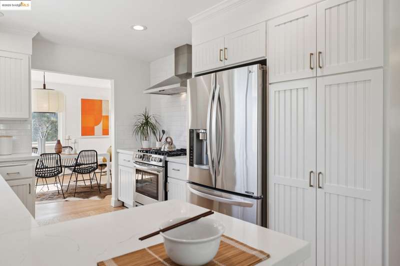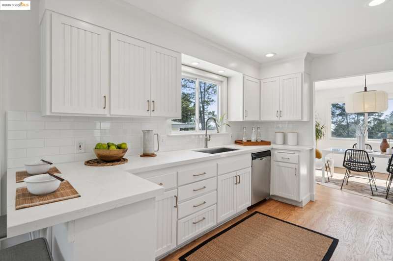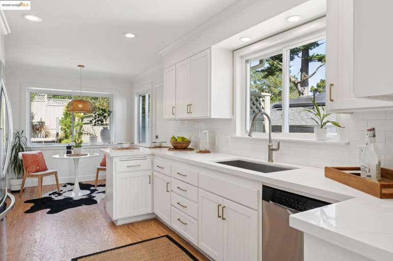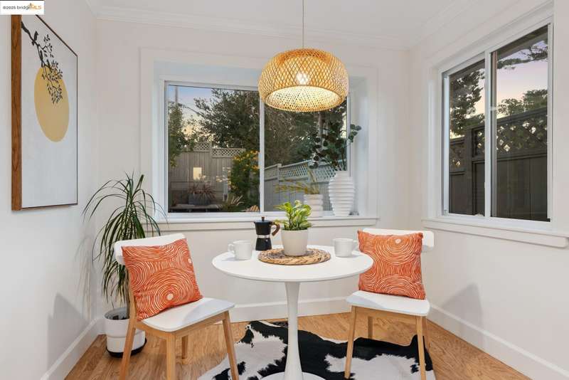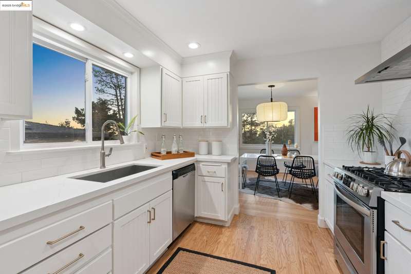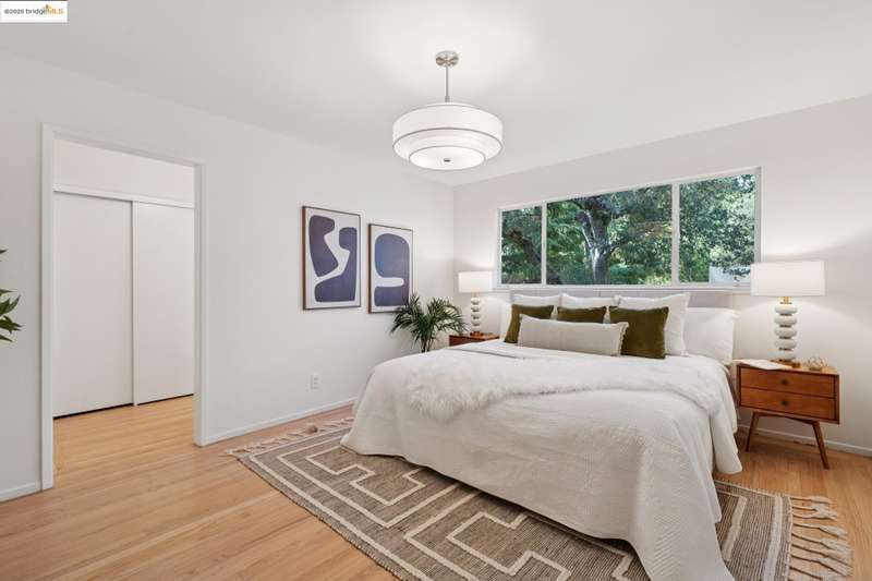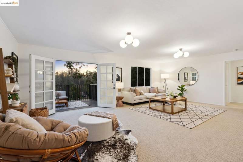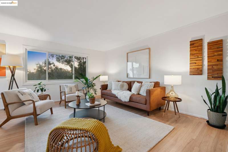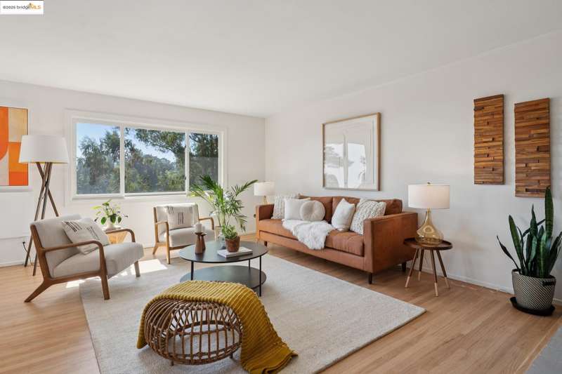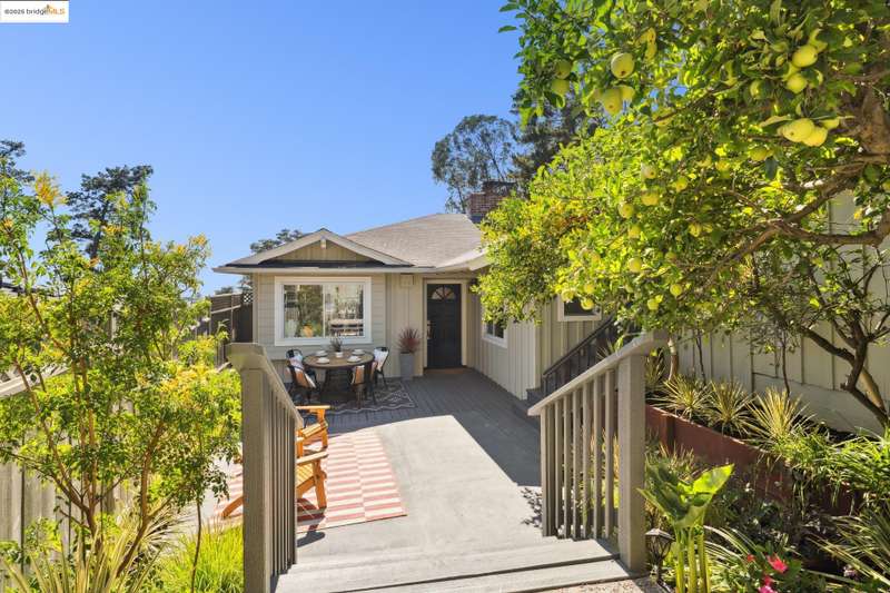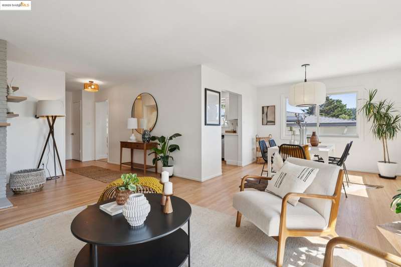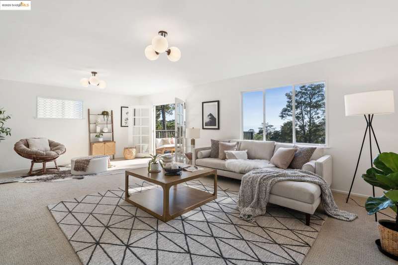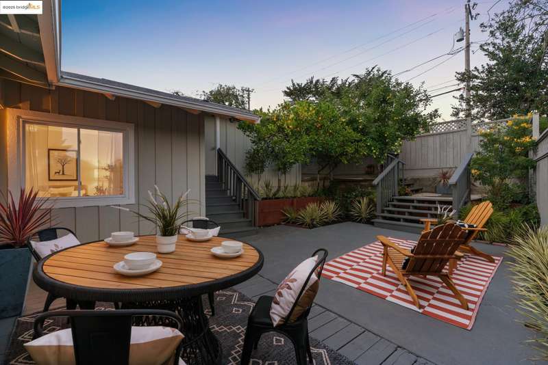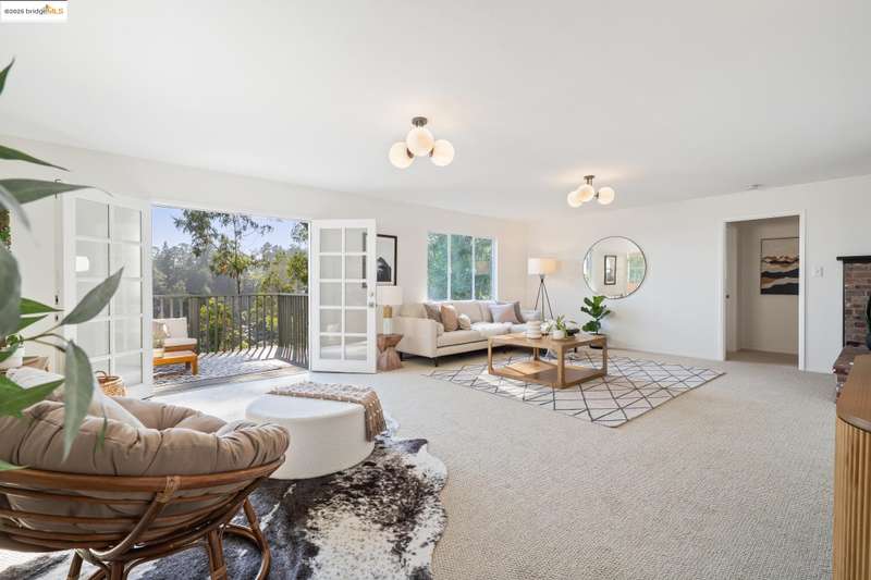 Nestled in the Montclair Hills, 6827 Ridgewood Drive is a light-filled mid-century retreat with Bay views and inviting spaces throughout. The main level features an open living and dining area framed by wide windows with ever-changing outlooks of the sky and city. Outdoor dining takes center stage—enjoy evening meals al fresco beneath a starlit sky on your private patio. The spacious, sun-drenched kitchen has been updated with high-quality, mid-century–inspired finishes. Downstairs, an expansive family room with a cozy brick fireplace opens to a private deck and large backyard—the perfect setting for morning coffee, sunset evenings, or casual gatherings. Two additional rooms provide flexible options for bedrooms, guests, or a home office. The backyard is expansive and a true blank canvas, ready for a lush garden, outdoor dining haven, or your own creative landscape design. Just minutes from Montclair Village, top-rated schools, commuter routes, and nearby hiking and biking trails are just minutes away. This slice of nature’s paradise offers hillside serenity with everyday convenience. Come make it your own! www.6827Ridgewood.com