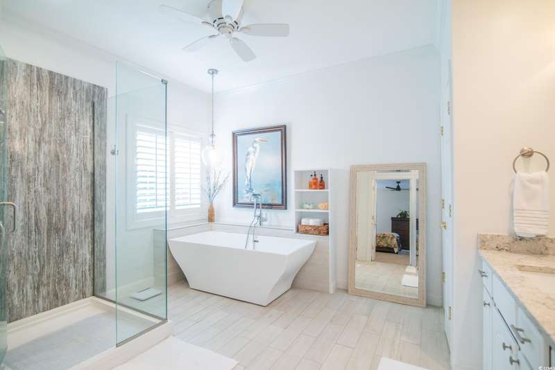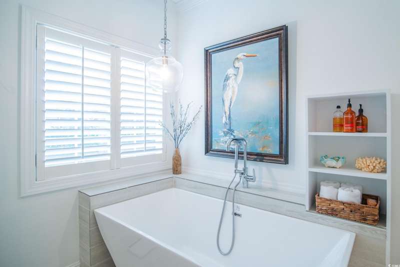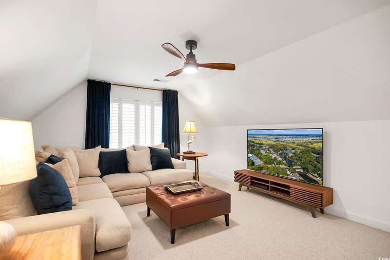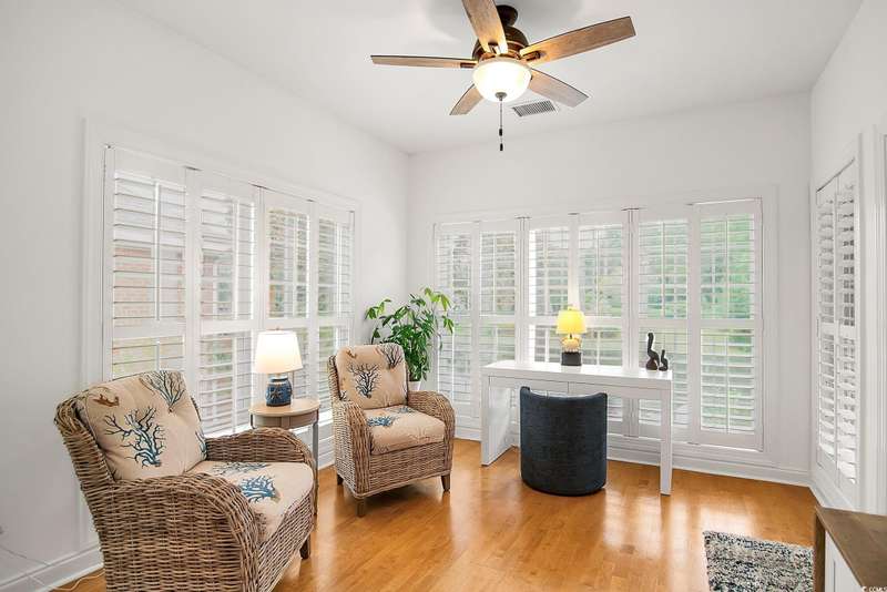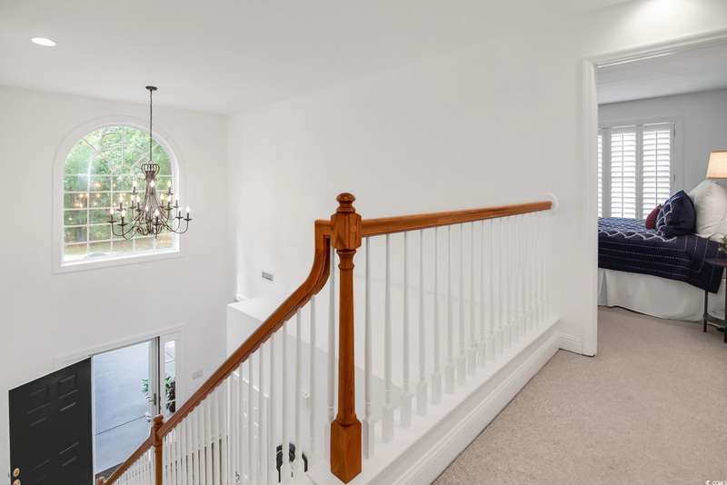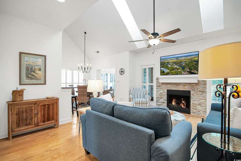 Discover a stunning 4-bedroom waterfront home in the prestigious Heritage Plantation, a unique golf course and marina community with direct ICW/Waccamaw River access. Nestled by a large pond and just steps from the owner’s clubhouse, this home offers convenient access to the clubhouse, tennis courts, gym, and lap pool. Recent upgrades include stainless steel appliances (2021), a new roof (2020), a new bulkhead around the pond (2020), a new HVAC system (2019), hurricane shutters (2019), and a hot water heater (2016). In 2024 the owners added a brick paver walkway and patio with grilling pad, complete gutter system with gutter guards, new lighting and interior paint throughout the entire home. These are just a few of the special features and enhancements. Enter the home through a grand two-story foyer with easy access to the formal dining room which seamlessly connects to a modern kitchen featuring modern stainless steel appliances. The living room boasts vaulted ceilings, two new skylights, and an electric fireplace for cozy warmth and ambiance. Enjoy serene pond views from the sunroom, surrounded by three walls of windows, or relax on the screened-in porch, perfect for spotting native birds and local wildlife. The first-floor master suite, located off the living room, features his-and-hers closets, crown molding, plush carpeting, a spacious and beautifully remodeled master bathroom with a linen closet and separate water closet. A laundry room near the garage offers ample storage, complemented by additional closet space under the staircase. Upstairs, you’ll find two guest bedrooms, a full bathroom, a versatile bonus room with its own bathroom and closet, and a convenient walk-in storage room off the hallway. This meticulously maintained home showcases plantation shutters, fresh interior color schemes and a tranquil atmosphere. The professionally landscaped corner lot, framed by mature oak trees and beautiful azaleas, offers excellent curb appeal and privacy. The gated community provides exceptional amenities, including a lap pool, clubhouse, gym, playground, clay tennis courts, pickle ball courts, a marina with boat storage, and a vibrant calendar of planned events. The acclaimed Heritage Golf Course, a public course with membership options, features top-tier practice facilities. Located just 3-4 miles from two beaches and near shopping and dining, this home blends gated serenity with proximity to coastal attractions, surrounded by majestic live oaks, marshes, and a picturesque golf course. This could be the perfect home for you!