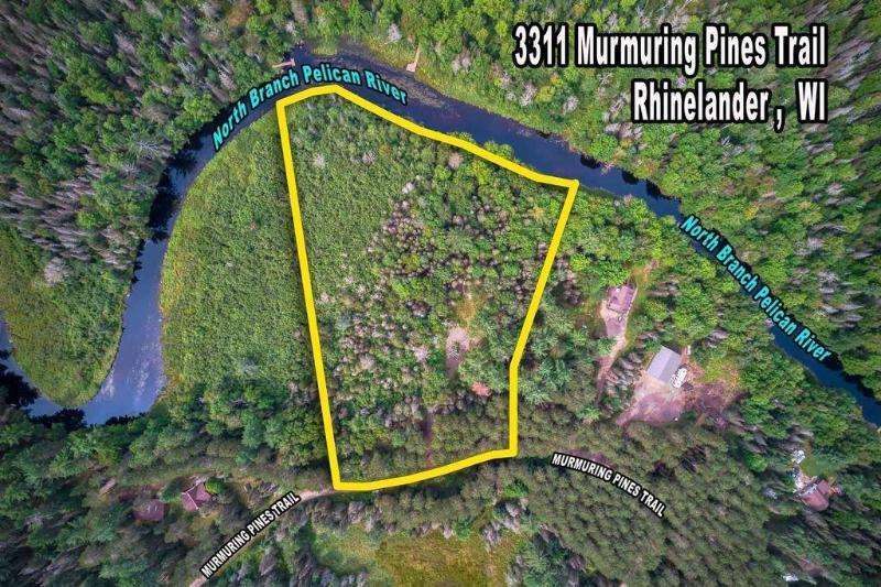 Peaceful and private building parcel located on the Pelican River just east of Rhinelander. This 5.21 acre, nicely wooded parcel provides 534 feet of west facing river frontage. Murmuring Pines has covenants to protect your investment, but the use of RVs and campers is allowed. Sellers have developed the lot by creating a driveway and a potential building site has been cleared. Additionally, electric service has been run to the lot. Nestled in towering pines, this parcel offers privacy and seclusion yet is just a short drive to the conveniences of town. Please do not walk property without an agent and a scheduled appointment.
