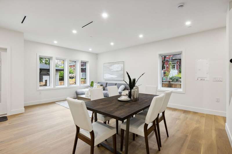 In the heart of Kitsilano..2 blocks off Broadway. A stunning back 1/2 duplex offers the perfect blend of style, comfort & functionality. Step inside to a bright & spacious open concept layout that flows seamlessly to a private patio & yard, complete with a gas bib for year round BBQs. Chef inspired kitchen features a premium Thermador appliance pkg incl a gas stove, sleek quartz countertops and a huge island. Upstairs, you'll find 2 generous size bedrooms, a separate laundry room on the 2nd level. The top floor, a dedicated luxurious primary bedroom with vaulted ceilings and flex space - a perfect home office. Add'l his-lites: A/C, in-floor radiant heating, tankless hotwater system, comprehensive security system with cameras + EV ready garage. OPEN SUN Sept 28th 2-4