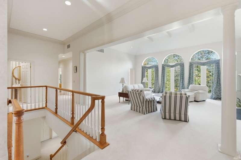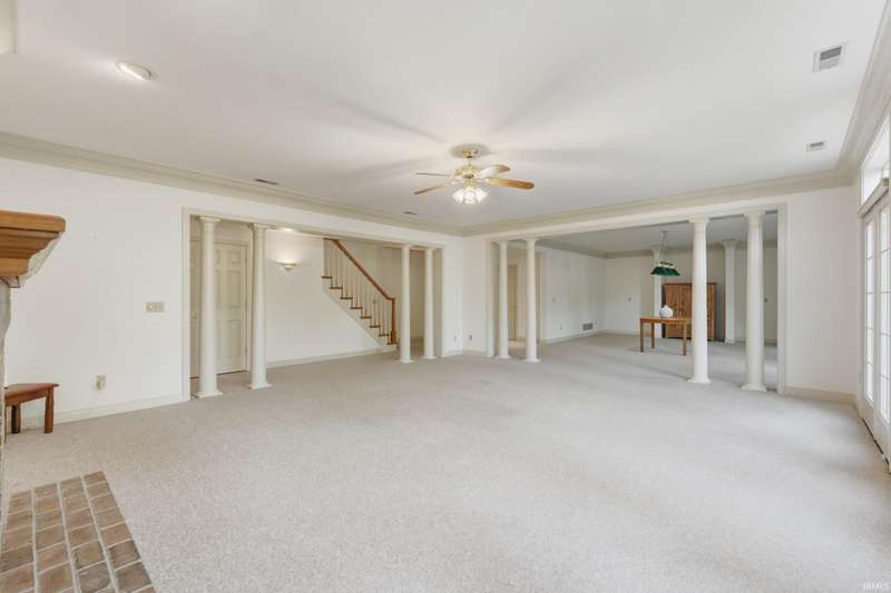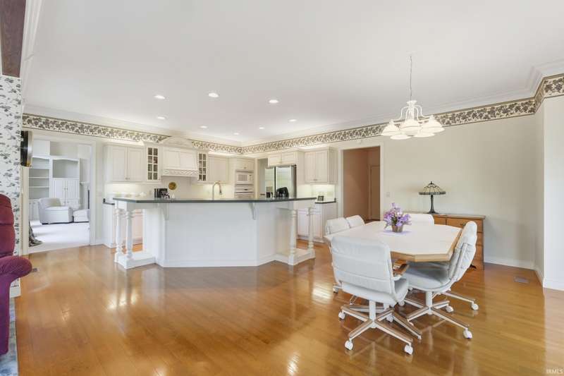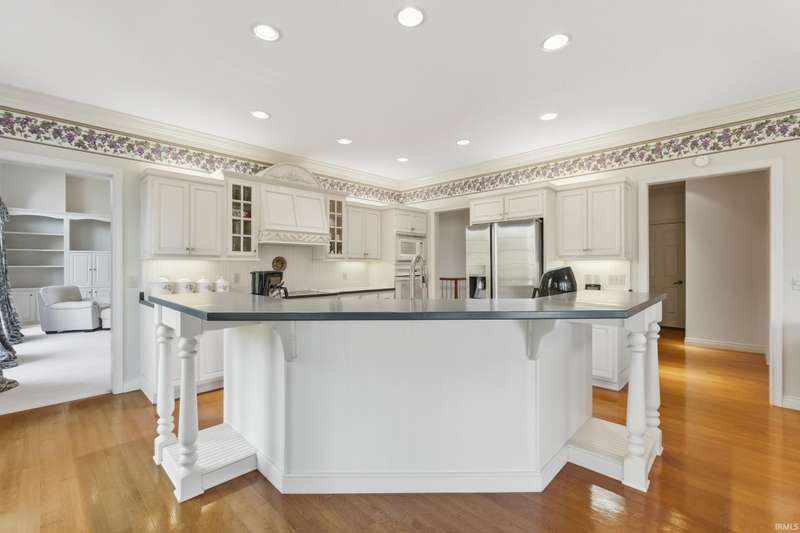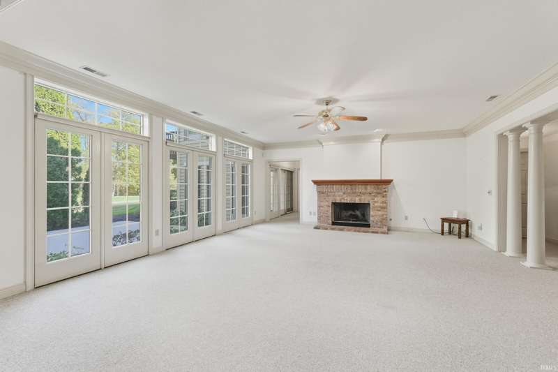 See Virtual Tour below. This beautiful 5218 finished sq ft home features 4 spacious bedrms, 3.5 baths, designed for entertaining & everyday living in mind. Upon entry, this welcoming foyer flows into a formal dining rm, easily accommodating ten guests. Just off the entry is a versatile bedrm that can be an office or den. The formal living rm impresses w/ coffered ceilings, fireplace, built-ins & floor-to-ceiling windows allowing natural light. The kitchen features Corian countertops, custom cabinetry, & opens to a cozy breakfast nook & hearth area. Enjoy serene backyard views from two decks—one off the breakfast nook & another off the main suite—both offering wooded views. On the main level, main suite offers vaulted ceilings, a sitting area, private deck, large walk-in closet, en-suite bath. Two additional main-floor bedrms are connected by a Jack & Jill bath. A guest bath is located just off the dining rm & laundry rm is near the three-car garage. The fully finished walk-out basement features a large family rm w/ 2nd fireplace, wet bar, & game area. You’ll also find a 4th bedrm that opens to a charming four-seasons rm, full bath, & bonus all purpose rm. New Roof within the last 6 years.