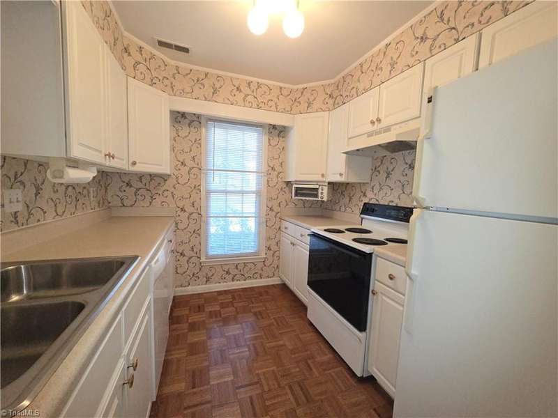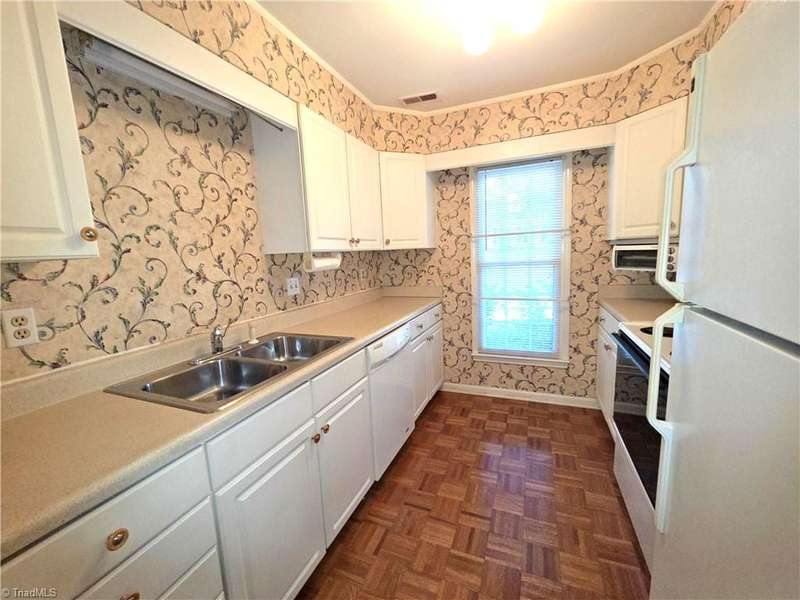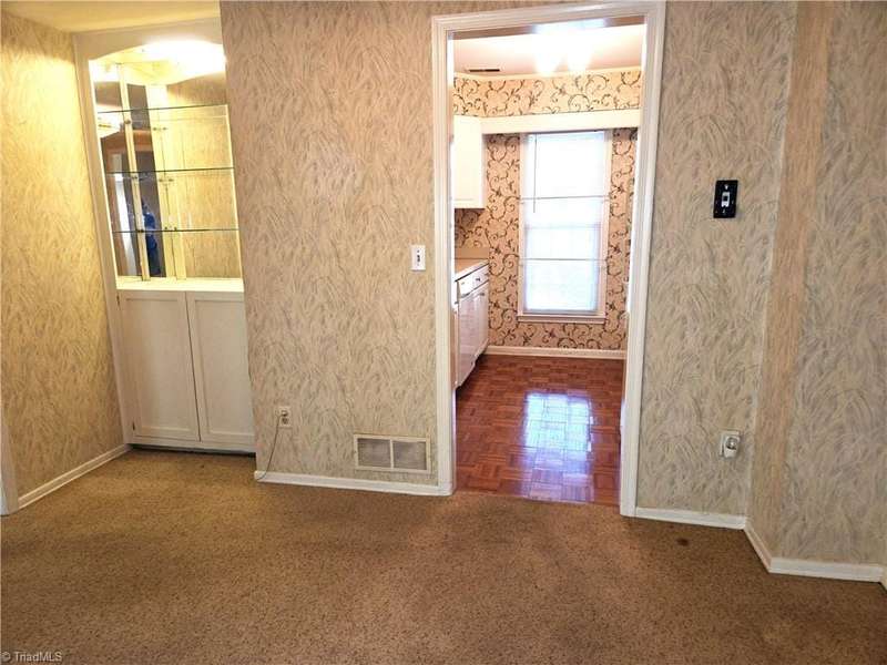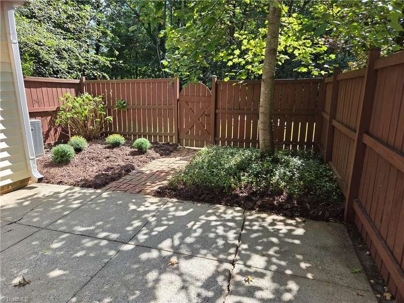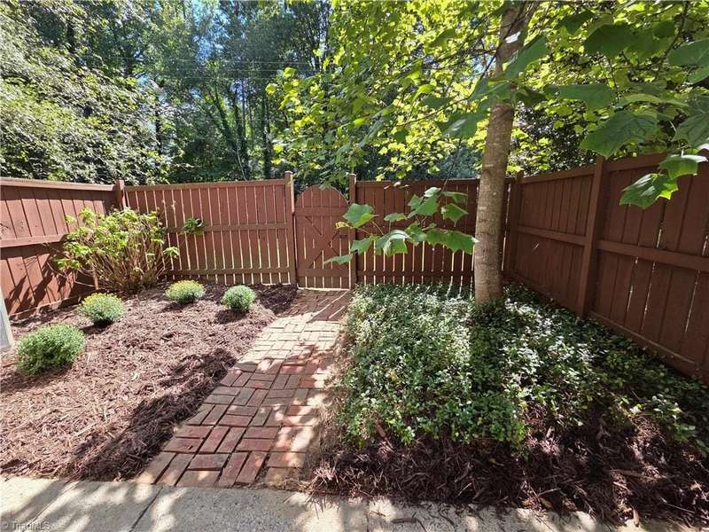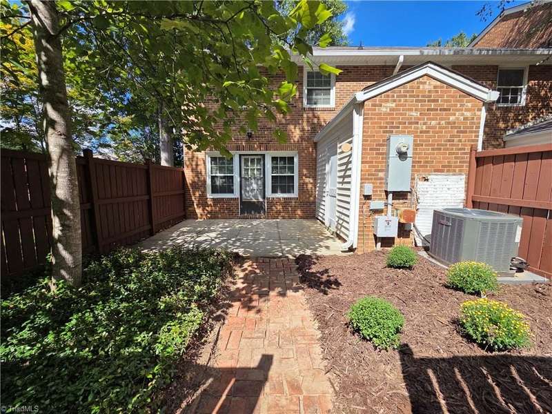 Come take a look at this end-unit brick town home in convenient Sherwood West. Its close to Wake Forest University with lots of options for dining, banking, and shopping nearby, and it's just 15 minutes from downtown. The main level has a generous-sized living room, dining room with built-in cabinet/shelves, kitchen, and half-bath. The two spacious bedrooms have nice closet space, and each bedroom has a private vanity room with a shared tub/shower/toilet room. Step out the back door into a peaceful fenced courtyard that provides a quiet retreat and outdoor entertaining space. Seller added replacement windows and a recent heat pump. Come enjoy Sherwood Wests amenities that include a neighborhood pool, tennis courts, playground, and clubhouse!