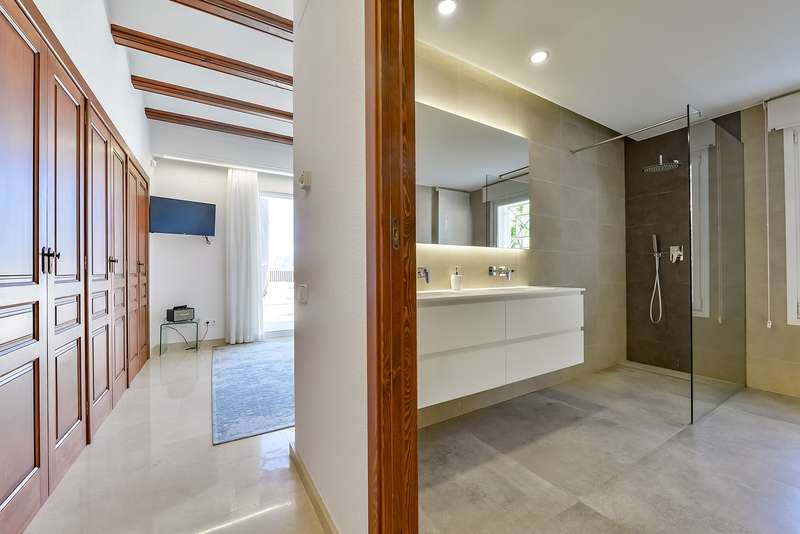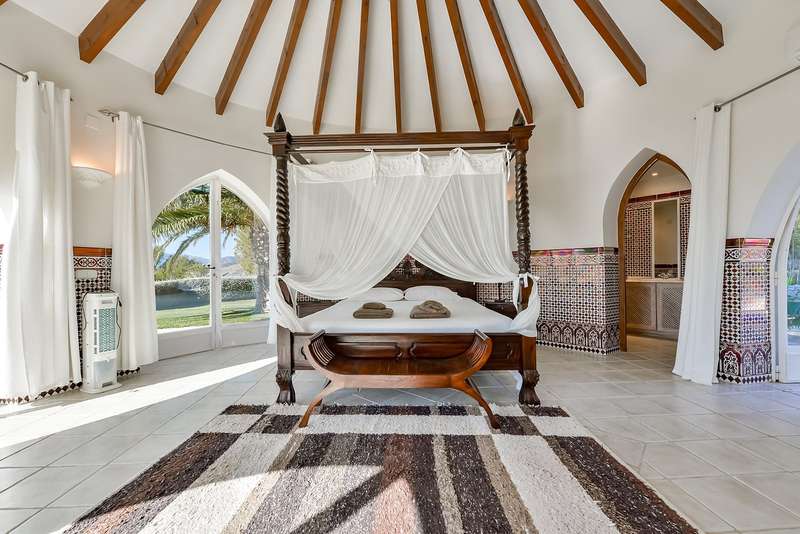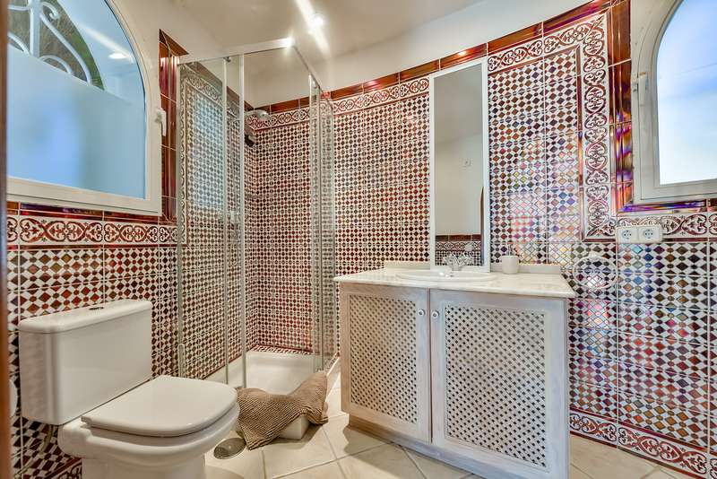 The beautifully landscaped garden surrounds the property, featuring a variety of mature trees and flowers that add freshness and exclusivity. A tranquil fishpond enhances the serene atmosphere, while the highlight of the exterior is a private Moroccan-inspired guesthouse—an independent oasis with a private garden and unbeatable sea views. Fully equipped with air conditioning, cable TV, fiber optic internet, and a connected security system, it offers the ultimate in comfort and privacy.