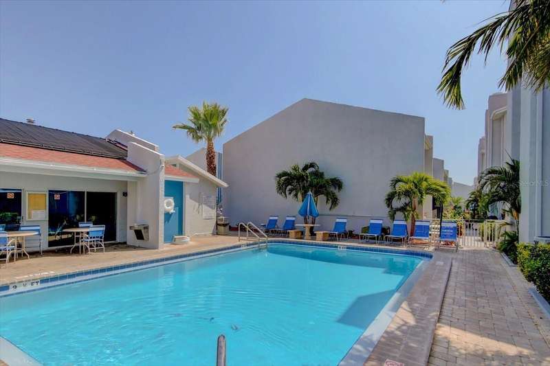 Looking for a GREAT INVESTMENT PROPERTY, SECOND HOME OR A MORE PERMANENT PLACE to hang your flip flops and live your best beach life? Look no further than 343 REX PL #G in Madeira Beach Yacht Club (MBYCC)…a perfect retreat from the hustle and bustle of everyday life for you and your guests. Up one flight of stairs, you will be welcomed to a HIGH AND DRY, MOVE-IN READY 2 STORY TOWNHOUSE STYLE unit with kitchen, living room, additional dining area and half bath on the first floor, and 2 bedrooms, full bath and laundry on the upper level. The unit is being OFFERED TURNKEY allowing you to move in, or rent out right away. 7 DAY RENTALS ARE ALLOWED giving you flexible occupancy options while maximizing additional income should you desire. MBYCC is a GATED COMMUNITY WITH RESORT STYLE AMENITIES that include waterfront walking paths and amazing intracoastal views (yes you will see dolphins), 2 heated swimming pools (one just steps from the condo door), hot tub, clubhouse, fitness rooms, fishing piers and more! And it doesn’t stop there…walk, ride or roll just a COUPLE OF BLOCKS TO THE BEACH where you and your guests can enjoy miles of sandy shores and breathtaking sunsets, every…single…night! ROC Park (across the street) offers waterfront activities, splash pad, playground, dog park, fishing pier, tennis, basketball, baseball and more! Local boutiques, coffee shops, bars, restaurants, library, post office, grocery and pharmacy stores are all within a short distance and world famous John’s Pass is a couple of miles away. PRO-ACTIVE BOARD with FULL-TIME ASSOCIATION MANAGEMENT ON-SITE. COMMUNITY MILESTONE INSPECTION PASSED and SIRS RESERVE STUDY COMPLETED. Full set of condo docs available upon request. Be sure to VIEW THE 3D TOUR link for an immediate walk through experience. Then schedule your in person visit and DON’T FORGET TO BRING YOUR FLIP FLOPS!