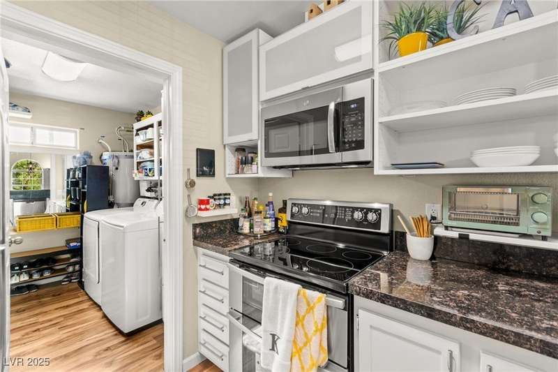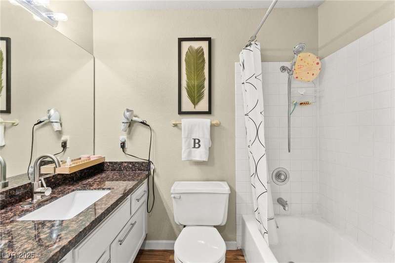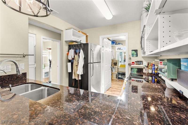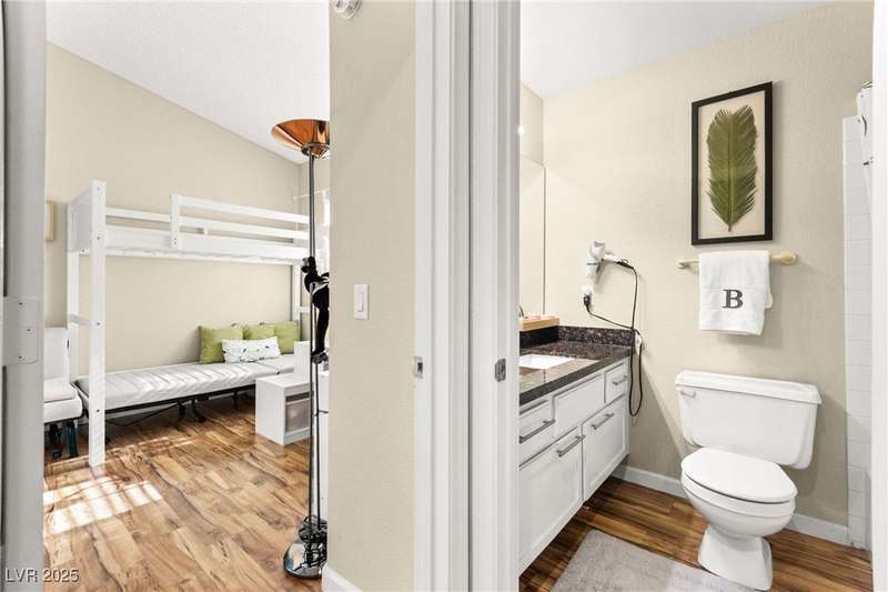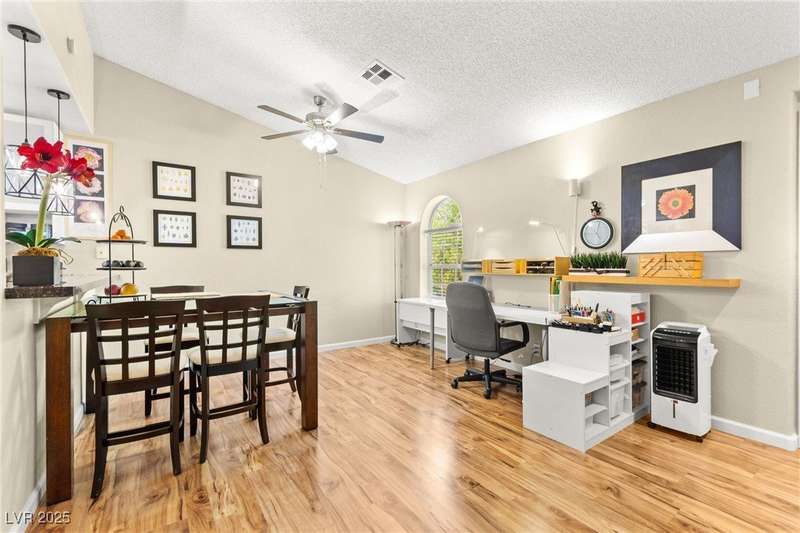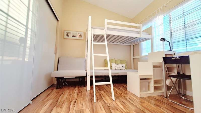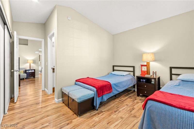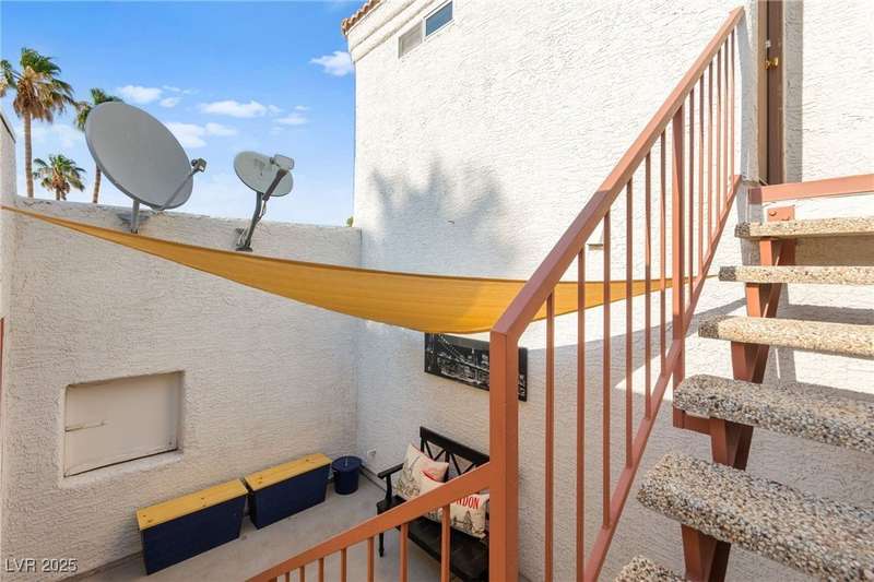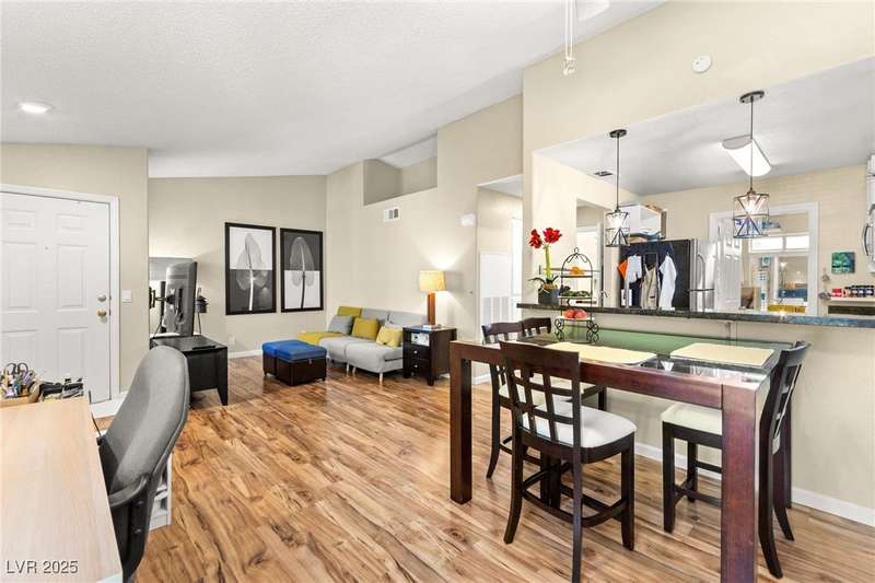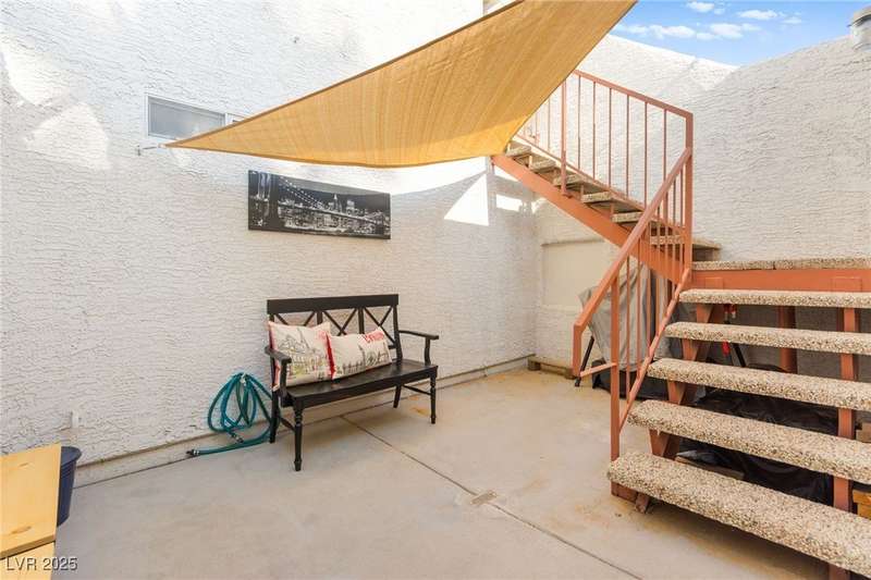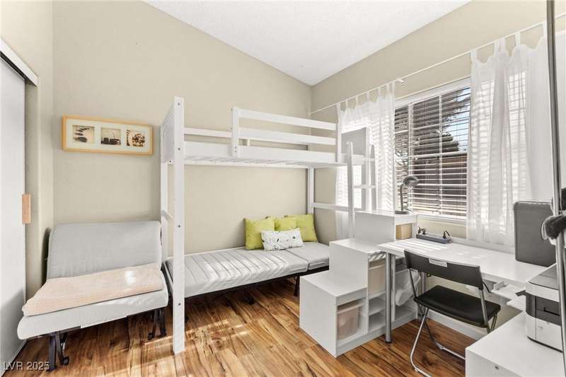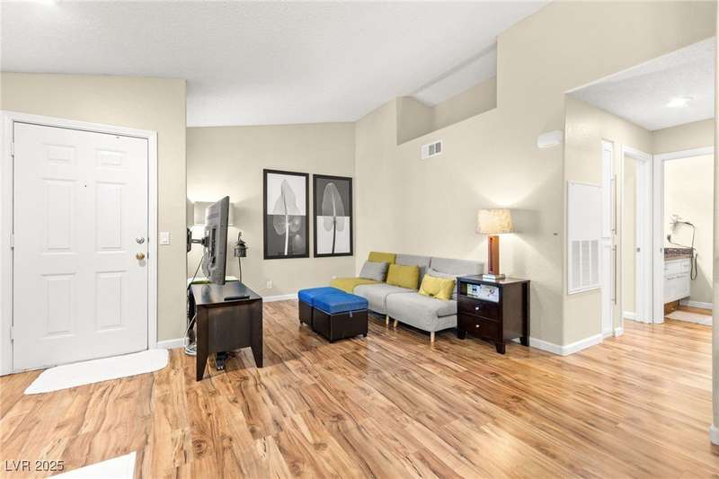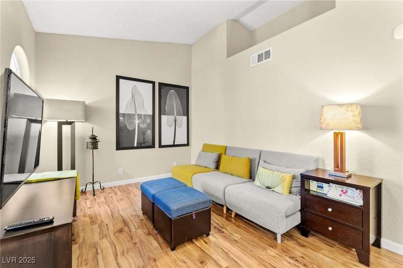 Immaculate 2-Bed, 2-Bath Furnished Condo with Garage! This beautifully maintained top-floor end unit comes furnished (minus décor and personal items) and features vaulted ceilings, wood laminate flooring, and upgraded granite countertops. Enjoy the convenience of an attached garage accessed through a large private courtyard (15x9.5ft). Located in a gated community with lush, mature landscaping and a large resort-style pool, this home is perfect for investors, first-time buyers, or as a vacation getaway. Enjoy views of the Las Vegas Stratosphere and proximity to Walmart, H-Mart, El Super, hospitals, schools (including a new elementary), and endless shopping options. Move-in ready and full of charm—don’t miss this opportunity!