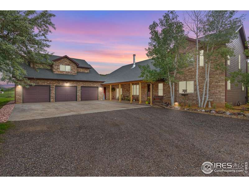 Welcome to your dream retreat nestled amongst Colorado's breathtaking Red Bluffs. This custom-built, four-bedroom, three-bath masterpiece offers the perfect balance of luxury, privacy, and versatility-set on an expansive 20-acre parcel just minutes from the sparkling waters of Carter Lake. Step inside to discover an open-concept floor plan designed for both everyday comfort and elegant entertaining. High ceilings and large picture windows allow for an abundance of natural light, highlighting the natural wood finishes and hand-crafted double-sided stone fireplace The gourmet kitchen is a chef's delight, featuring high-end SS appliances,and beautiful cabinetry. Natural light floods the living space, highlighting sweeping views of the surrounding bluffs and rolling terrain. Designed with multigenerational living in mind, the walk-out basement includes a fully equipped apartment with its own private entrance-ideal for guests, extended family, or rental income. Enjoy Colorado's outdoor beauty year-round on the oversized covered patio, perfect for entertaining or simply taking in the serenity of the landscape. The oversized three-car garage provides generous space for vehicles, tools, and outdoor gear and even has an unfinished studio space above the garage. And with zoning that allows a secondary residence, this property offers a rare opportunity to expand or create a guest home, studio or workshop, barn for your horses, or investment property, the possibilities are endless. Whether you're seeking a peaceful escape, multigenerational flexibility, or space to grow, this extraordinary home offers it all in one of Colorado's most picturesque settings. Easy drive to Estes Park & Rocky Mountain National Park!
