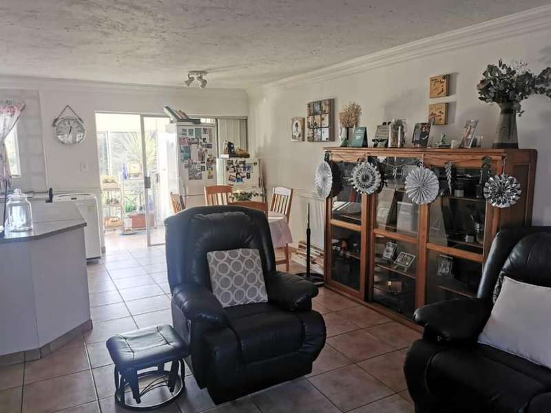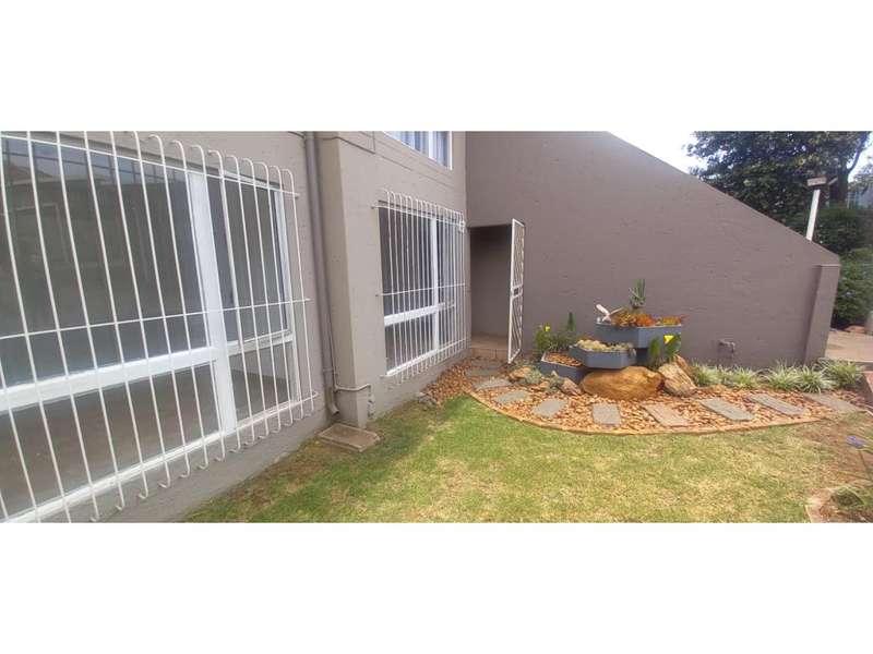 THIS STUNNING GROUND FLOOR SIMPLEX OFFERS YOU THE FOLLOWING: 3 Well-sized bedrooms, fitted with built-cupboards 2 Bathrooms, MES bath, basin & loo Second bathroom, shower, bath, basin & loo Spacious living area leading out on to a balcony overlooking the beautiful Southcrest hills, with a built-in braai, steps leading down to a private garden and lapa for entertaining family and friends outside. Kitchen has granite tops with ample cupboard spaces, breakfast nook, stove and under counter oven. Floor tiles throughout home. This unit is pet friendly, well secured with 24-hour security plus electric fence and walled. Double carport Swimming pool in complex Plenty visitors parking